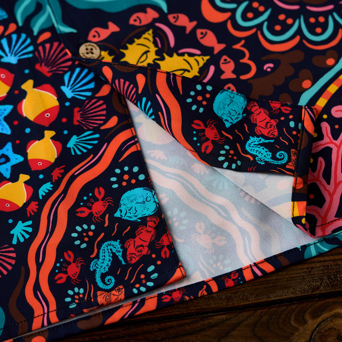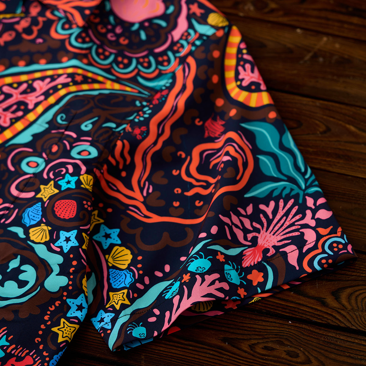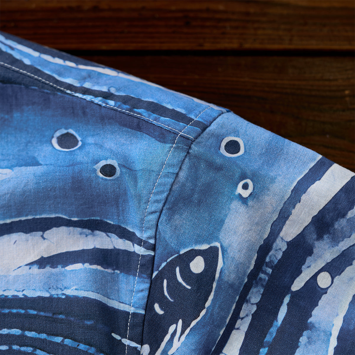 「소용돌이치는 바다 속을 유영하는 회유어 떼」코튼 알로하 셔츠