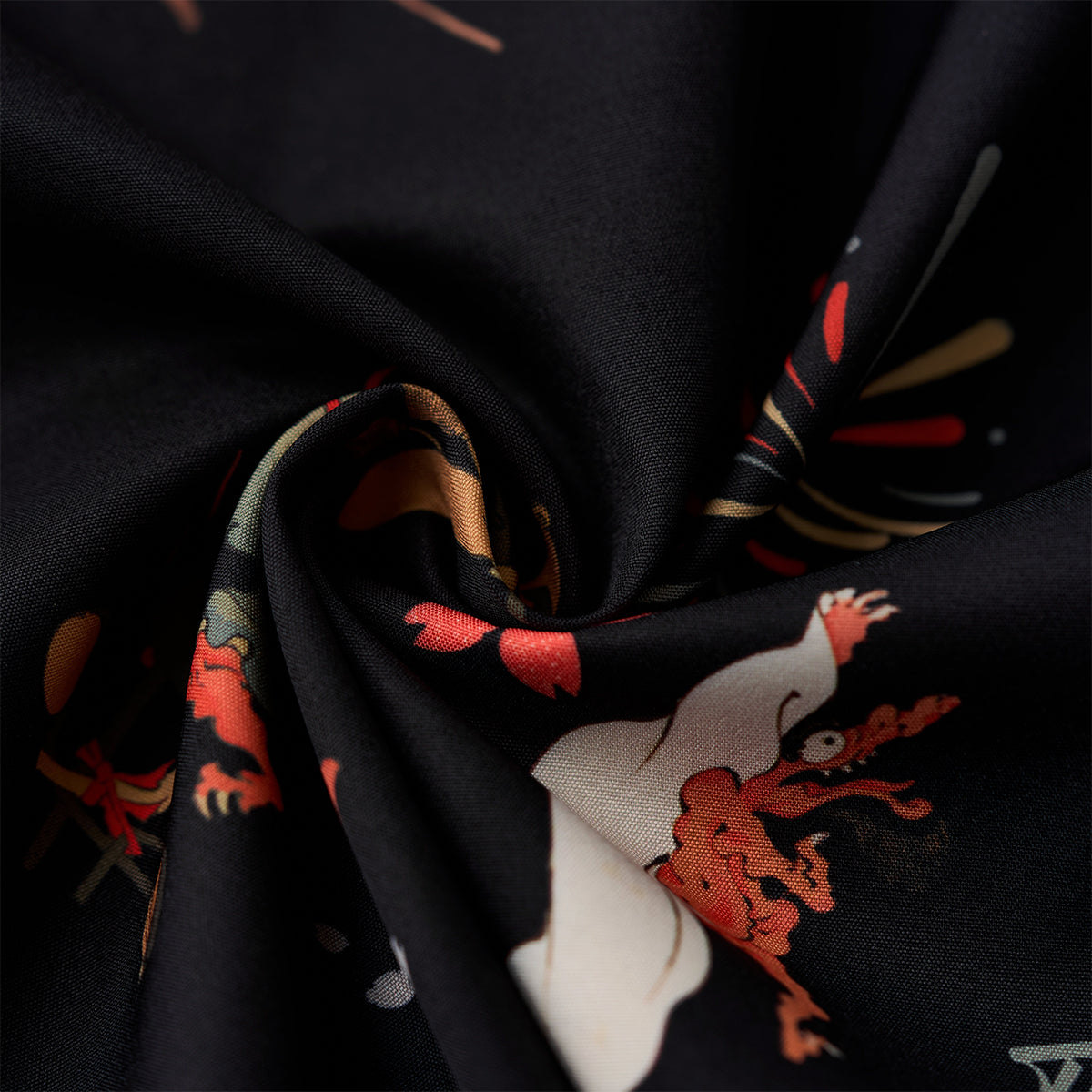 Open collar shirt with print of "Graffiti left on the wall of the treasure house" by Kanagawa Kuniyoshi