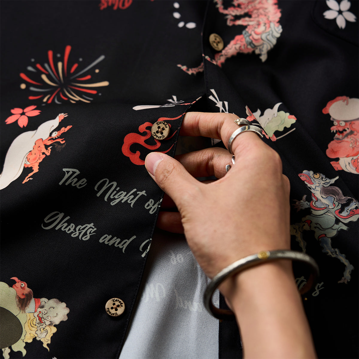 무로마치 시대「花火・百鬼祭り」우키요에 올오버 프린트 알로하 셔츠