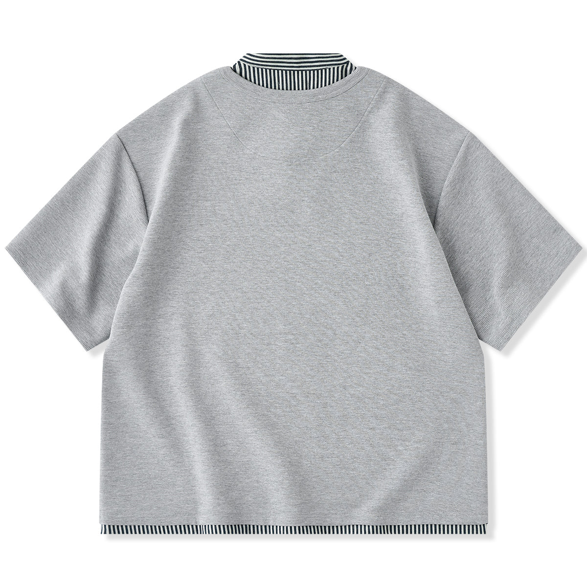【사전예약】페이크 레이어드 디자인 스트라이프 패턴 스탠드 카라 셔츠 & V넥 티셔츠