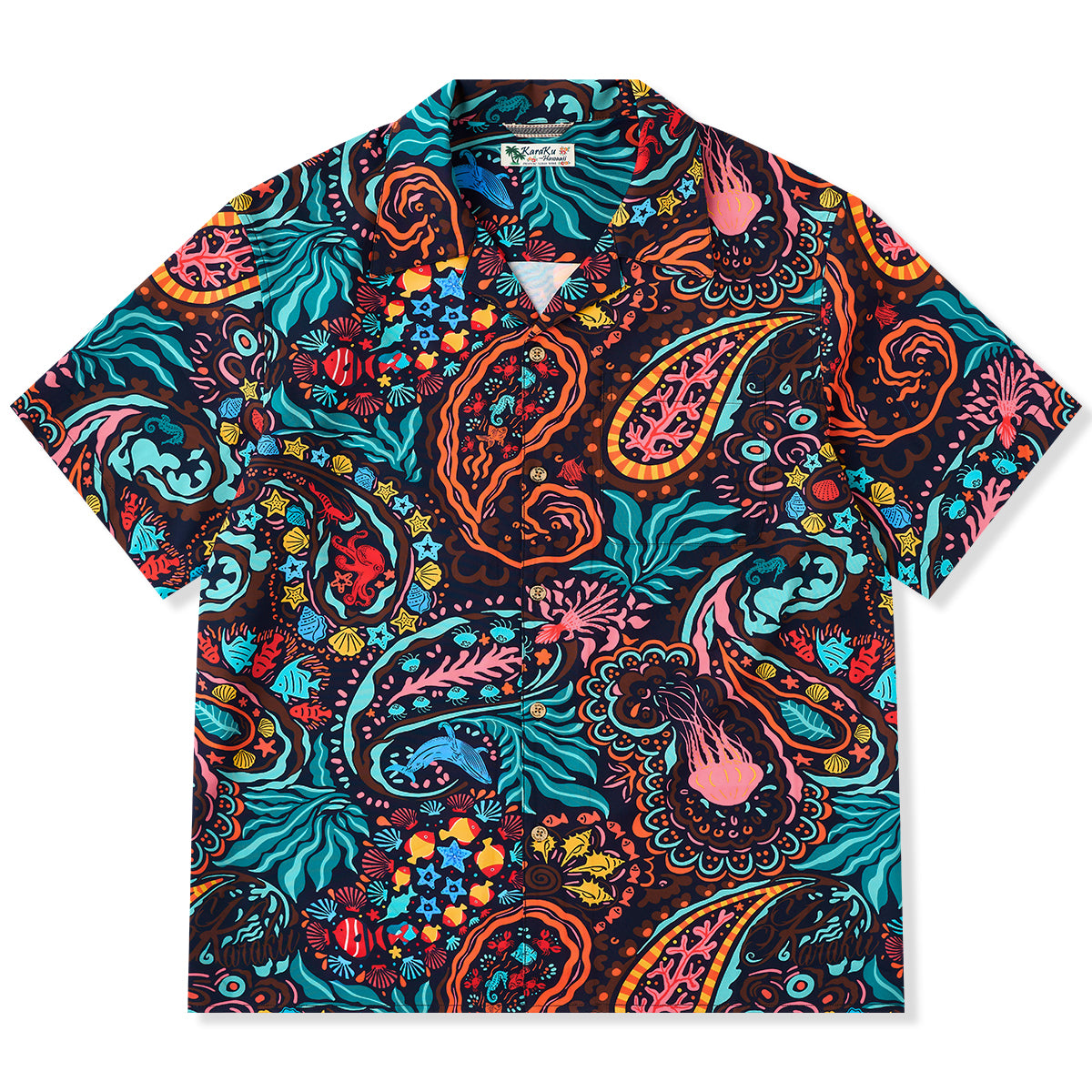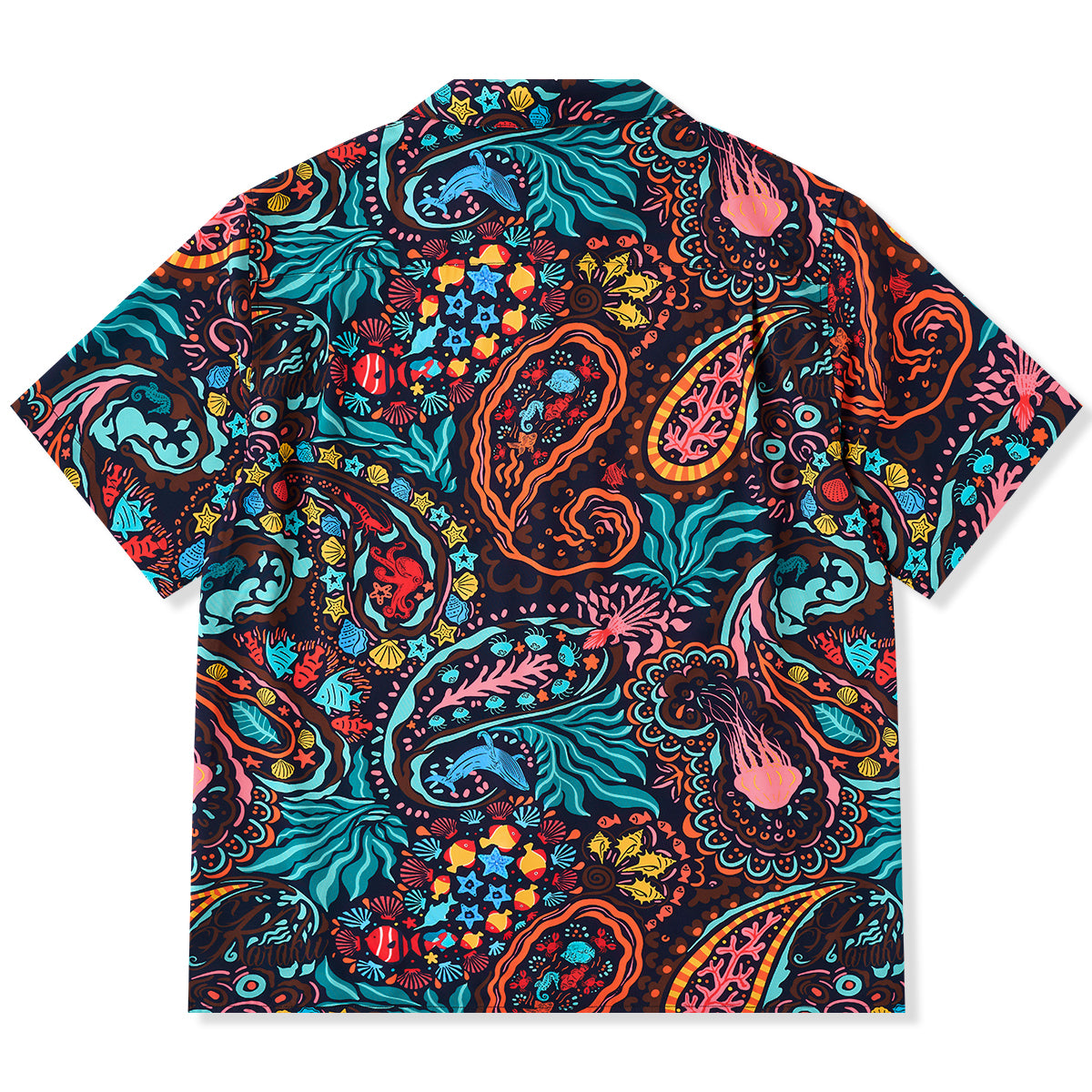 【사전예약】「해양 생물 페이즐리」 올오버 프린트 팝아트 스타일 알로하 셔츠