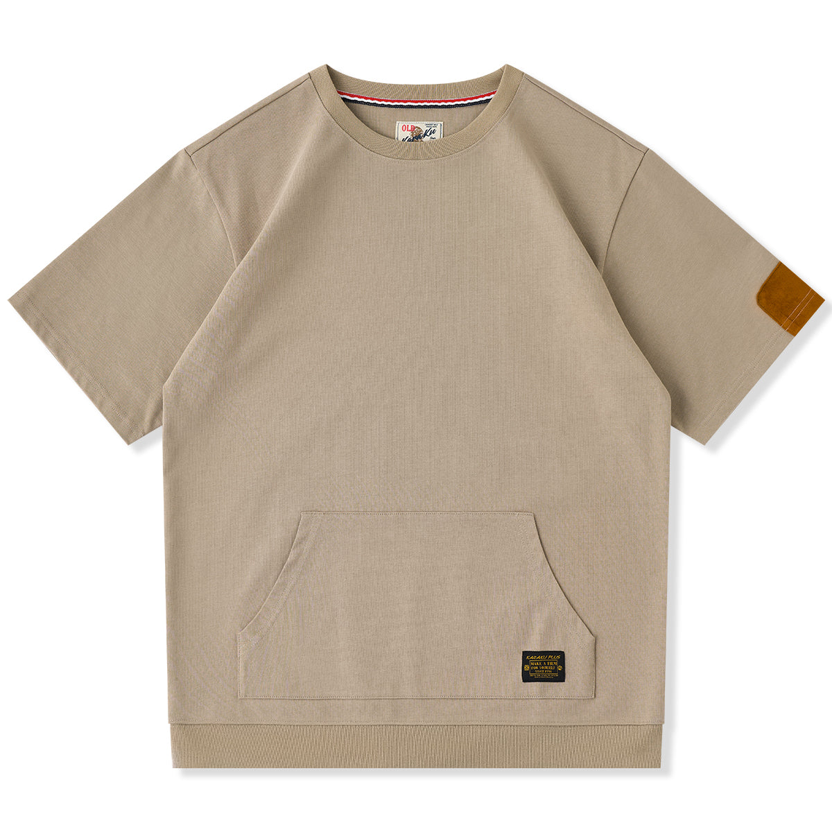 【사전예약】소매 스웨이드 패치 캥거루 포켓 코튼 티셔츠