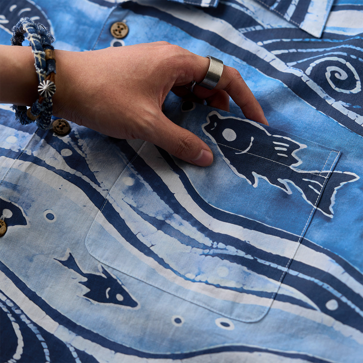 일본식 문양·타이다이 스타일 프린트 알로하 셔츠