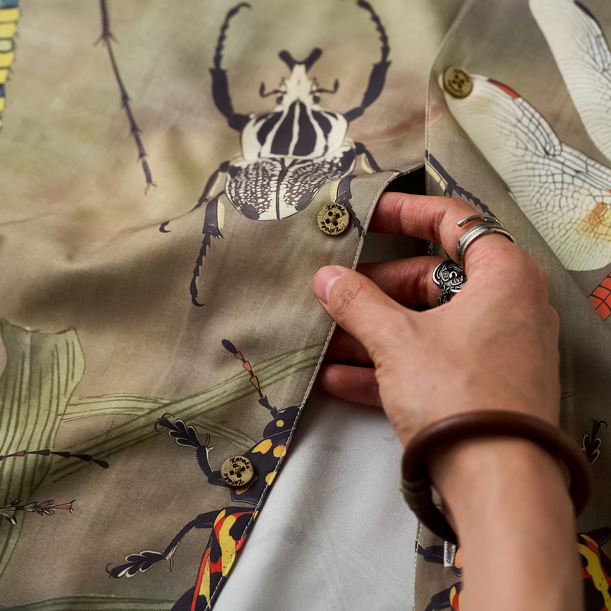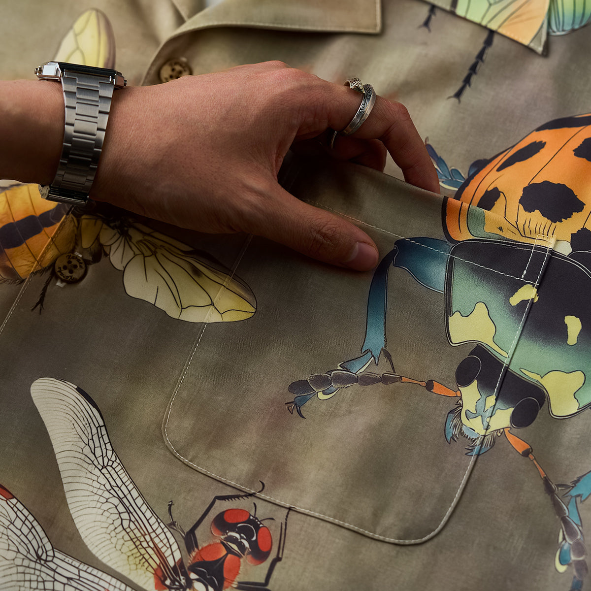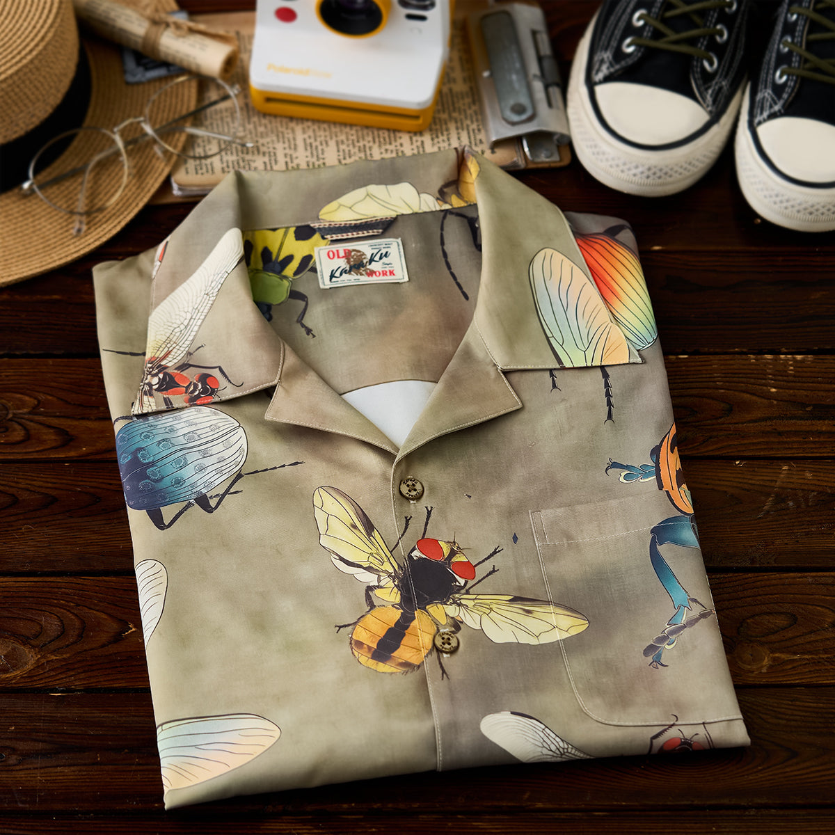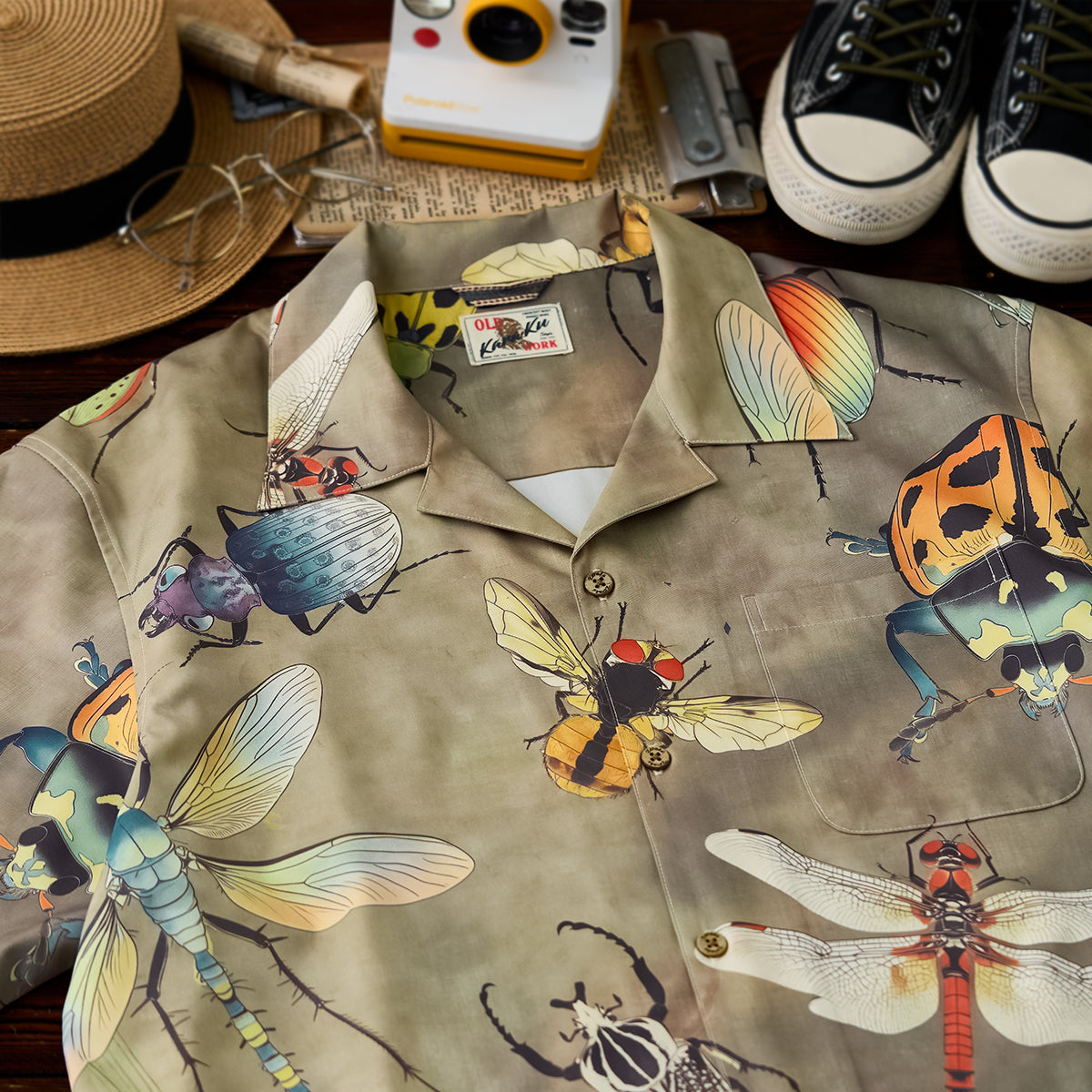 【사전예약】「곤충도감」패턴 프린트 알로하 셔츠