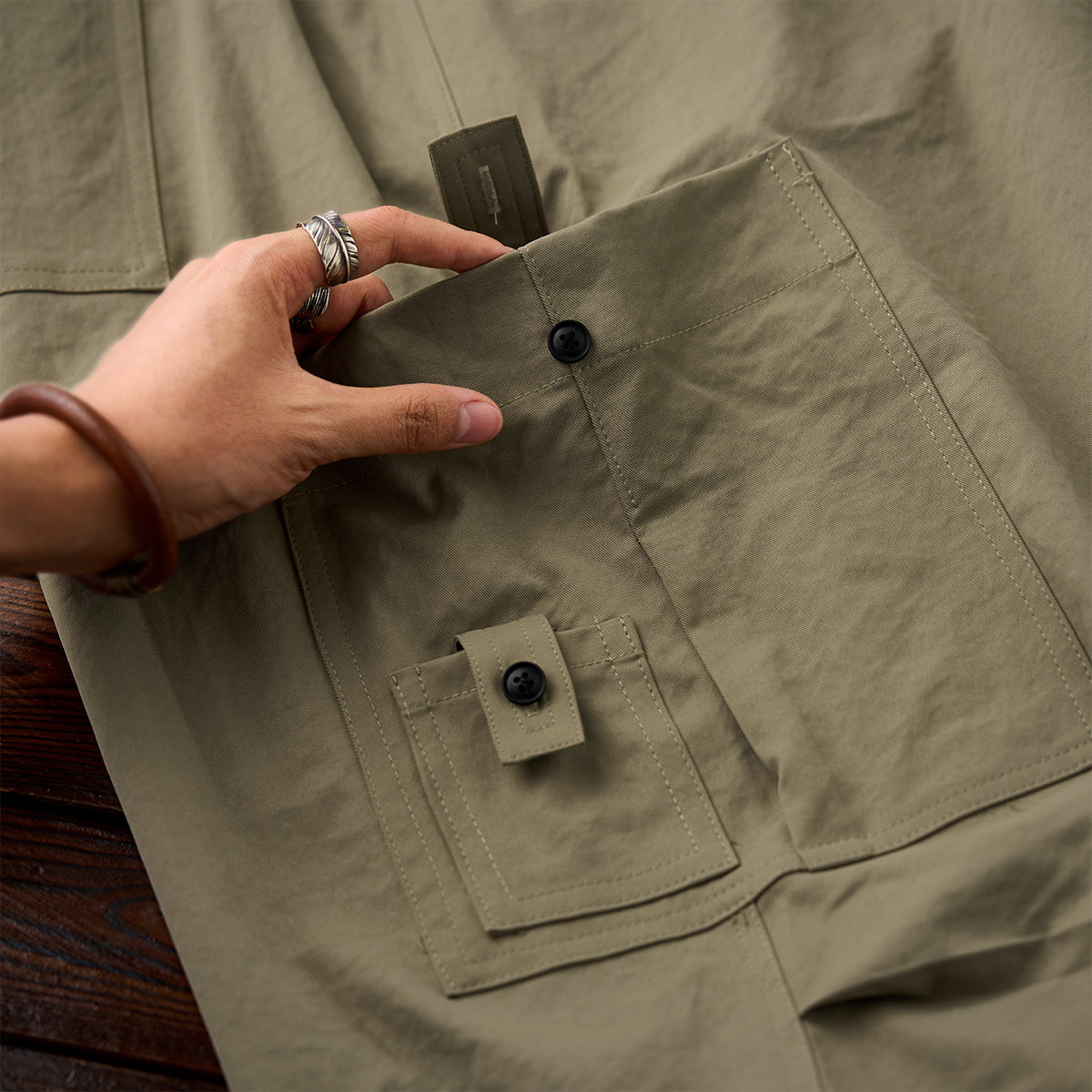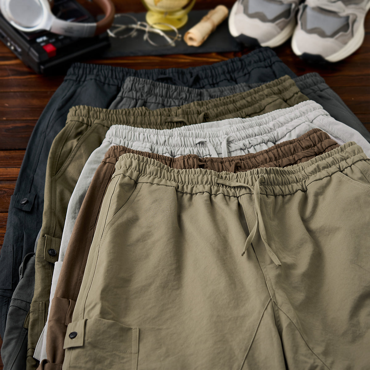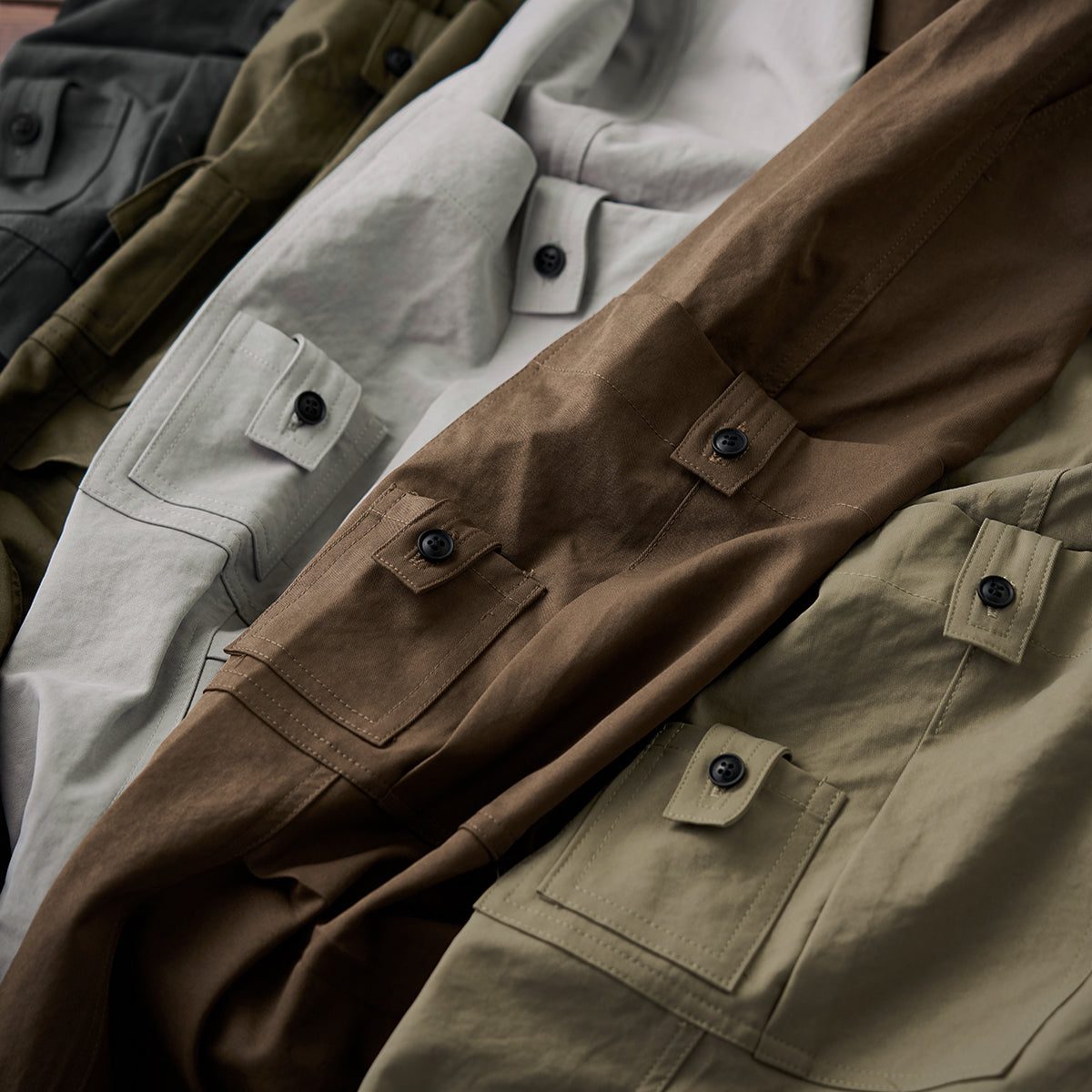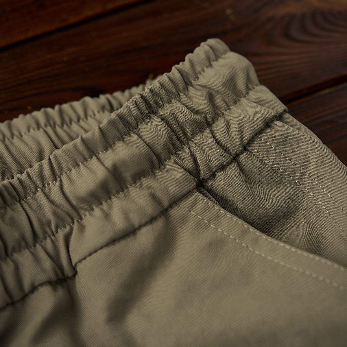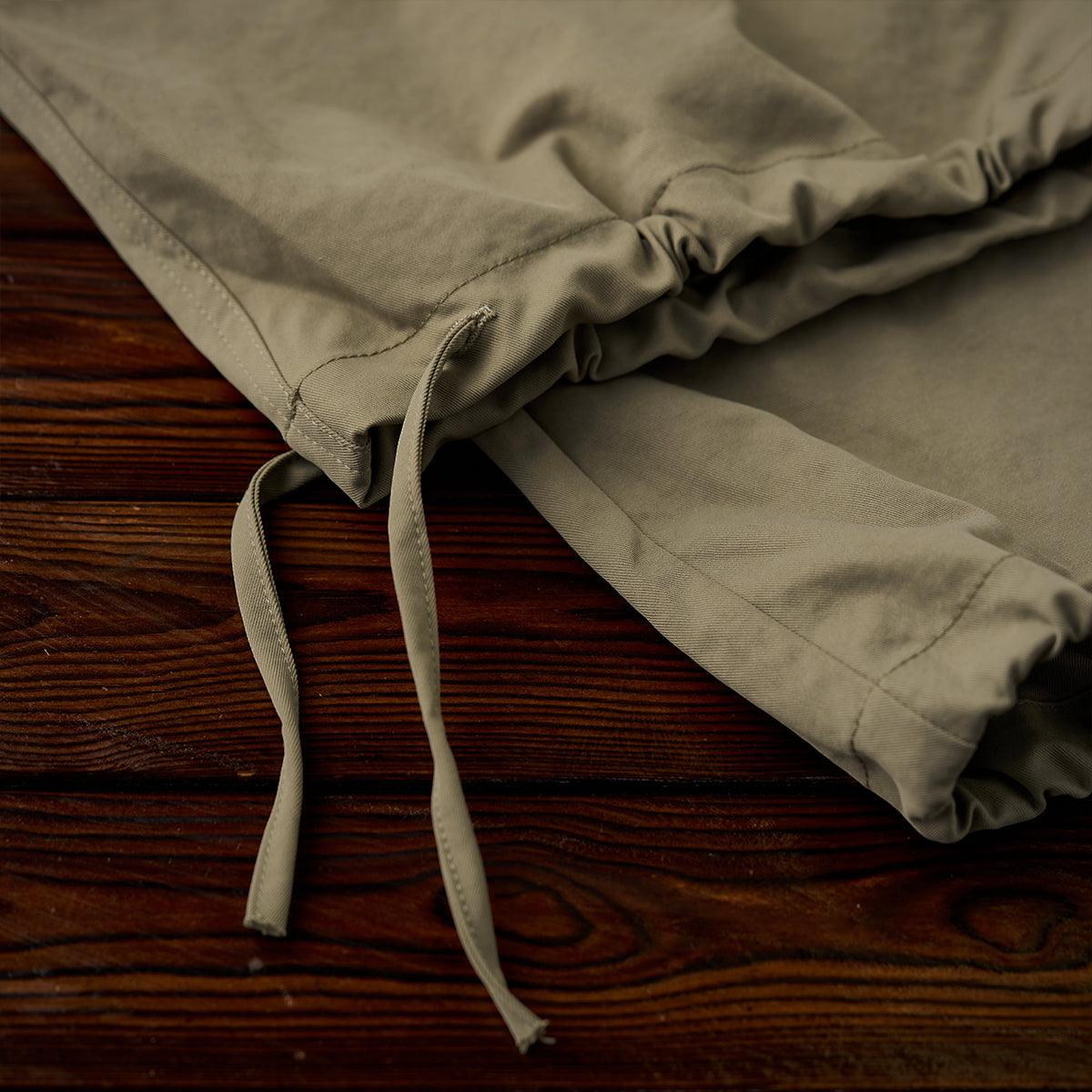 밀리터리 패러슈트 팬츠를 모티브로 한 카고 이지 팬츠. 무릎 턱 디테일과 밑단 스트링으로 입체적이고 자유로운 실루엣을 연출하며, 밴딩 허리와 카고 포켓으로 착용감과 실용성을 높였습니다.