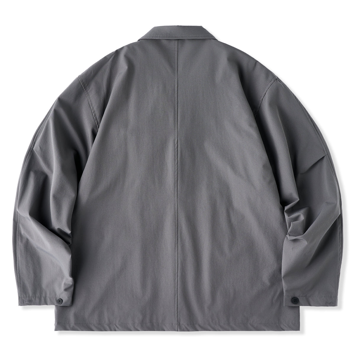 This nylon jacket features a generous silhouette and functionality, allowing for a wide range of styling options from casual to military and techwear.