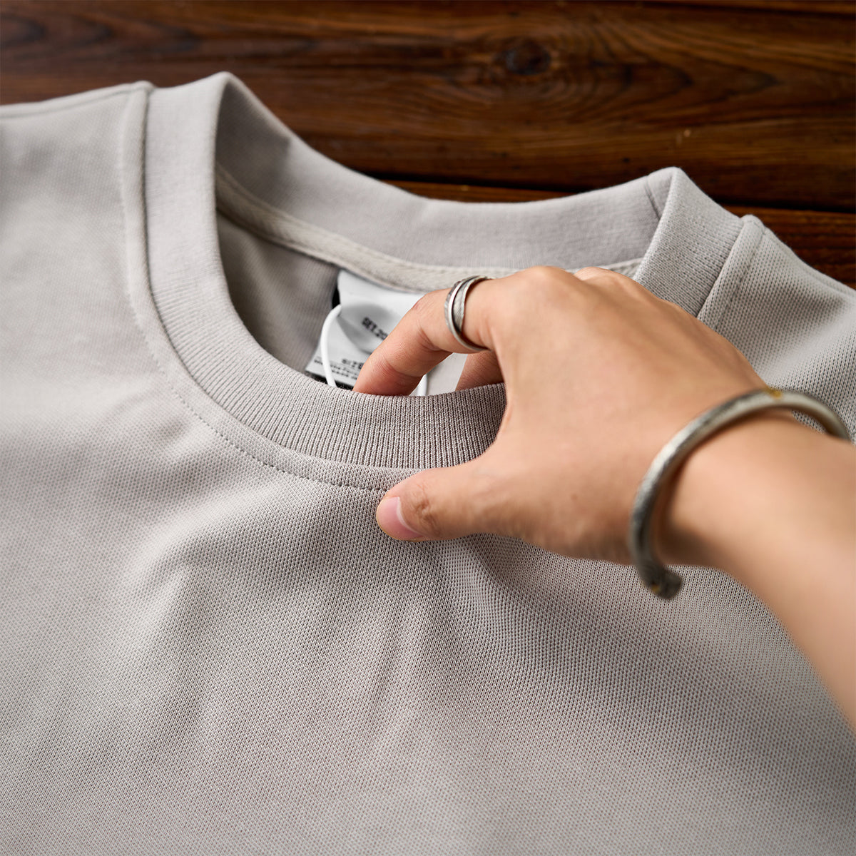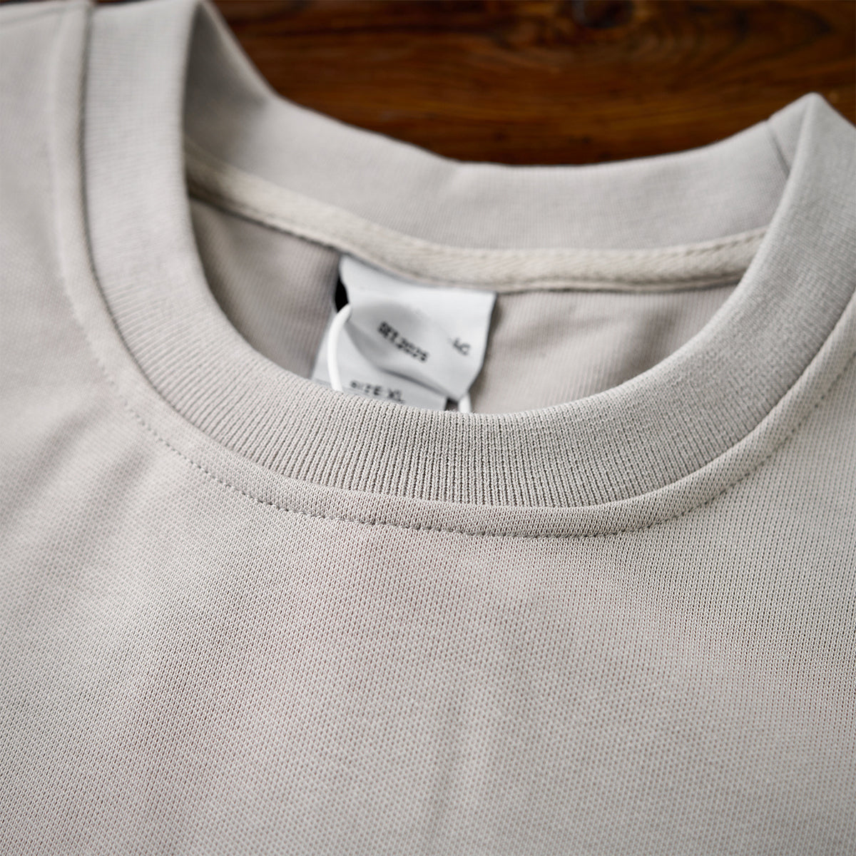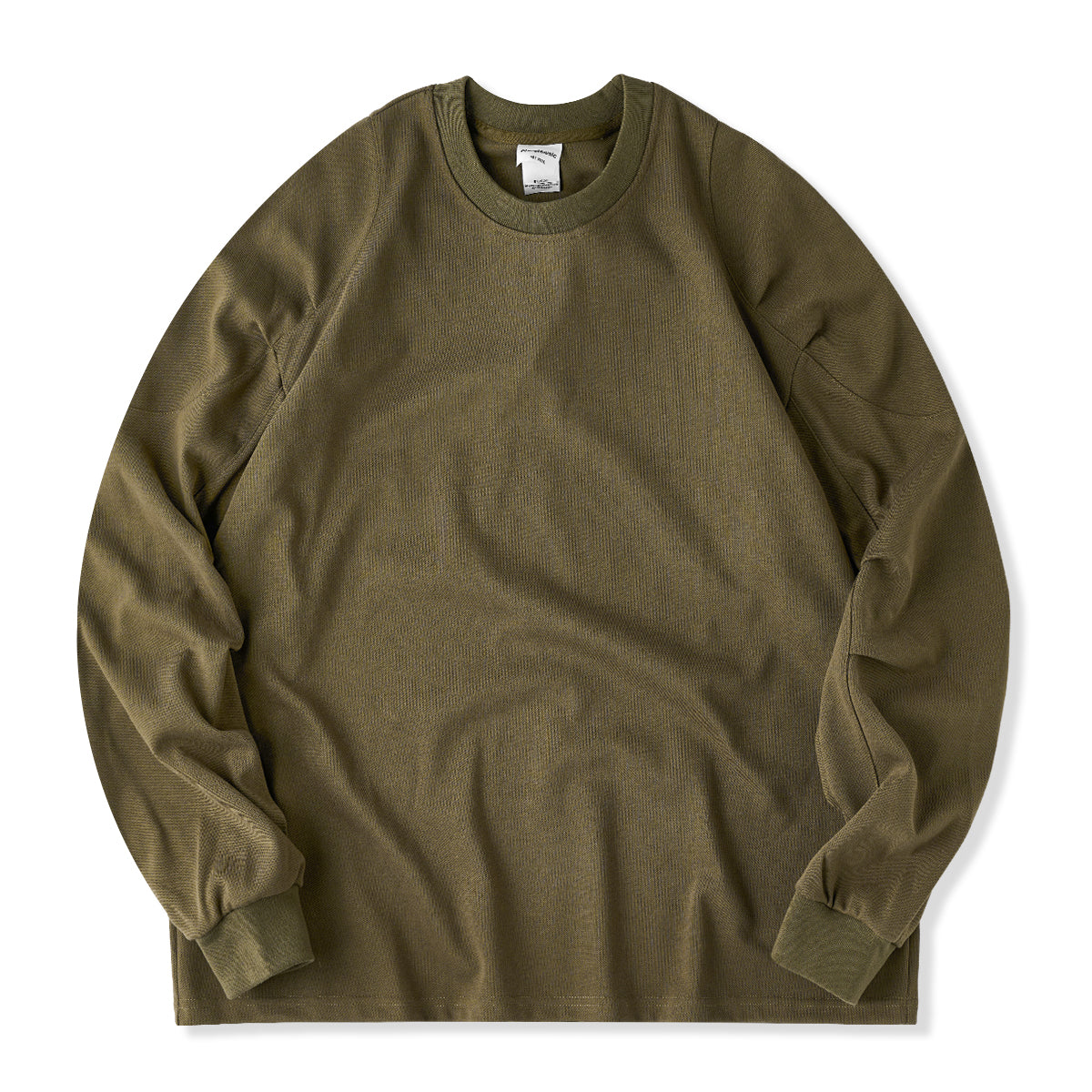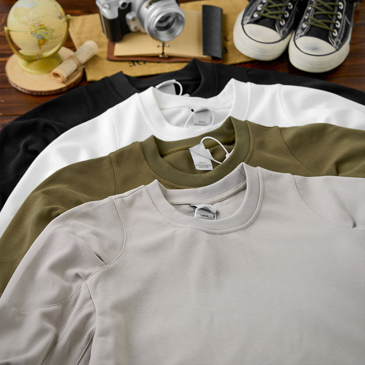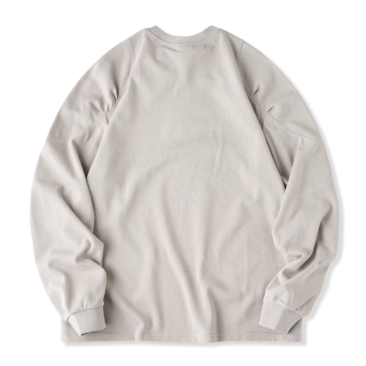 래글런 느낌의 곡선형 어깨 절개로 입체감을 살린 디자인으로 활동성과 스타일을 동시에 잡은 스웨트셔츠.