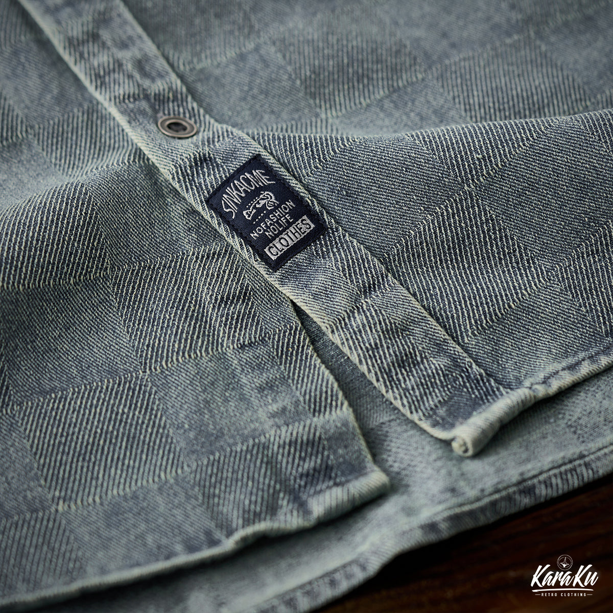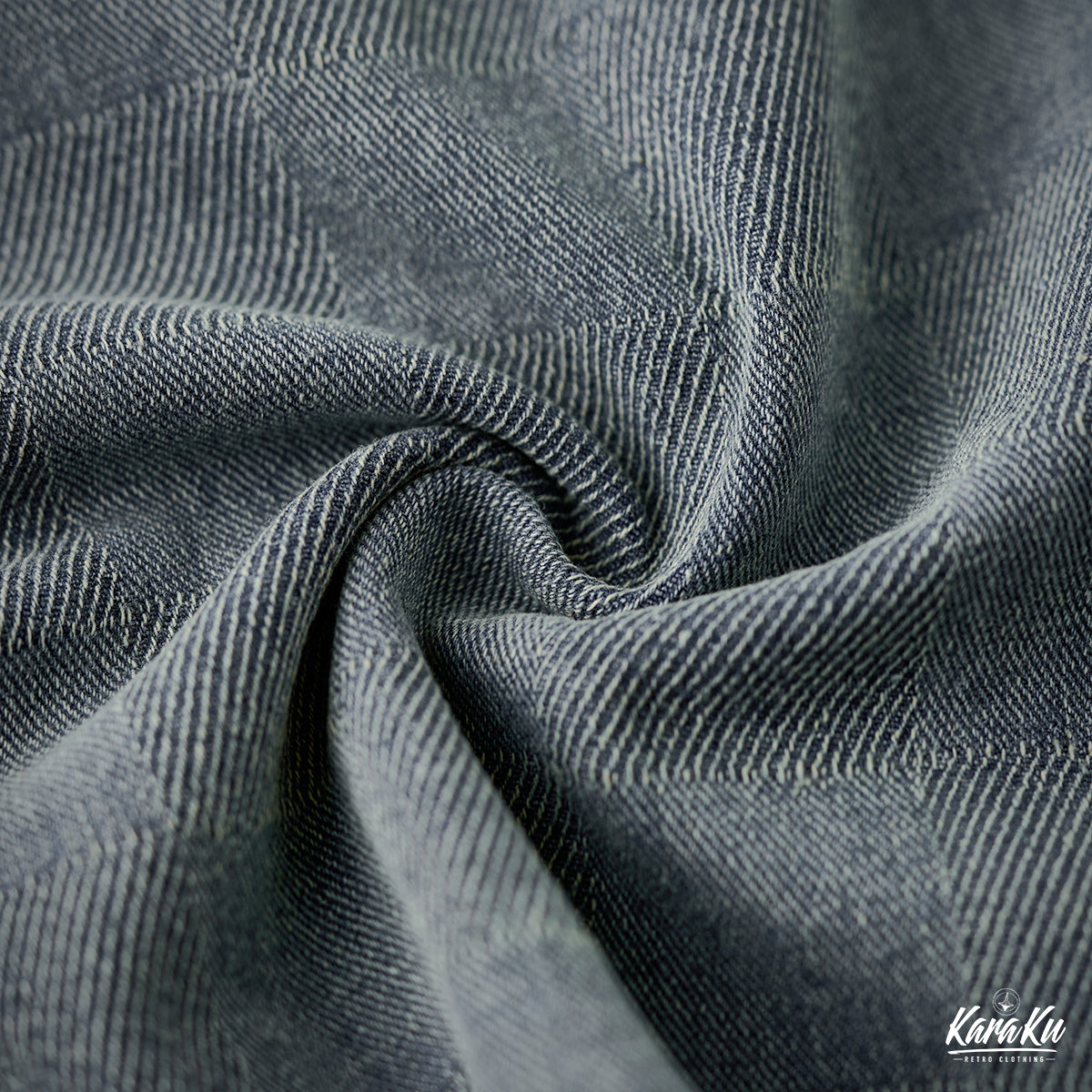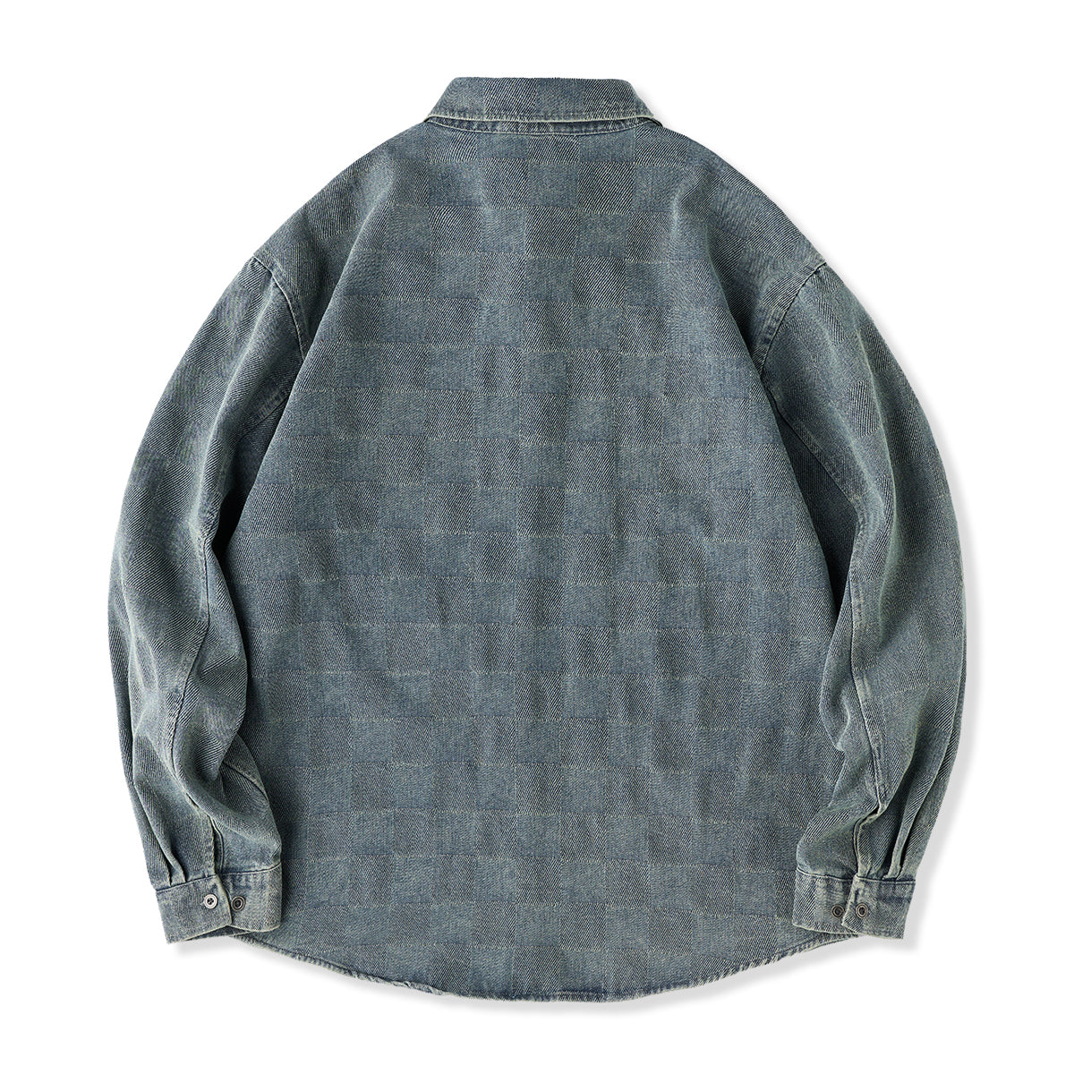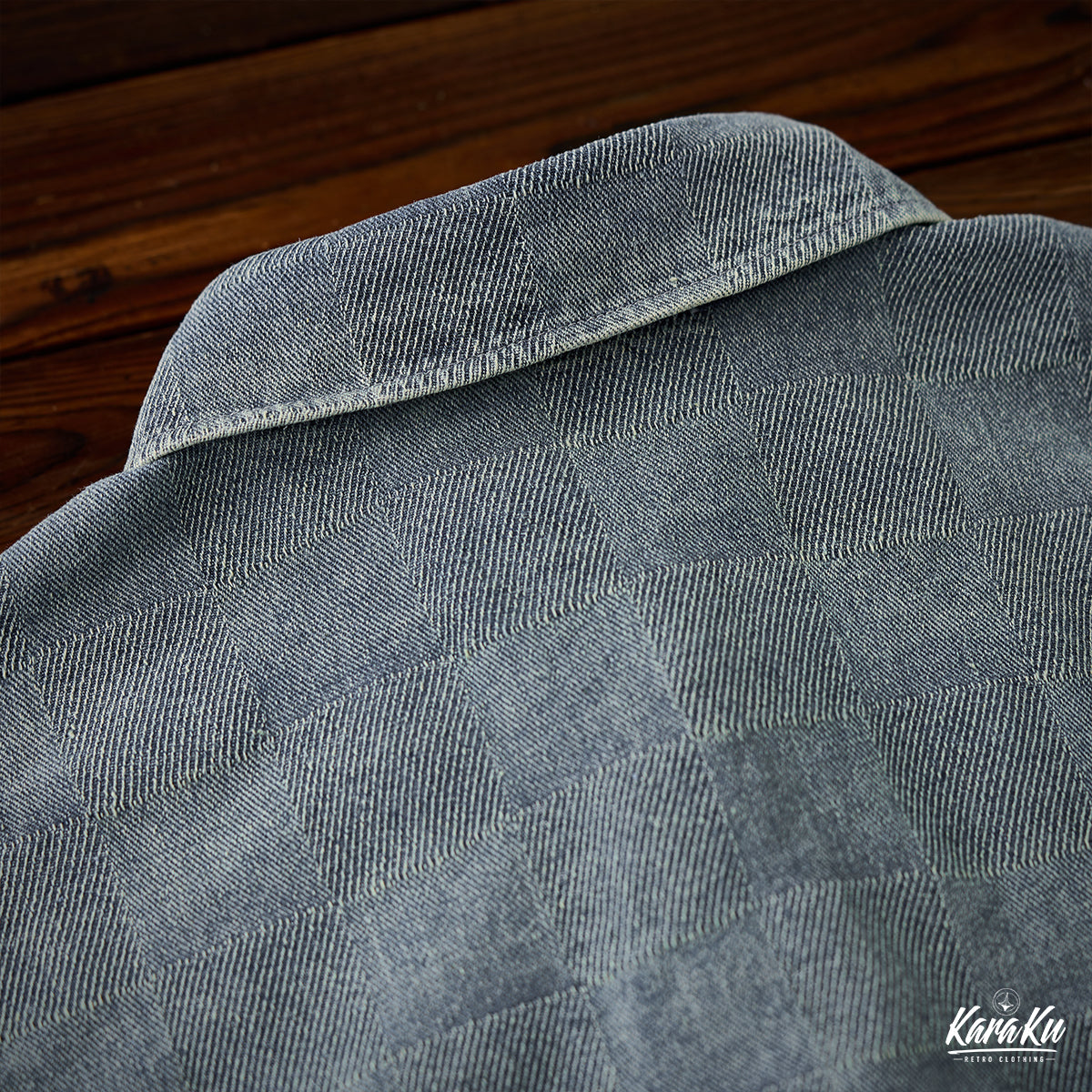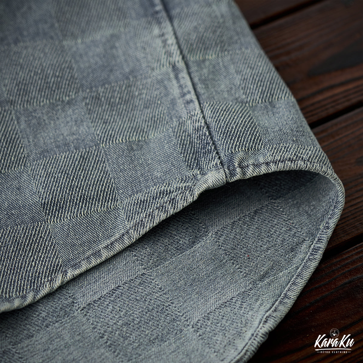 This product features a check pattern created through a knit weave that adds a subtle three-dimensional feel and a luxurious feel. It stands out with its unique design that sets it apart from regular denim shirts.
