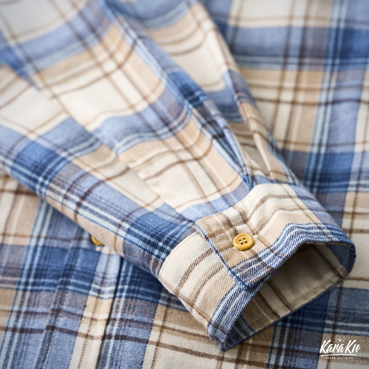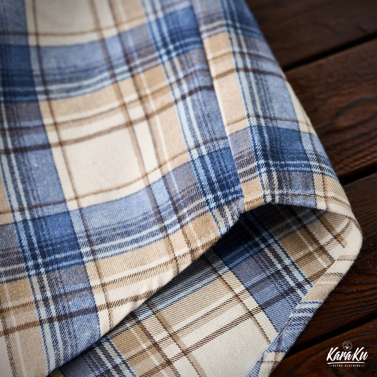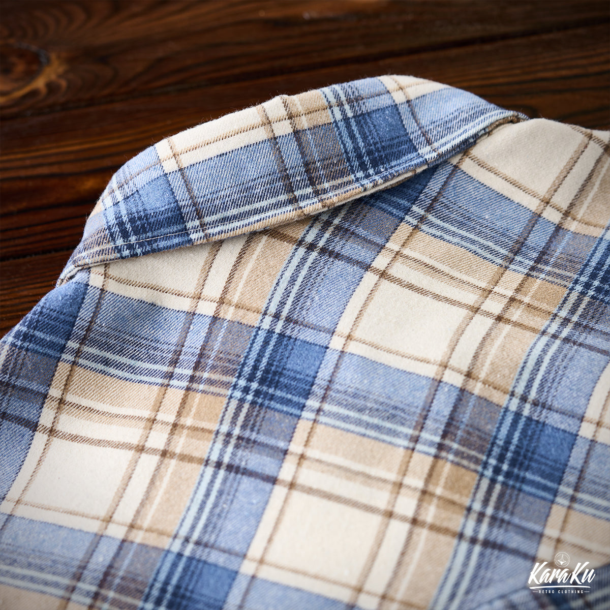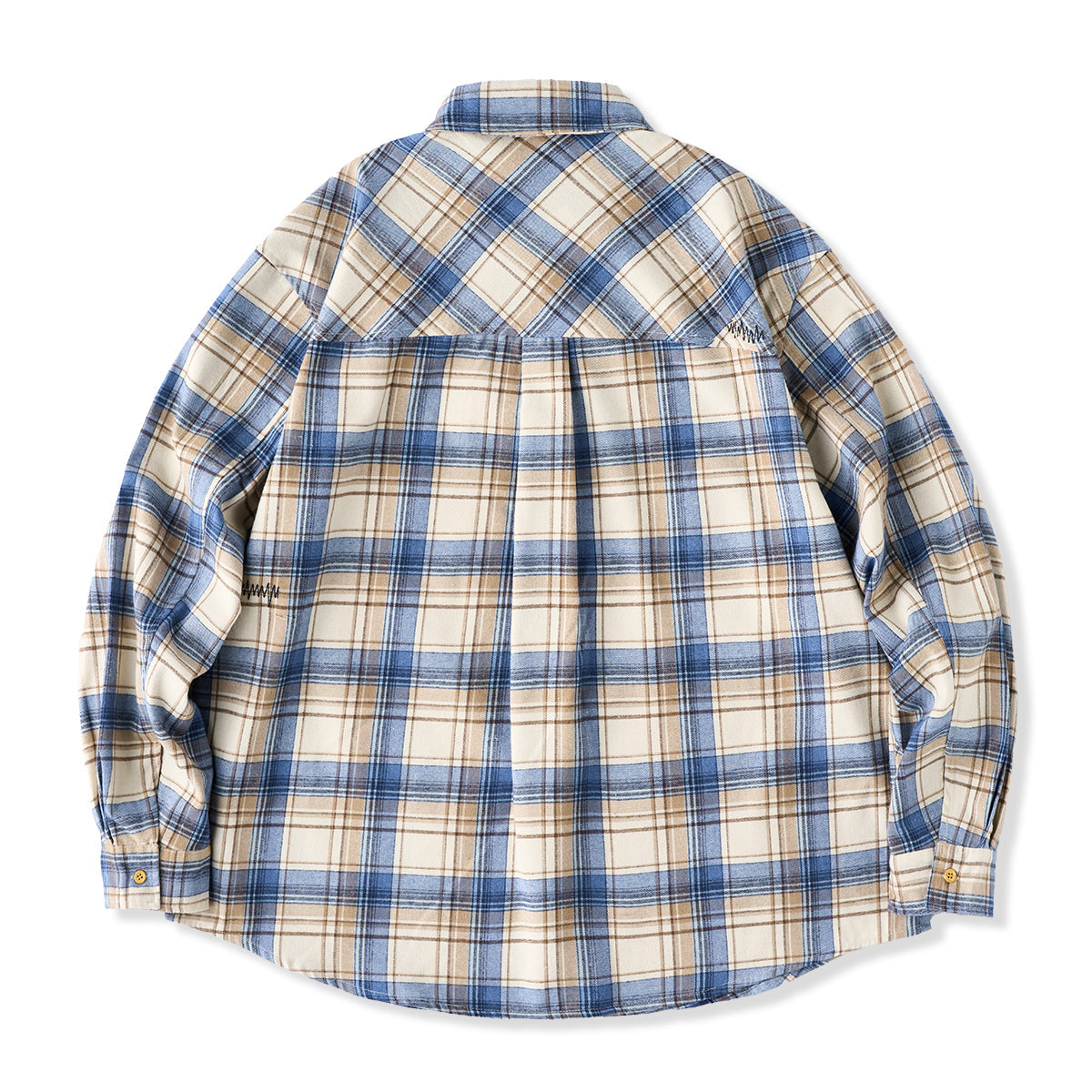 A vintage check work shirt with handmade distressing and jagged stitching for a unique twist.