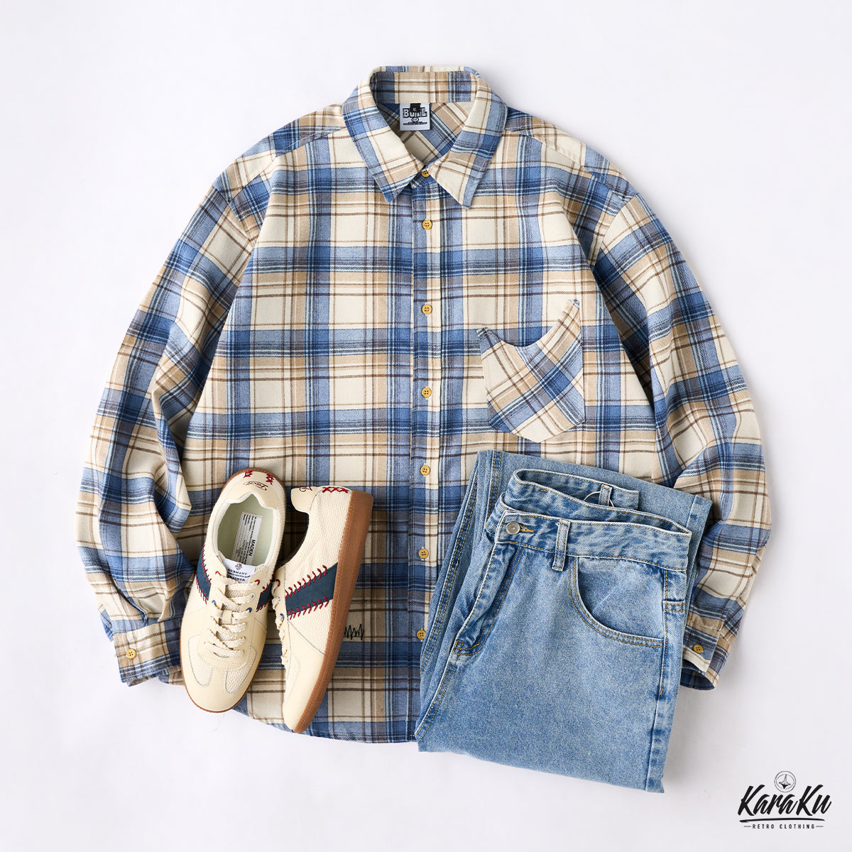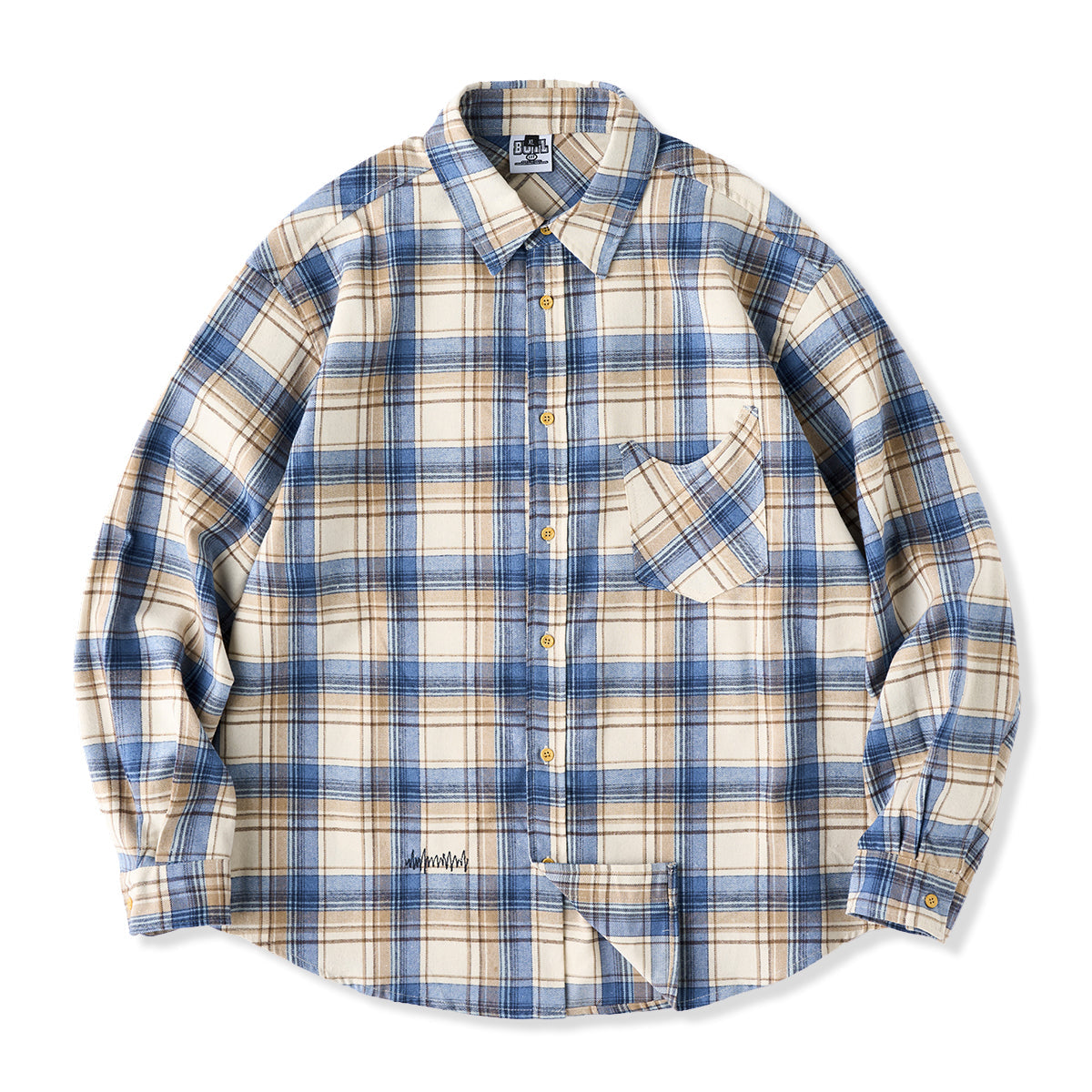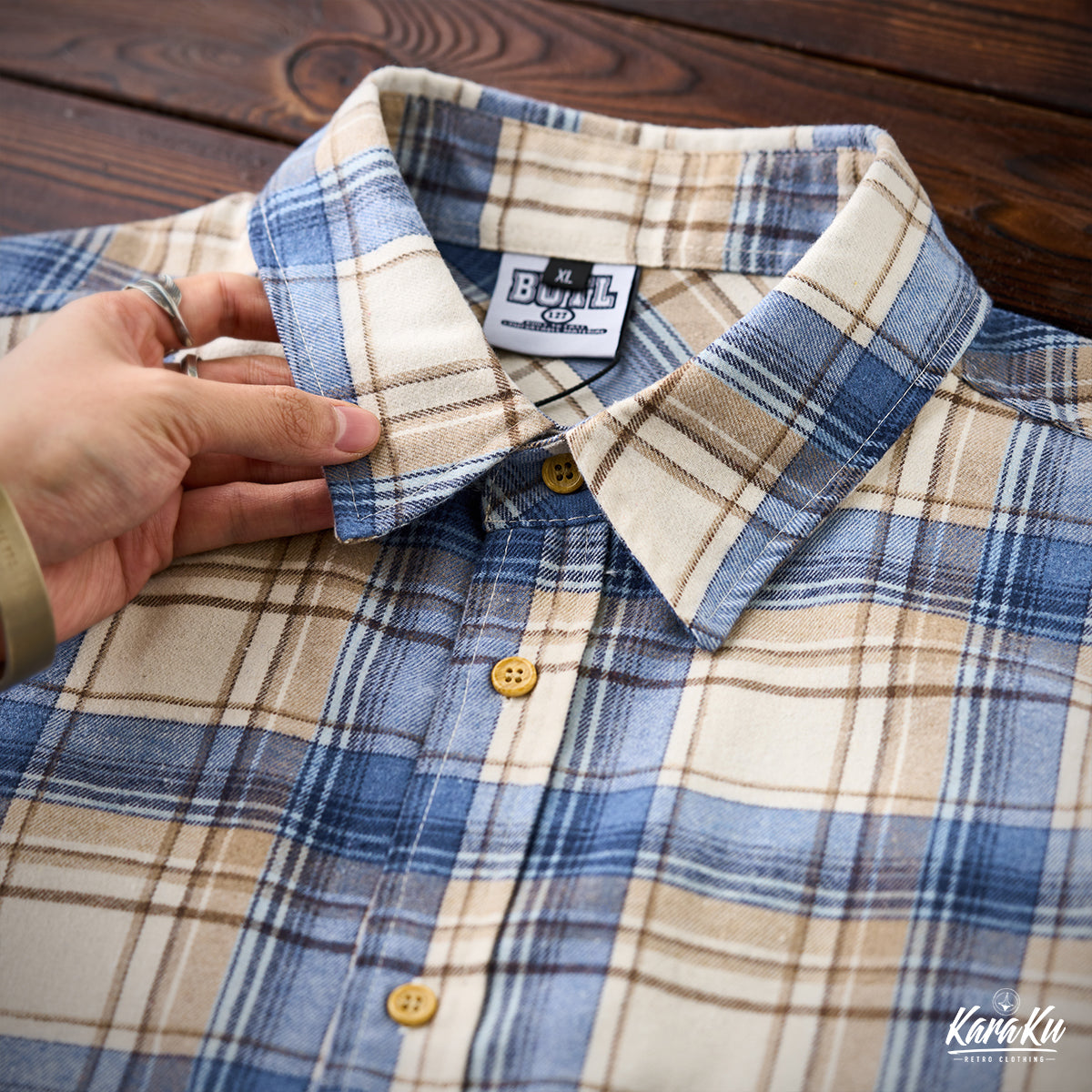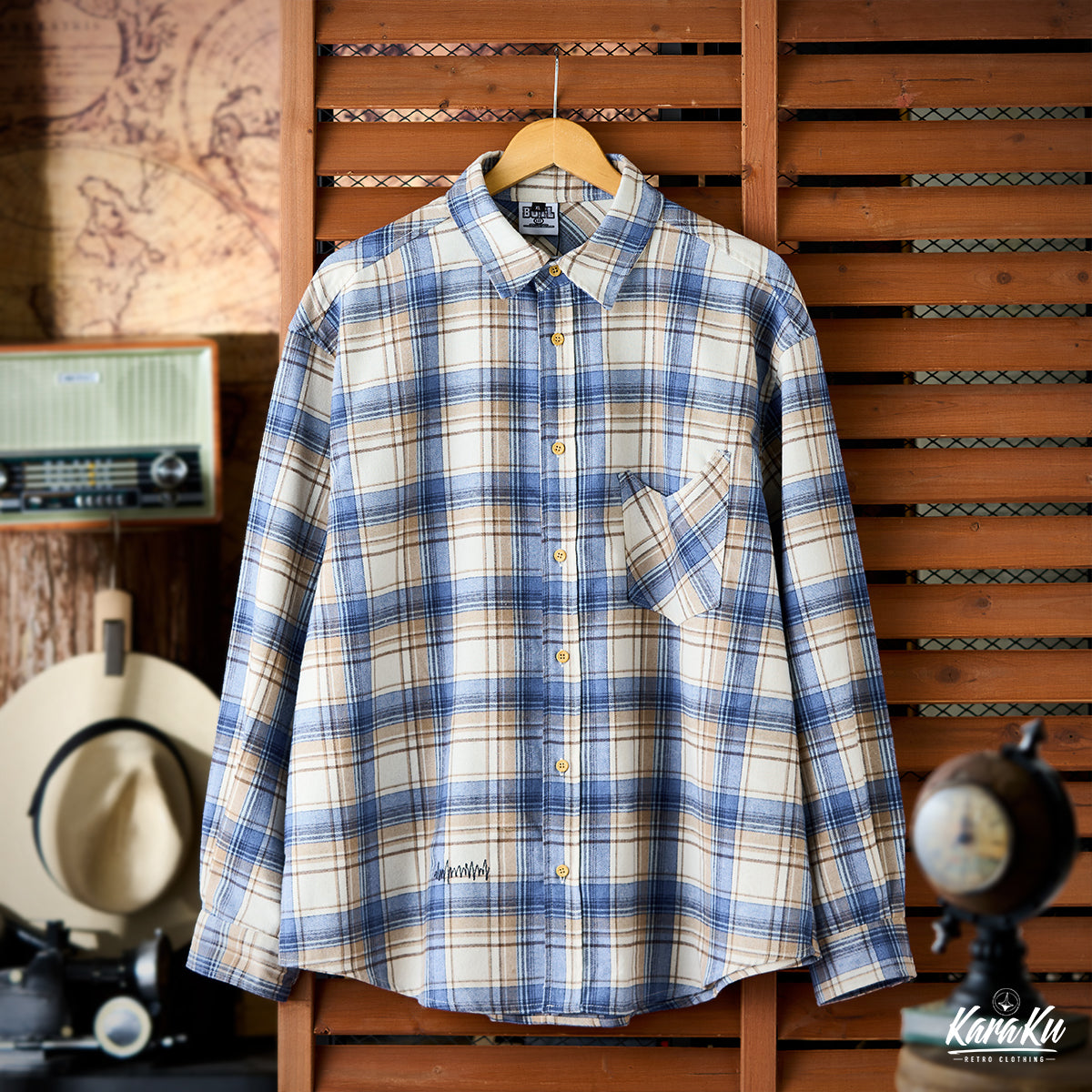 This vintage check work shirt features handmade damage processing and stitching, and can be styled in a variety of ways.