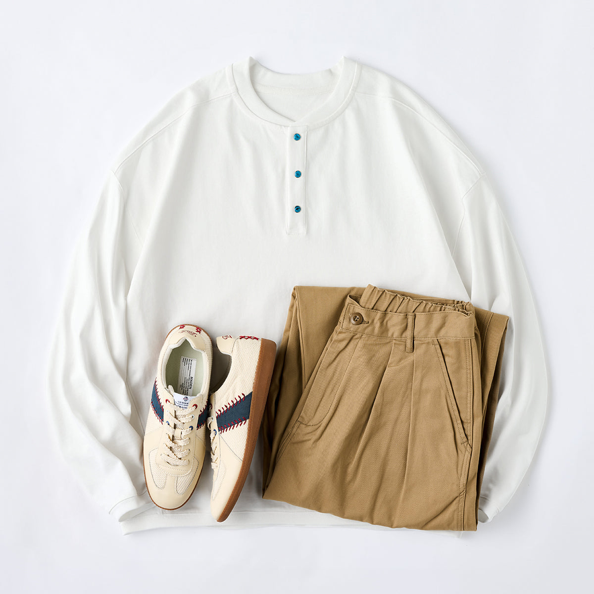 심플한 데님, 치노, 블랙 스키니 팬츠와 매치하면 균형 잡힌 스타일을 연출할 수 있으며, 밀리터리 재킷이나 데님 재킷과 레이어드하면 스트리트 무드를 살릴 수 있습니다.