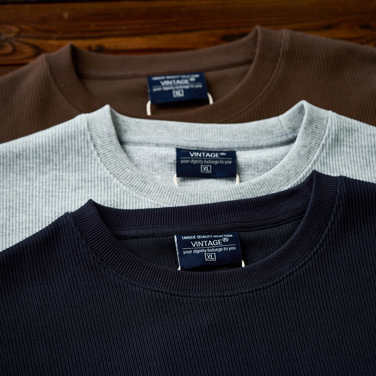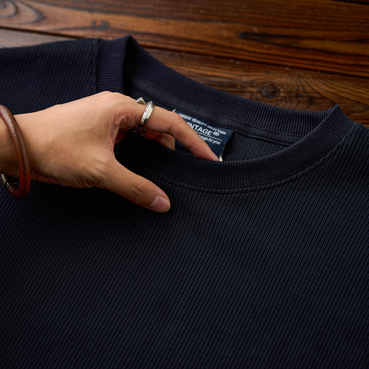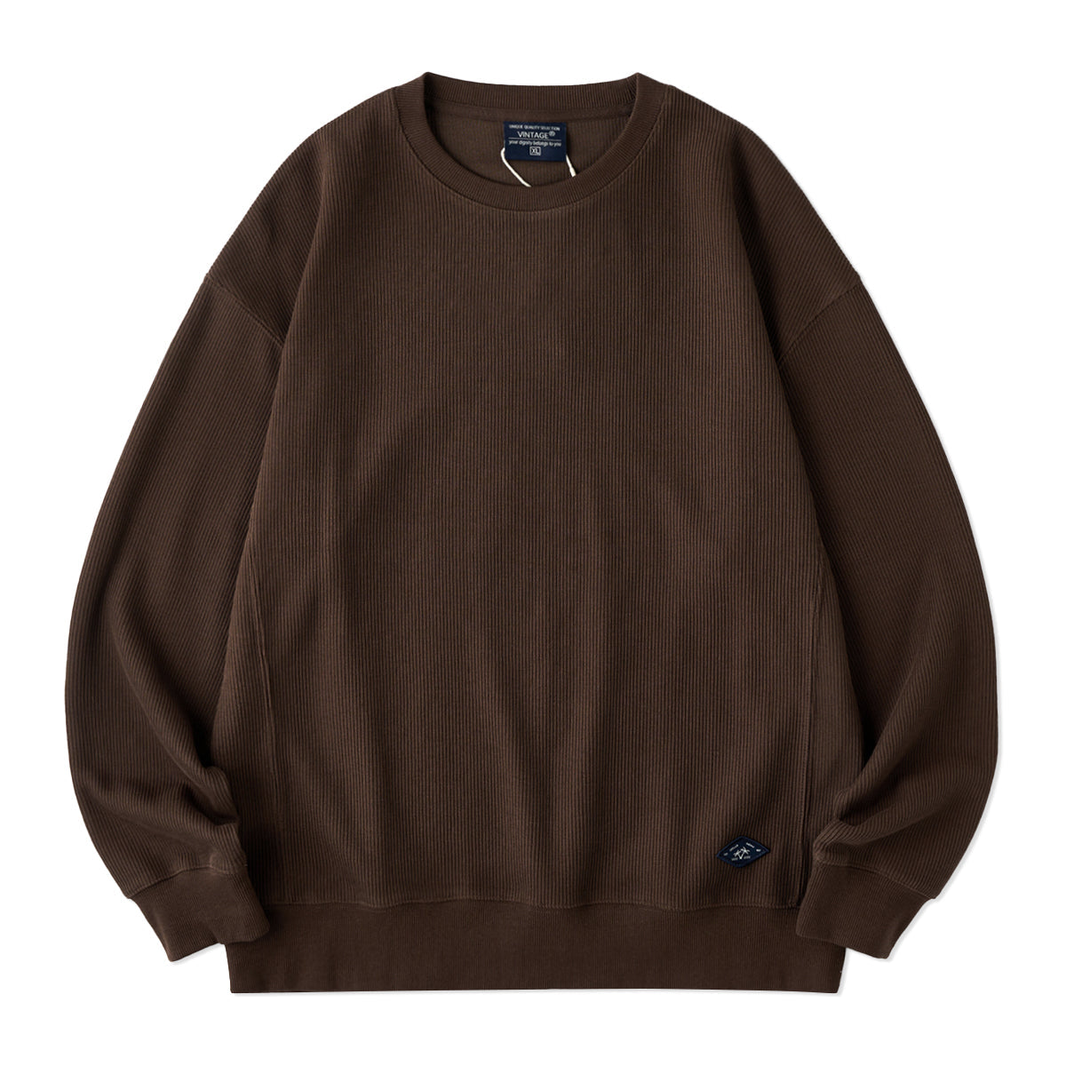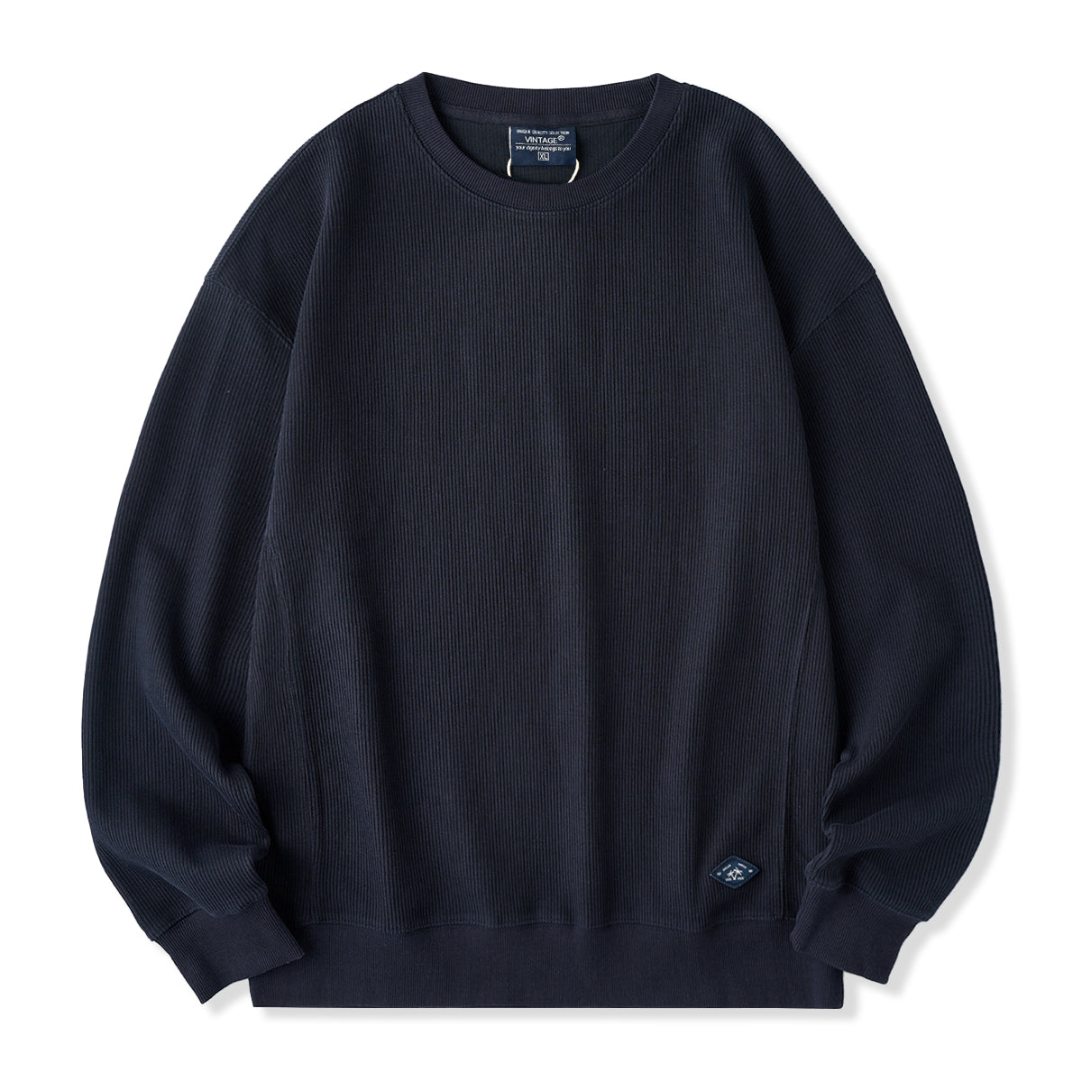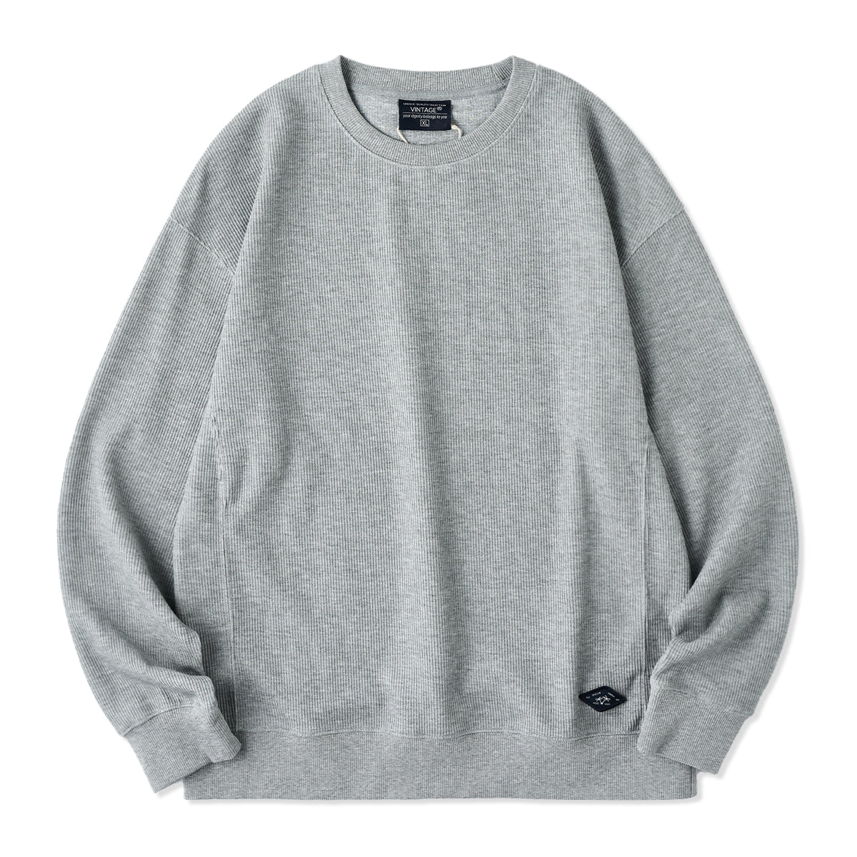 편안한 드롭 숄더와 니트 짜임 느낌의 소재로 제작하여 고급스러운 분위기를 살린 풀오버 스웨트셔츠, 단독이나 레이어드 모두 활용 가능한 데일리 아이템.