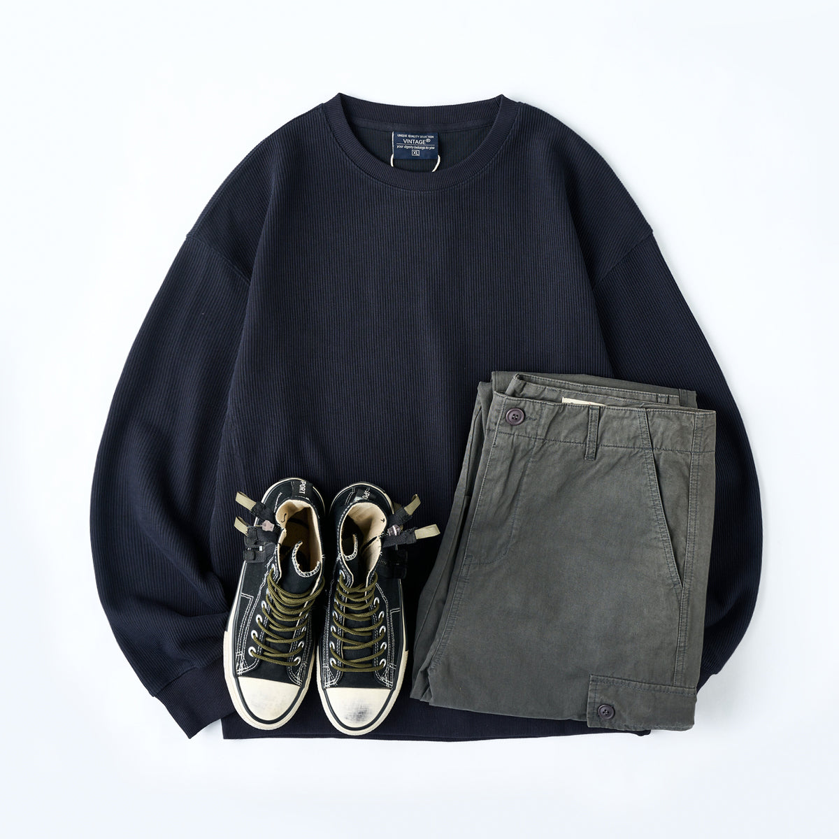 어깨선을 자연스럽게 내려 편안한 착용감을 주고, 여유 있는 실루엣으로 캐주얼하면서도 멋스러운 스타일을 연출할 수 있습니다.