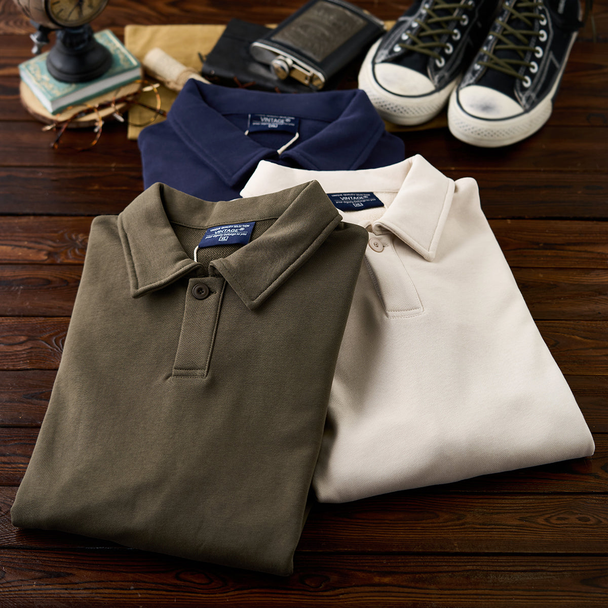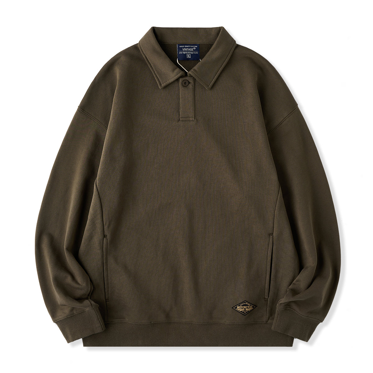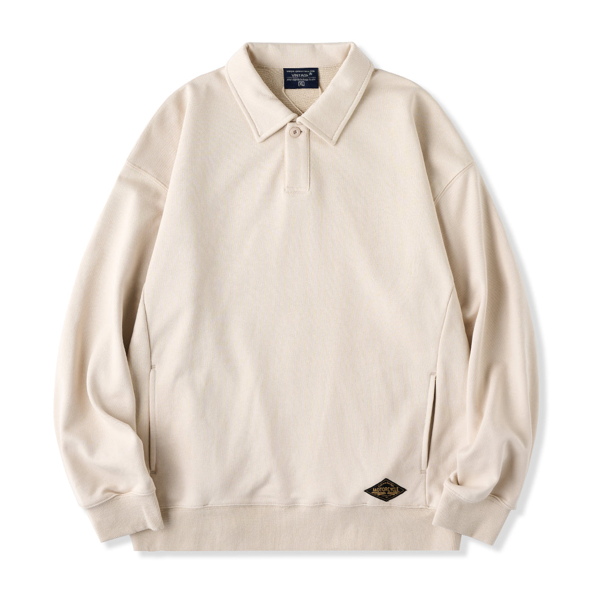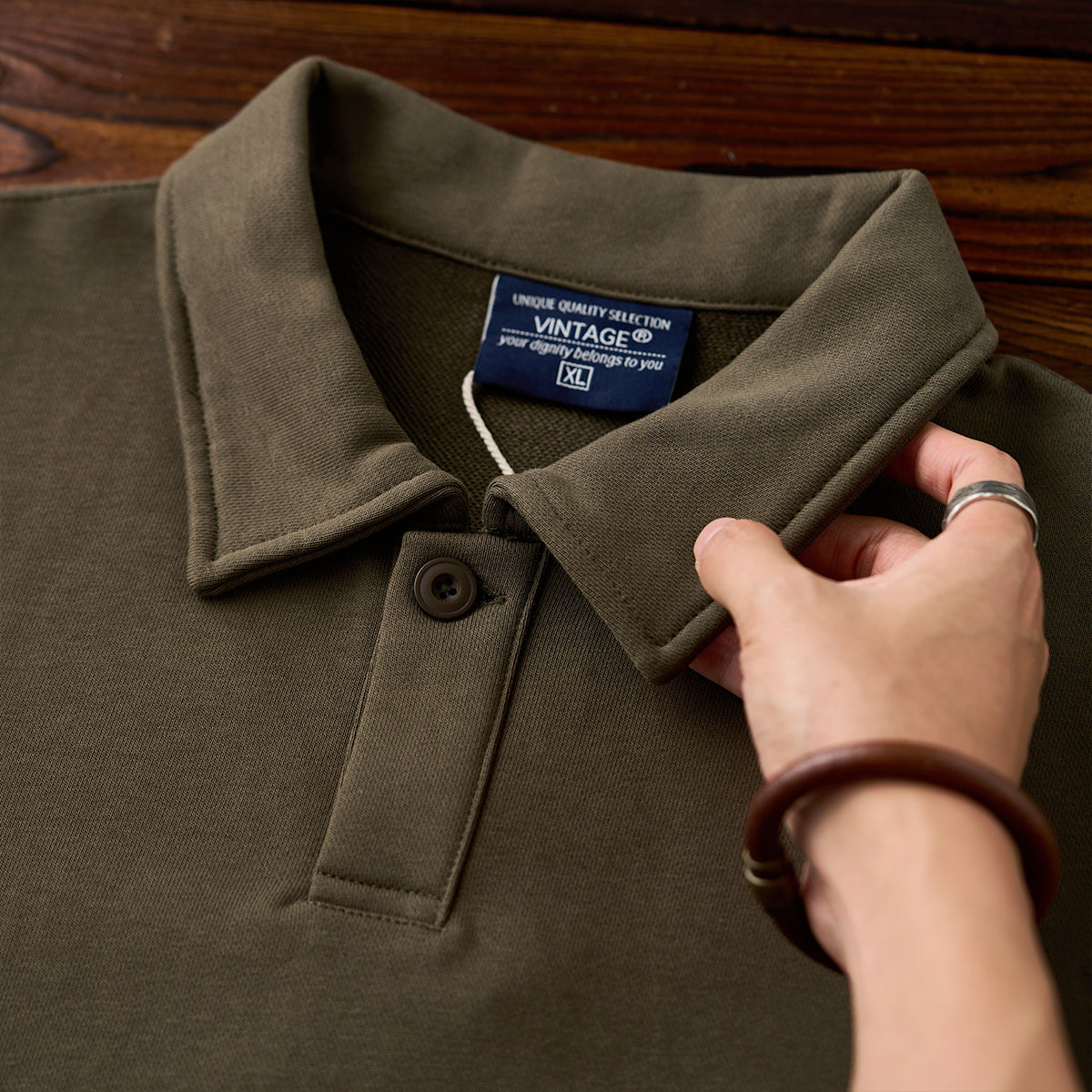 400g 헤비웨이트 기모 원단 원버튼 폴로 칼라 스웨트셔츠