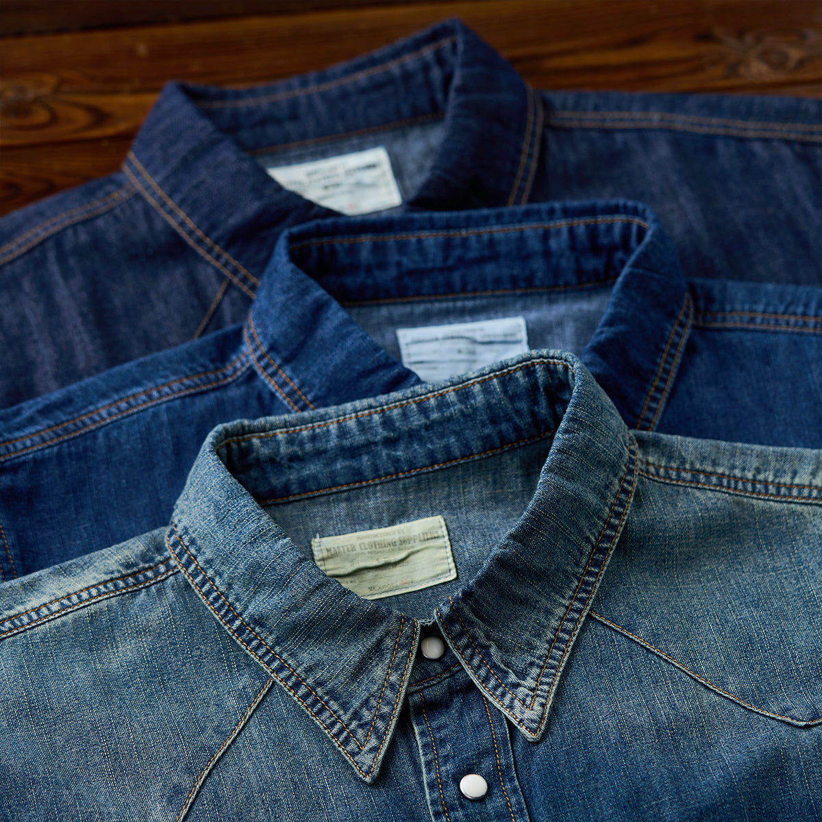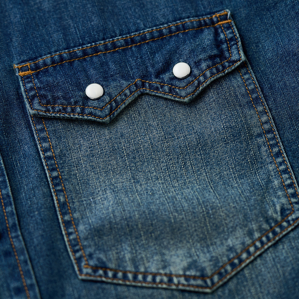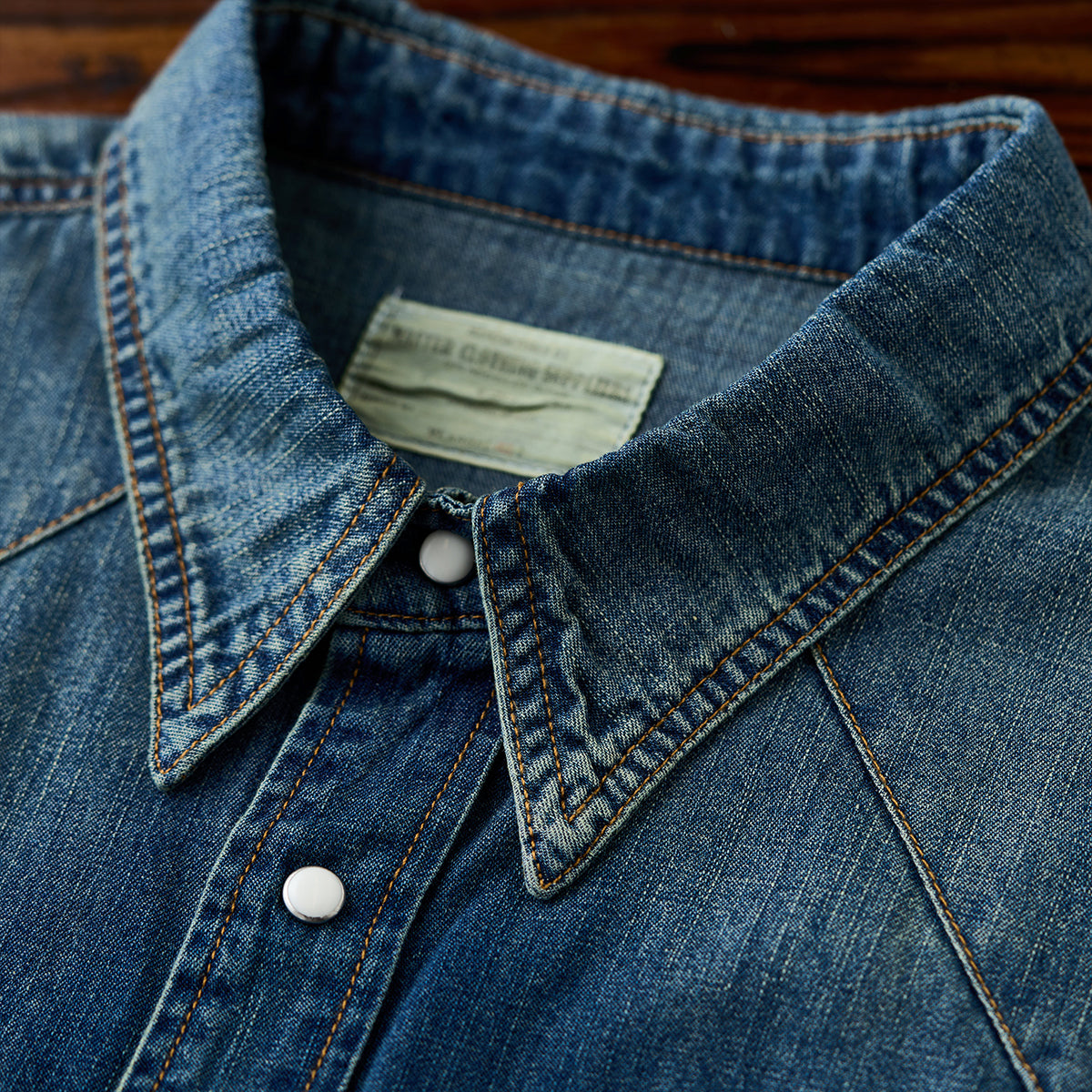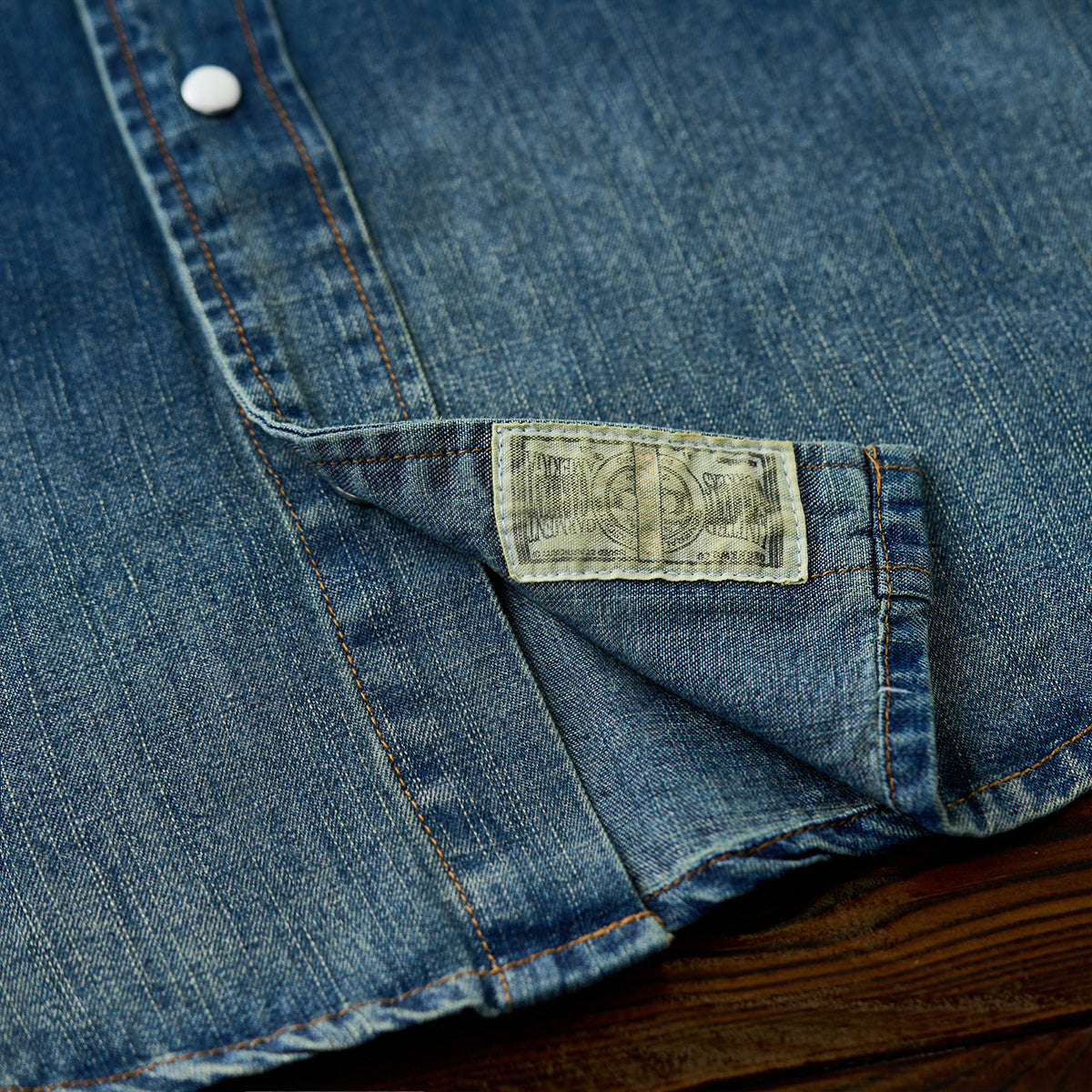 배색 스냅 버튼 7oz 슬라브 데님 웨스턴 워크 셔츠