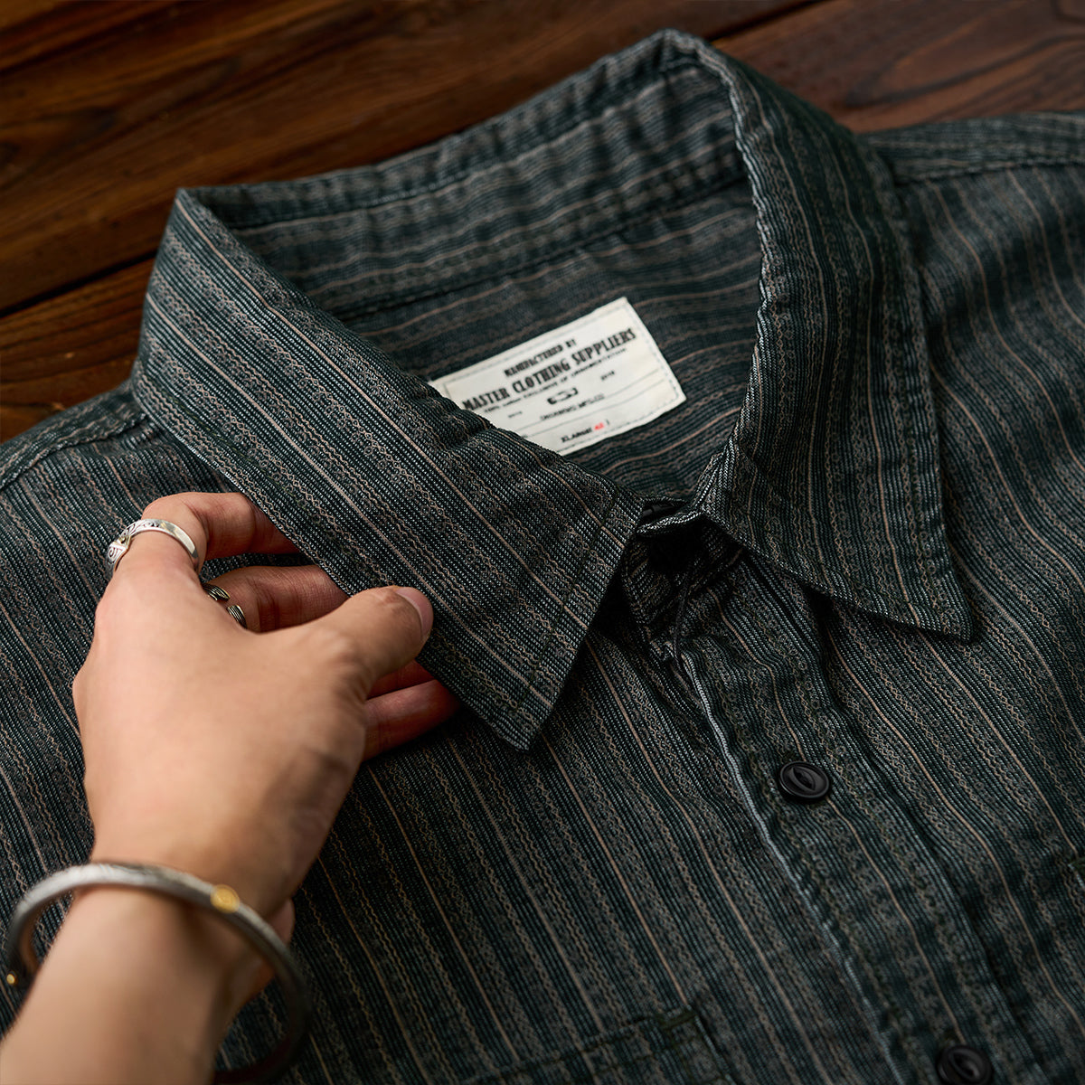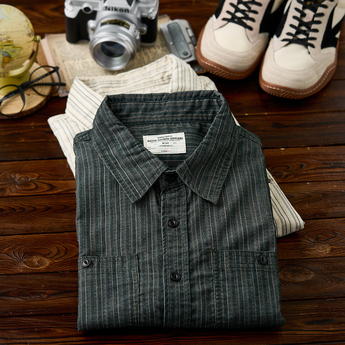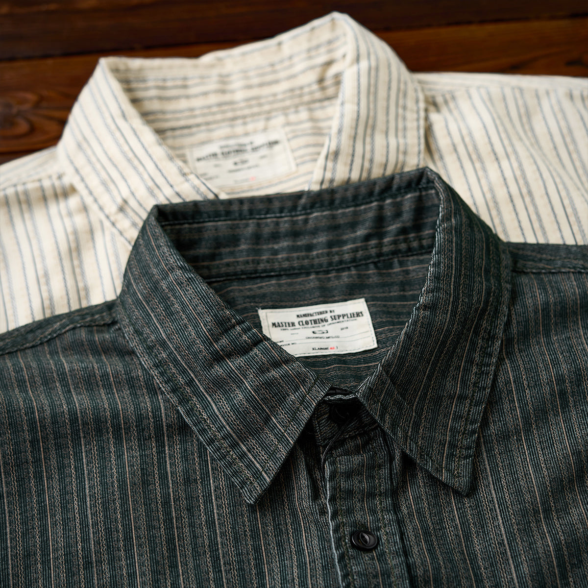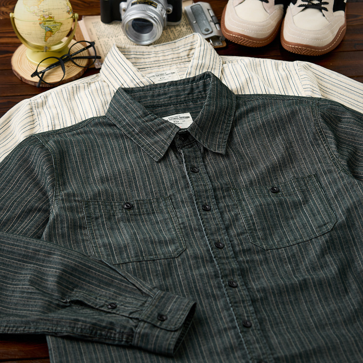 2컬러 멀티 스트라이프 잔골 코듀로이 워크 셔츠