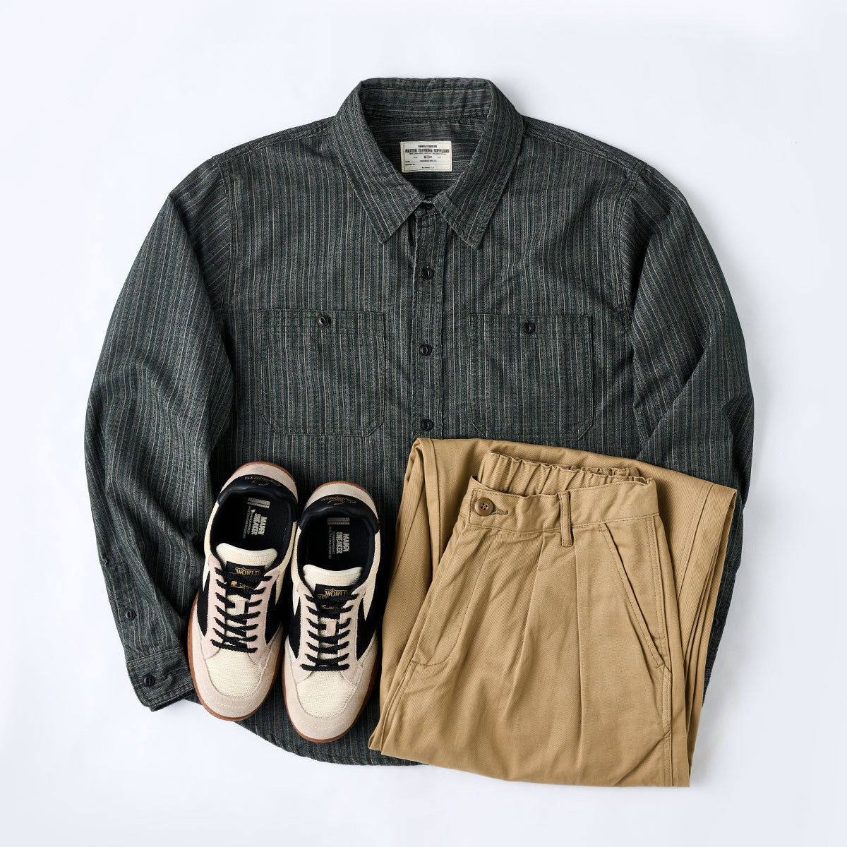 베이지 치노 팬츠와 매치하면 세련된 캐주얼 스타일이 완성되며, 로퍼와 함께 차분한 성인 남성 룩으로 연출할 수 있습니다.