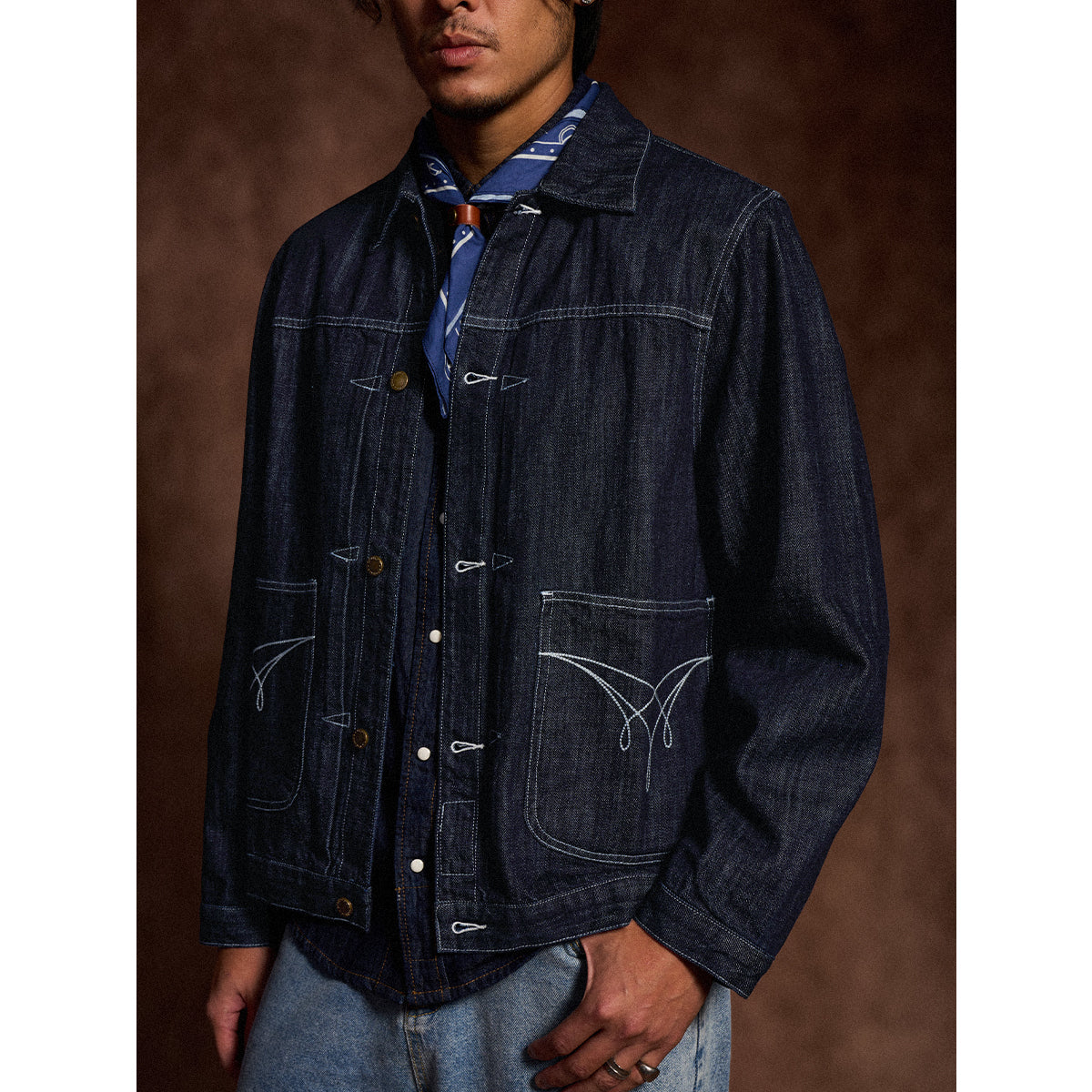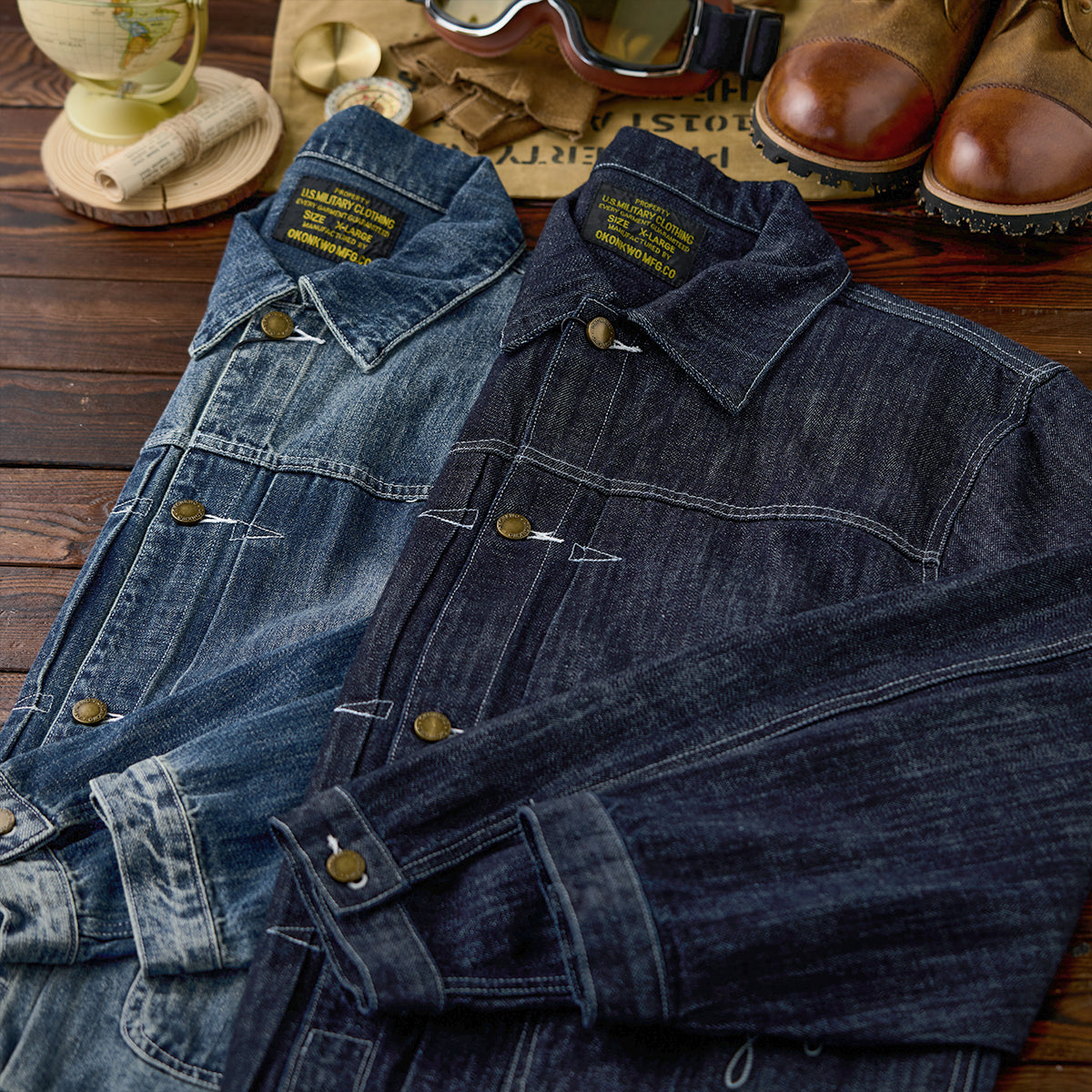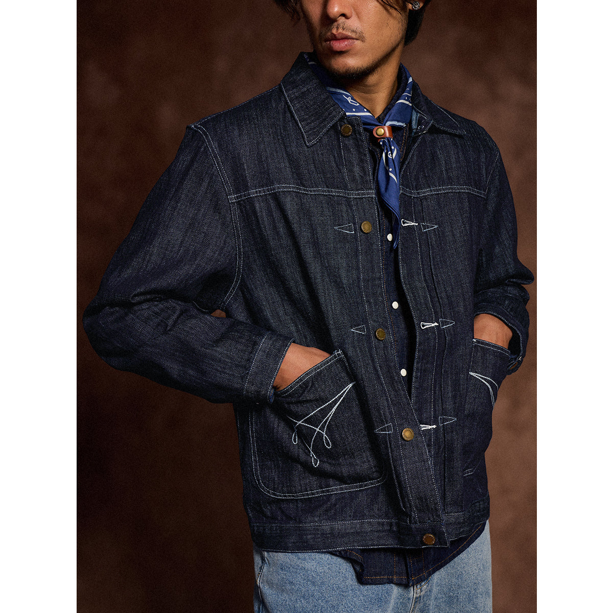 생데님 & 워시드 두 타입 대칭 포켓 스티치 데님 자켓