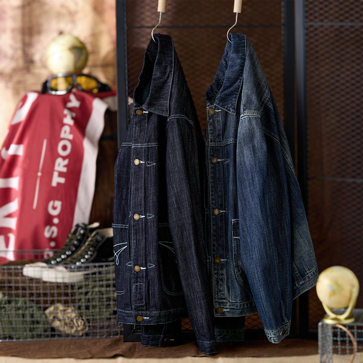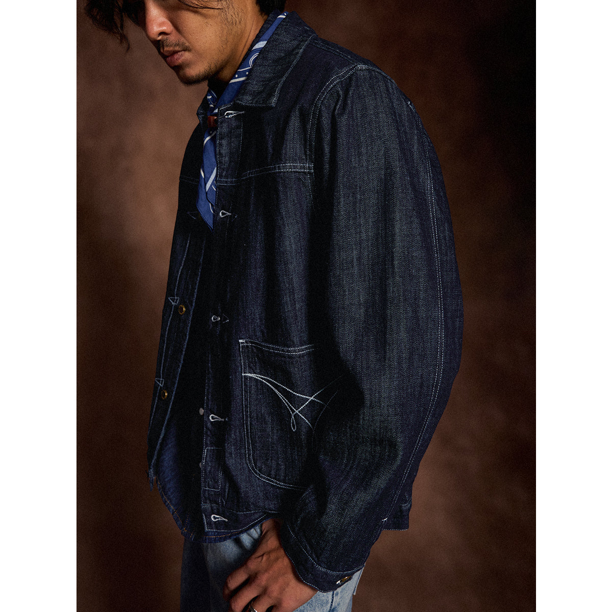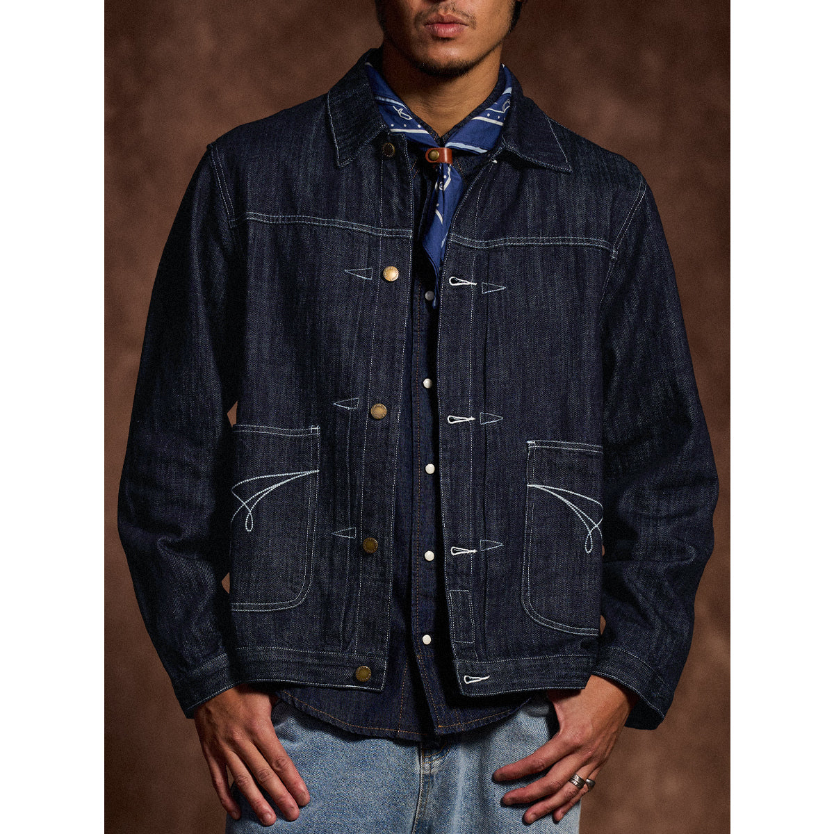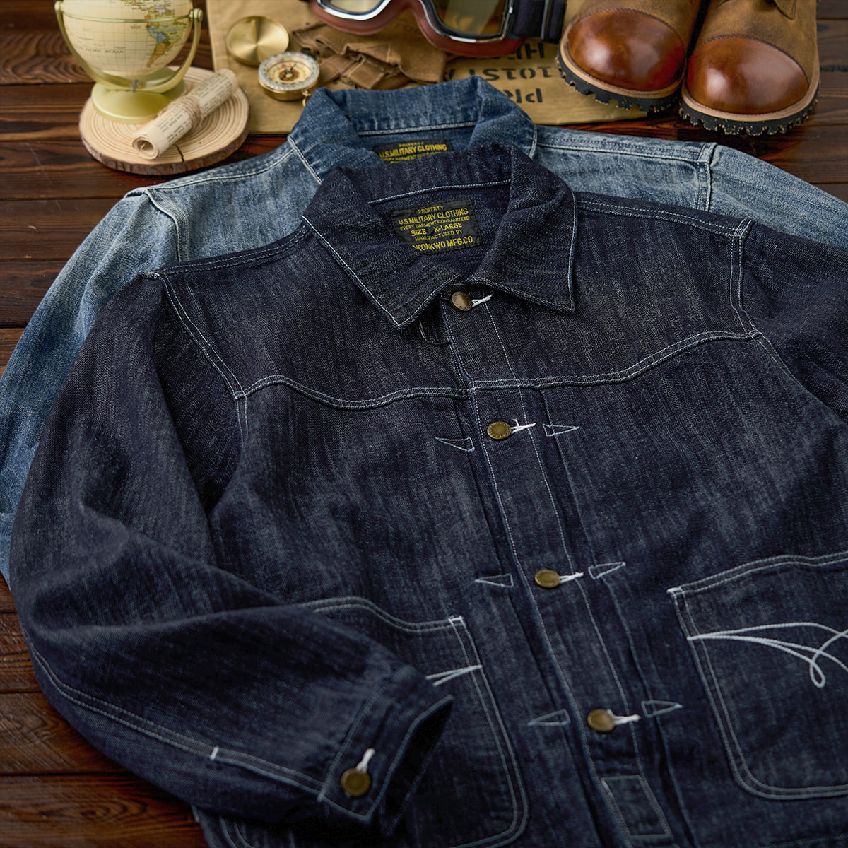 생데님 & 워시드 두 타입 대칭 포켓 스티치 데님 자켓