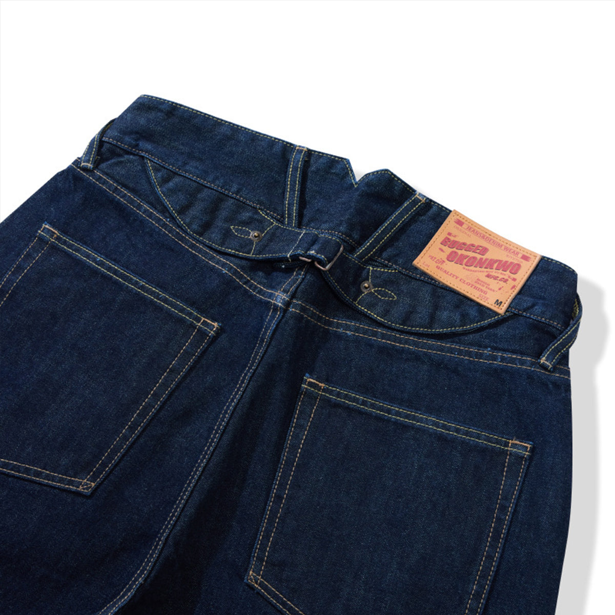 백 웨스트에는, 벨트가 널리 사용되지 않았던 시절 허리 둘레를 맞추기 위해 고안된 신치백이 장착되어 있어, 워크웨어 특유의 기능성을 갖추는 동시에 뒤태에 독특한 존재감을 더합니다.