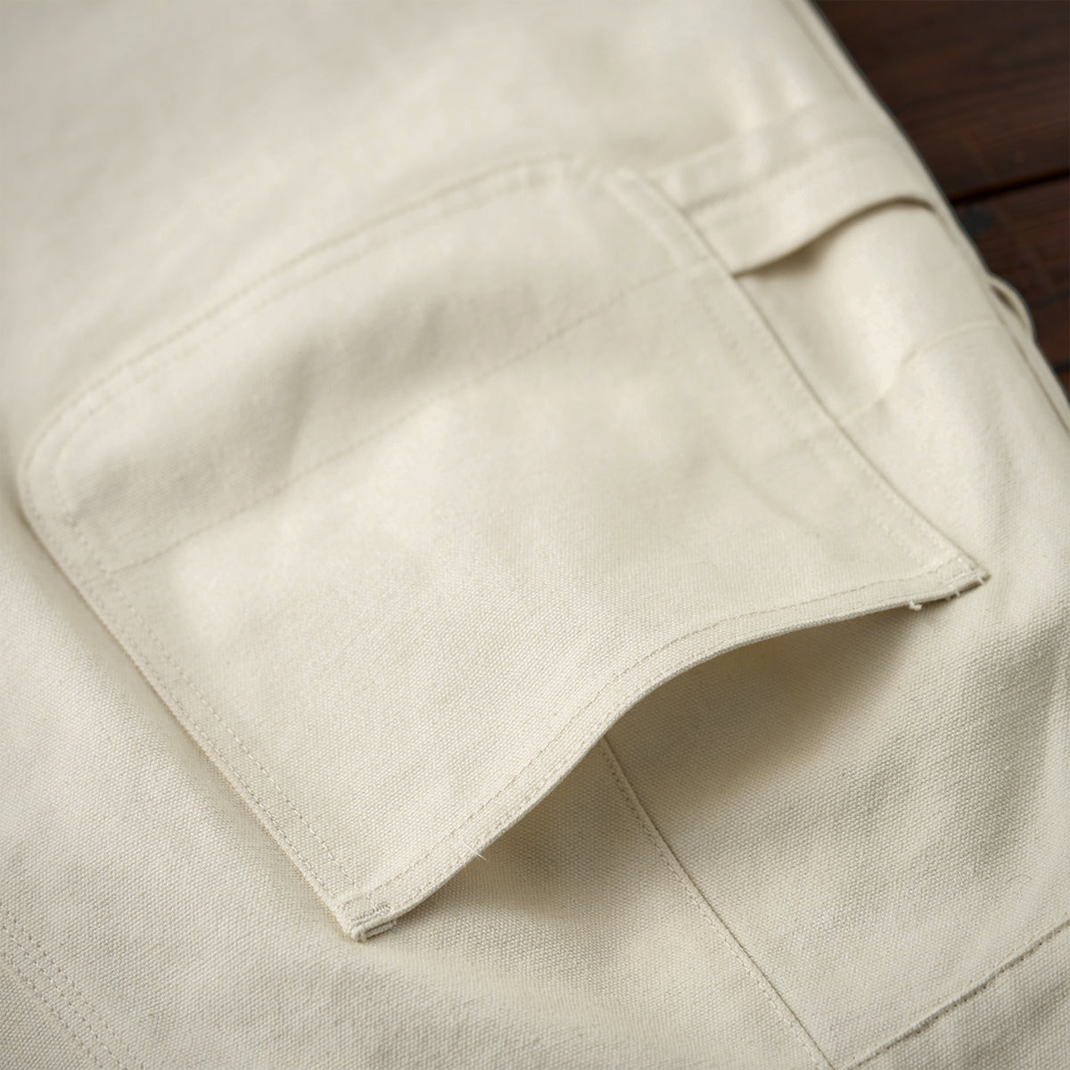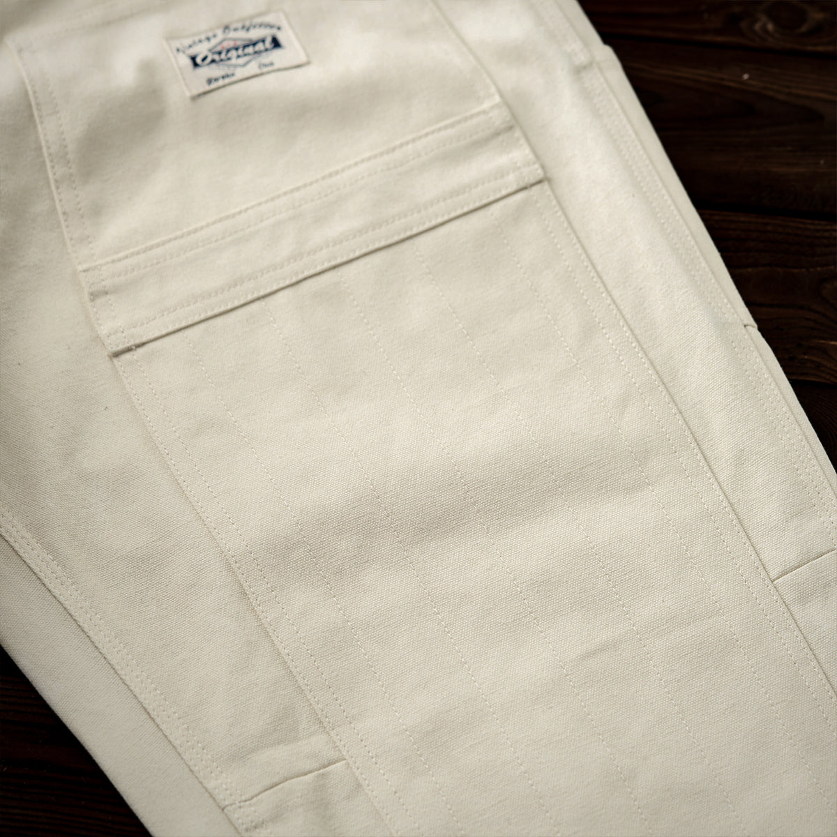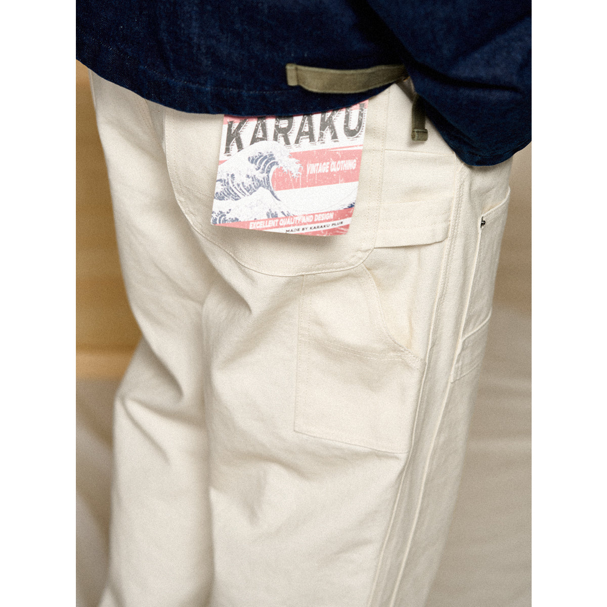 Painter pants are work pants frequently used by paint craftsmen and are characterized by hammer loops (hooks for hanging hammers) and wrench pockets. This item has improved design while incorporating painter pants details and is also functional.