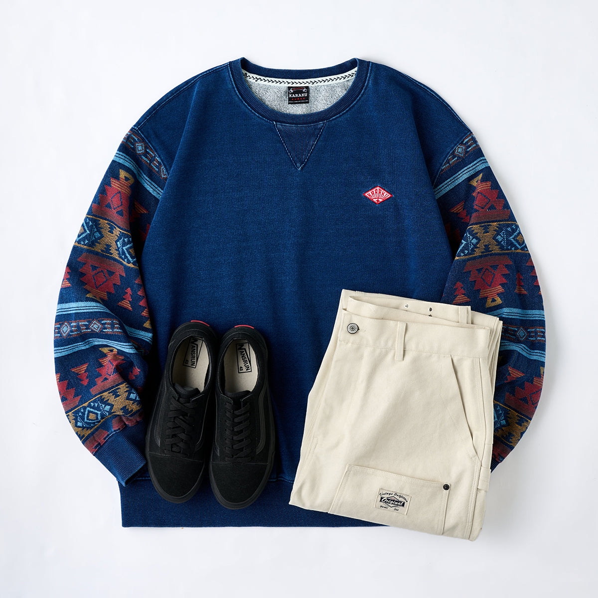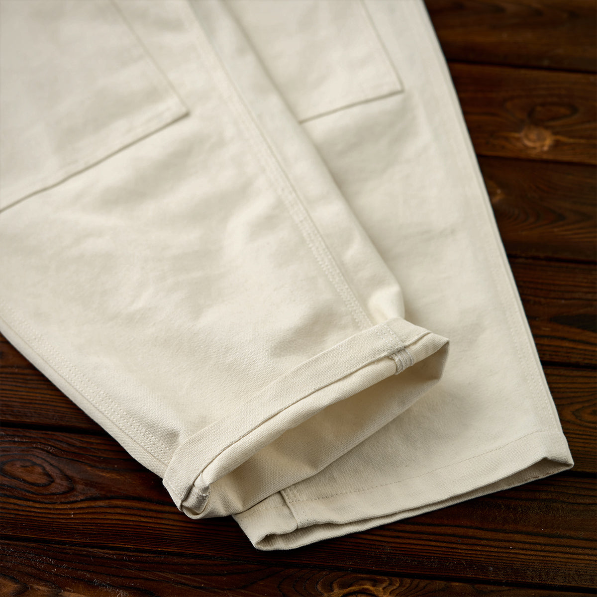 There are plenty of points that stand out with work details, such as the steady-selling hammer loop on the left foot and the 'slim-looking' tool pocket on the front. The fabric on the knee area has been improved with a double-layer design, further enhancing the presence of the entire pants. The ample, straight-cut silhouette provides a comfortable fit.