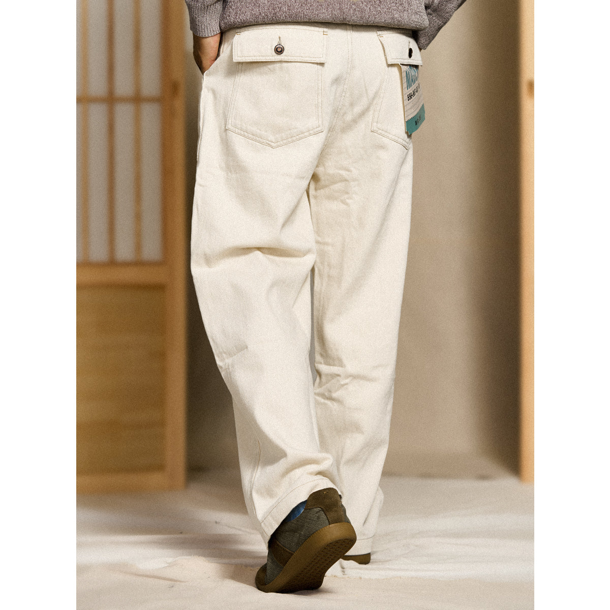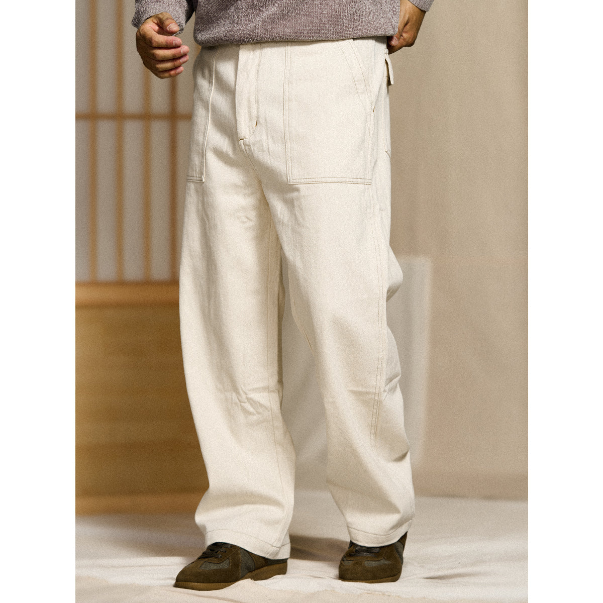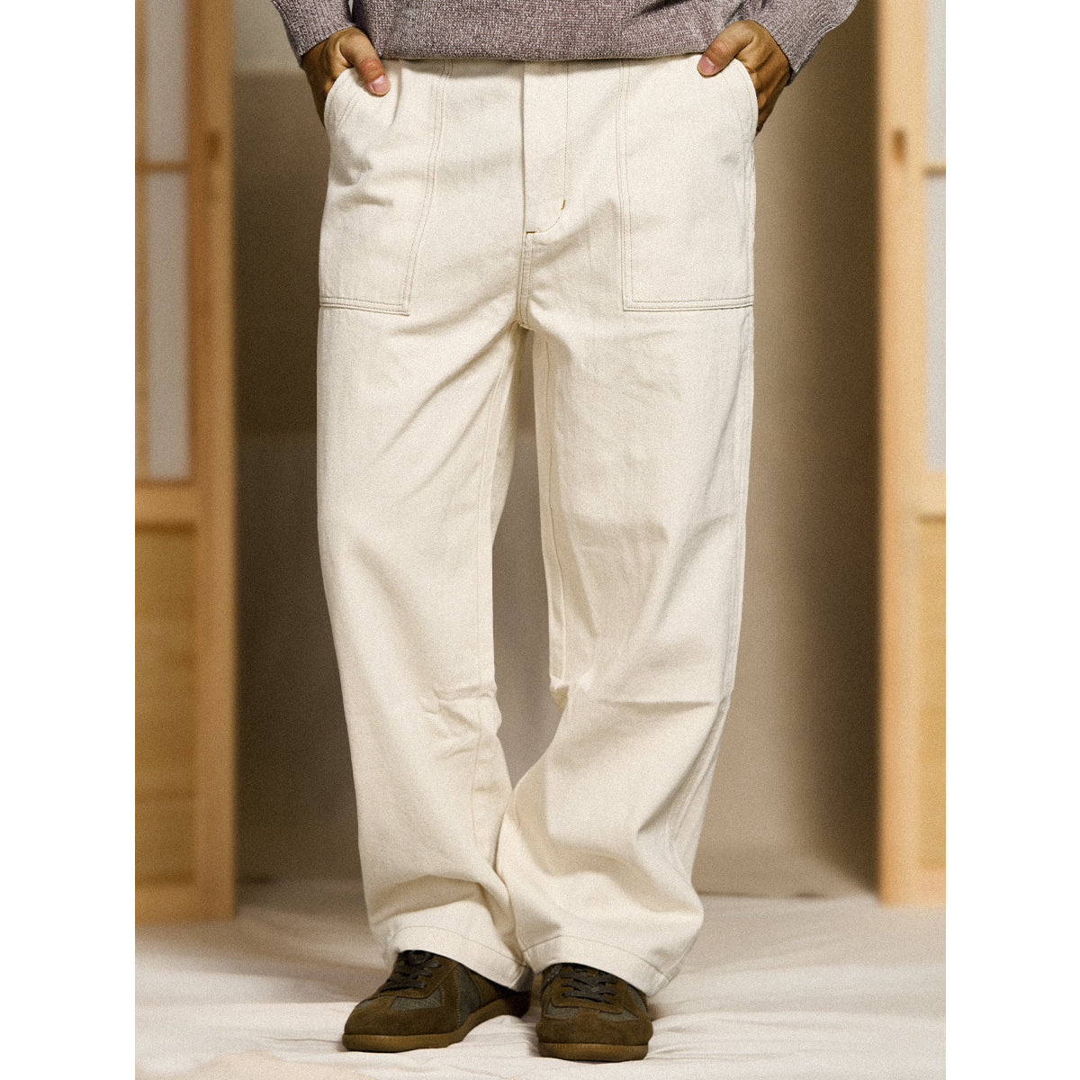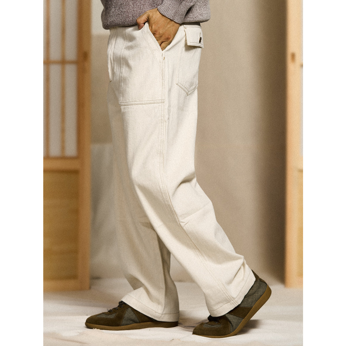 Made of a unique 11.2oz Serviche denim, this heavyweight fabric has a great feel and vintage vibe, and is designed with a relaxed straight fit that's functional and practical, making it a pair of denim pants that can be worn all season long.