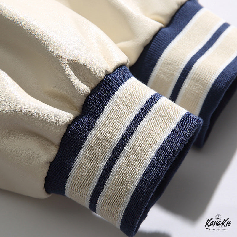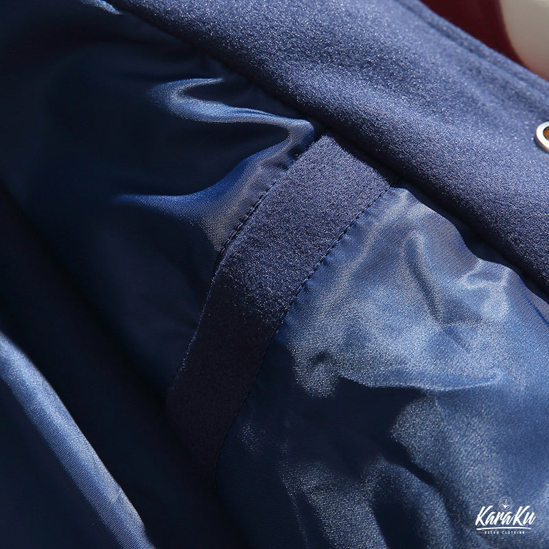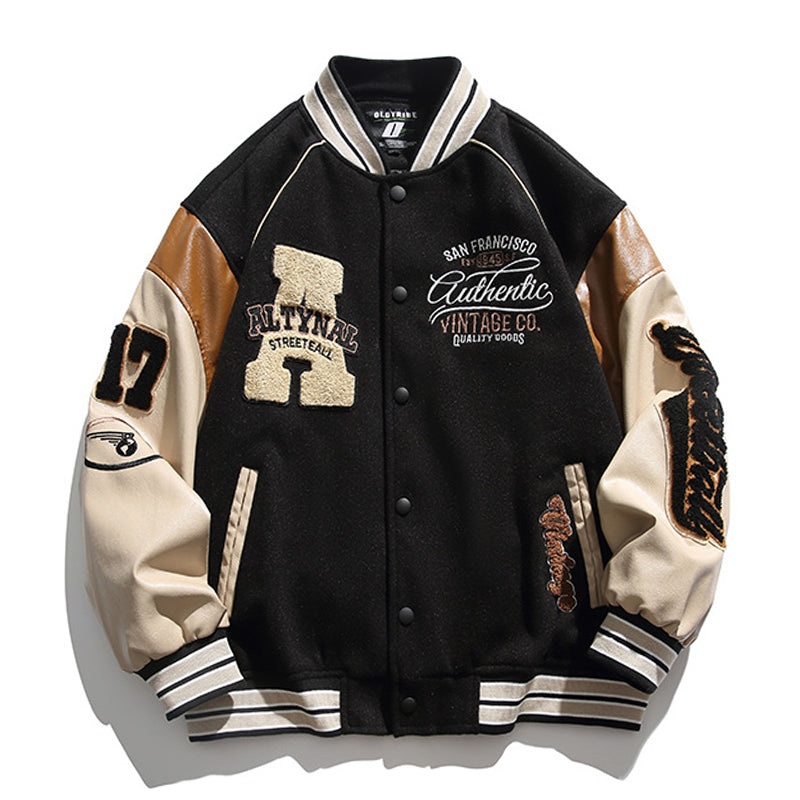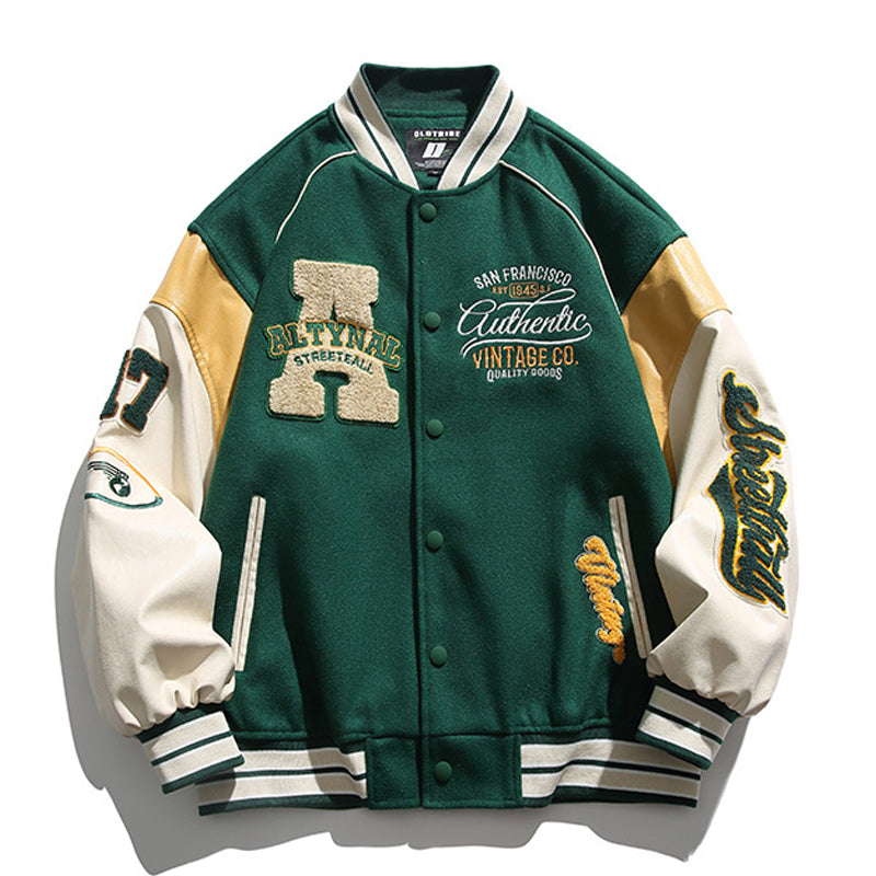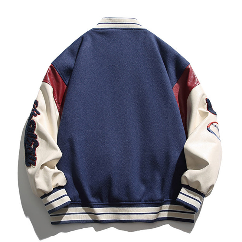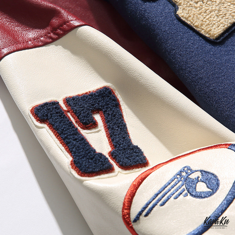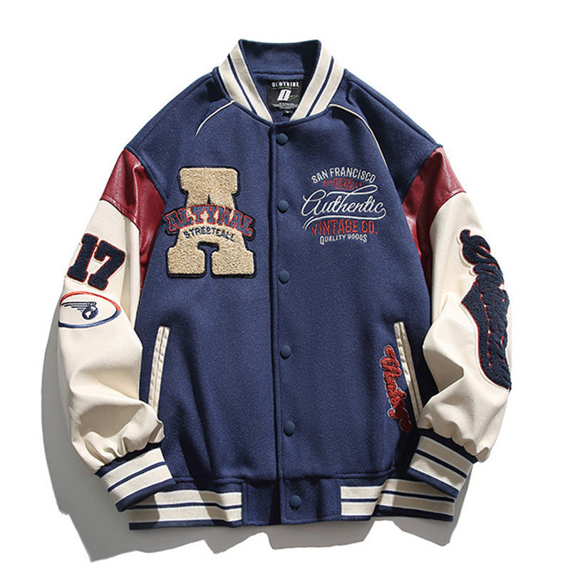 The royal road design with large embroidery on the front, including the sleeves, gives off an American casual and vintage feel.