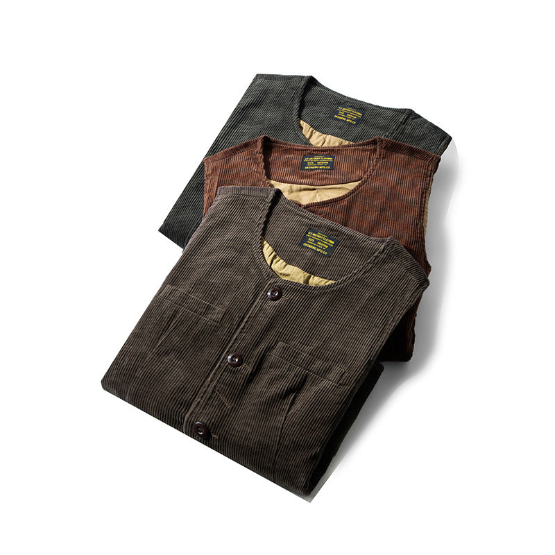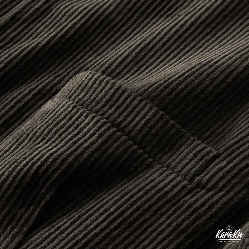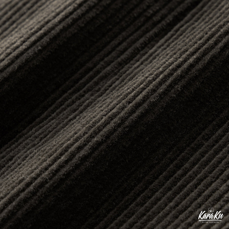 By subtly adjusting the neck and shoulder line pattern, a thin corduroy with a clear ridge is used. The ridges are extremely fine, but the pile is firm, creating a dense and high-density material like velour.