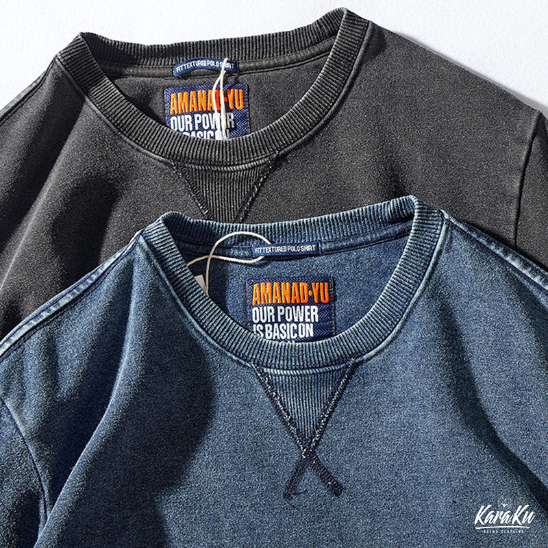 It is a point with a triangle design stitched on the front, which originated from the US Navy trainers of the 1930s. The crew neck protects the neck area and creates a stylish feel. It provides a soft touch and warmth, and the loose silhouette provides a comfortable fit. The ribbed weave of the collar, cuffs, and hem is elastic and prevents the wind from entering.