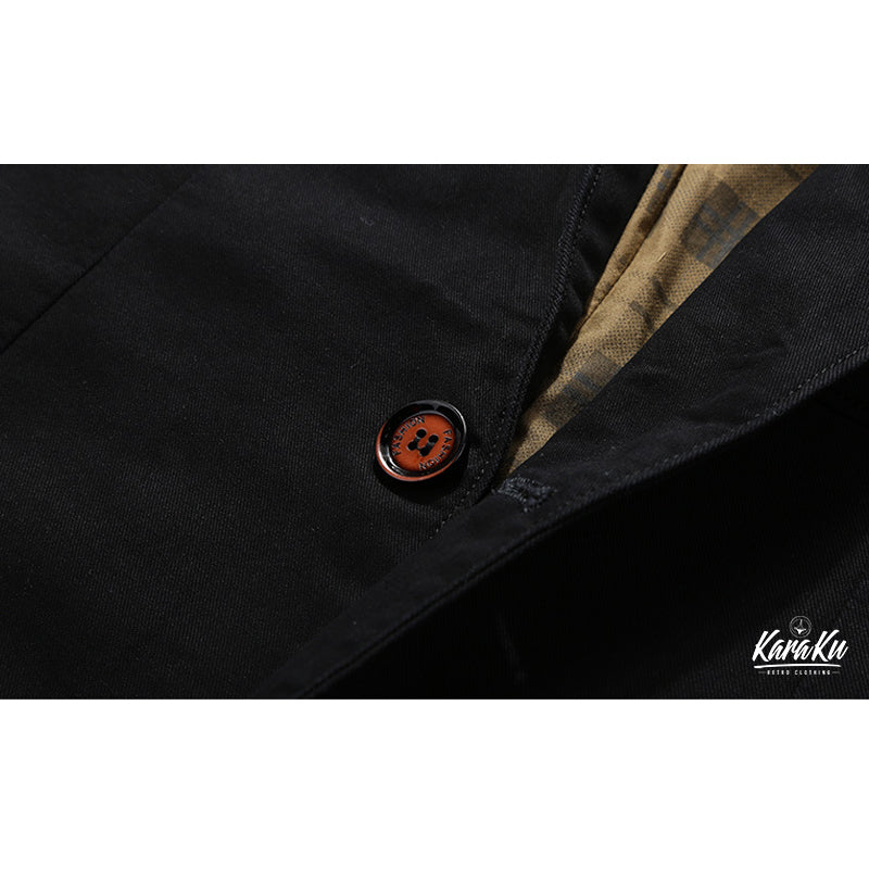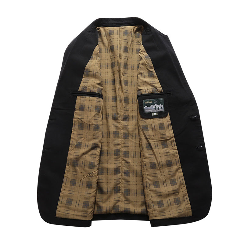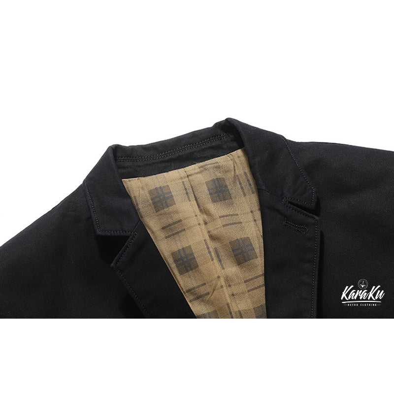 The inside of the garment features a traditional check and a tartan pattern that developed in the Scottish Highlands, giving it a vintage feel.