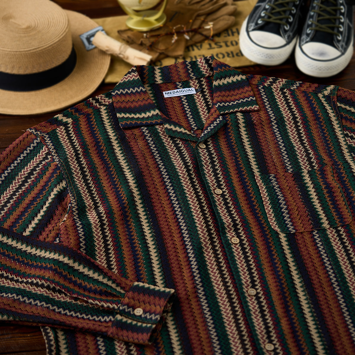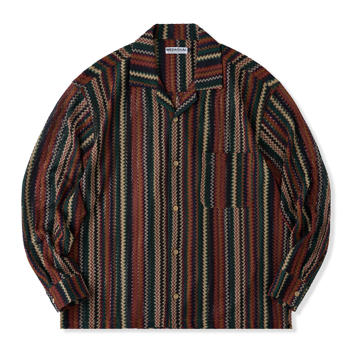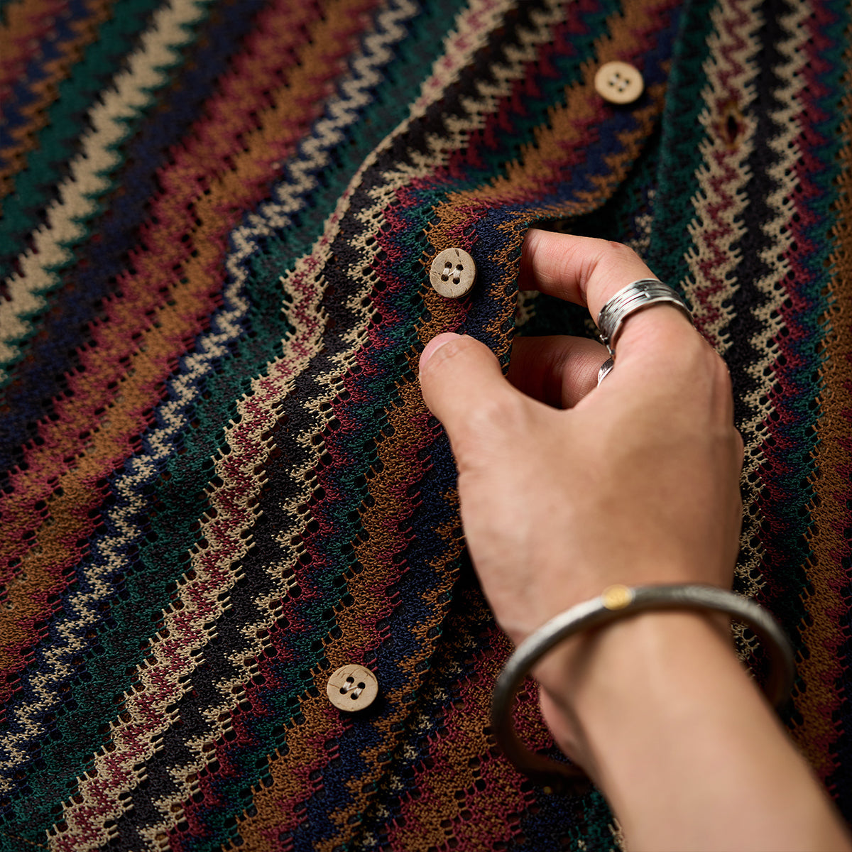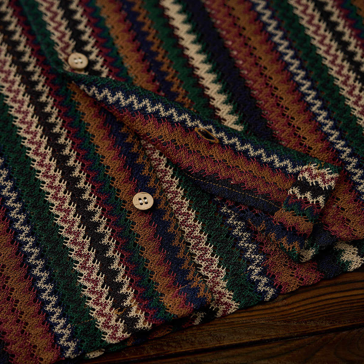 멀티 스트라이프 펀칭 니트 긴팔 쿠바 셔츠