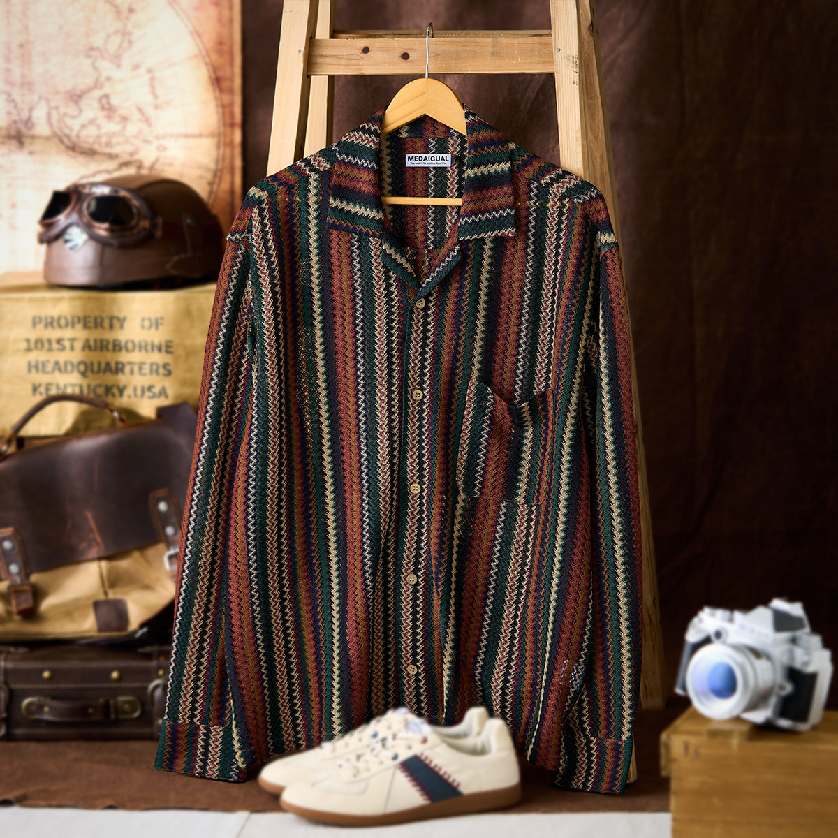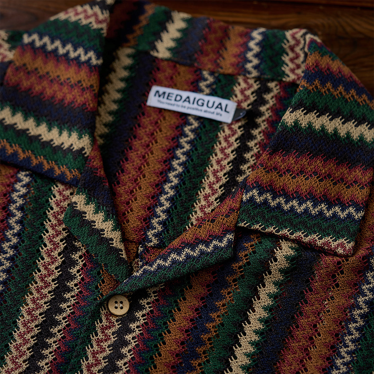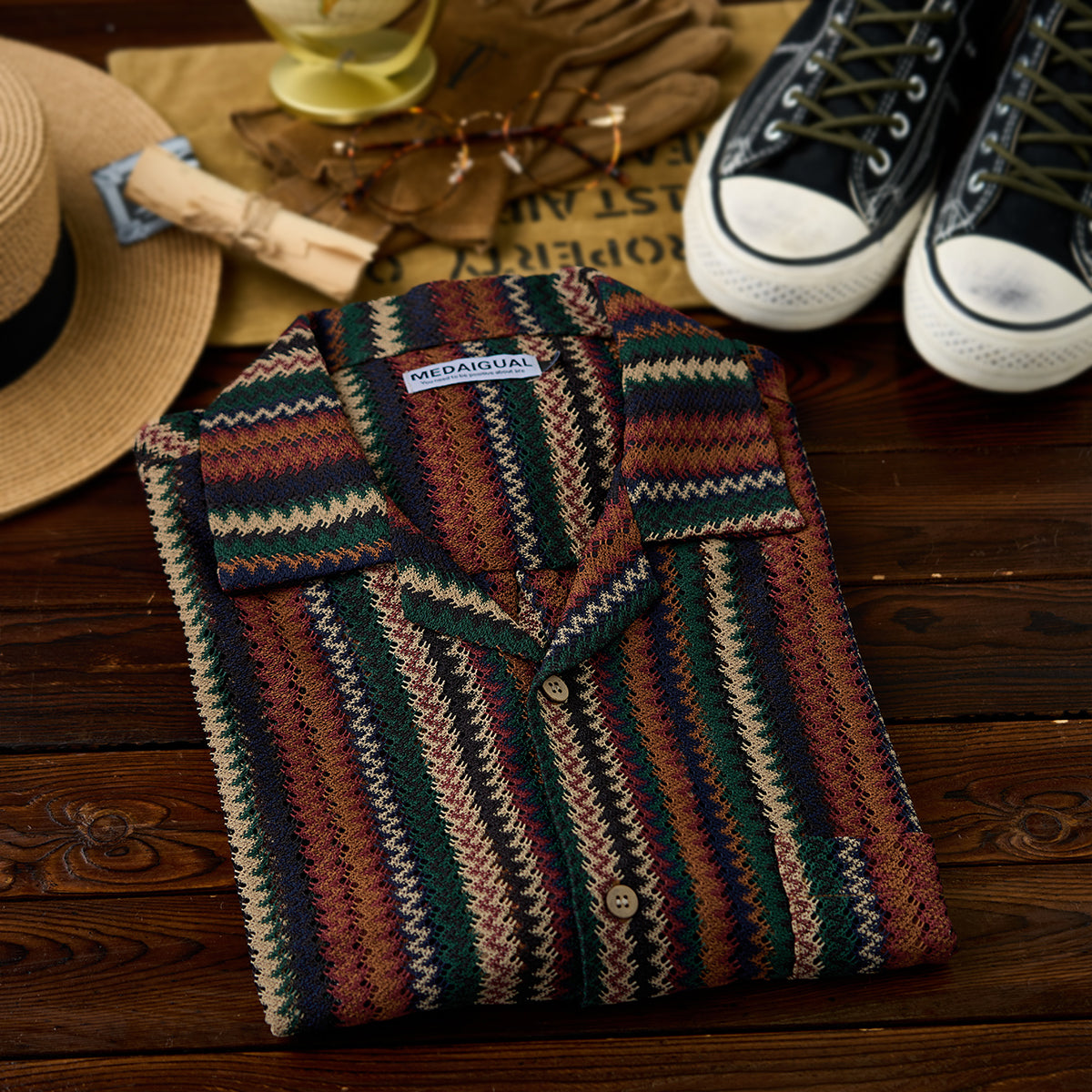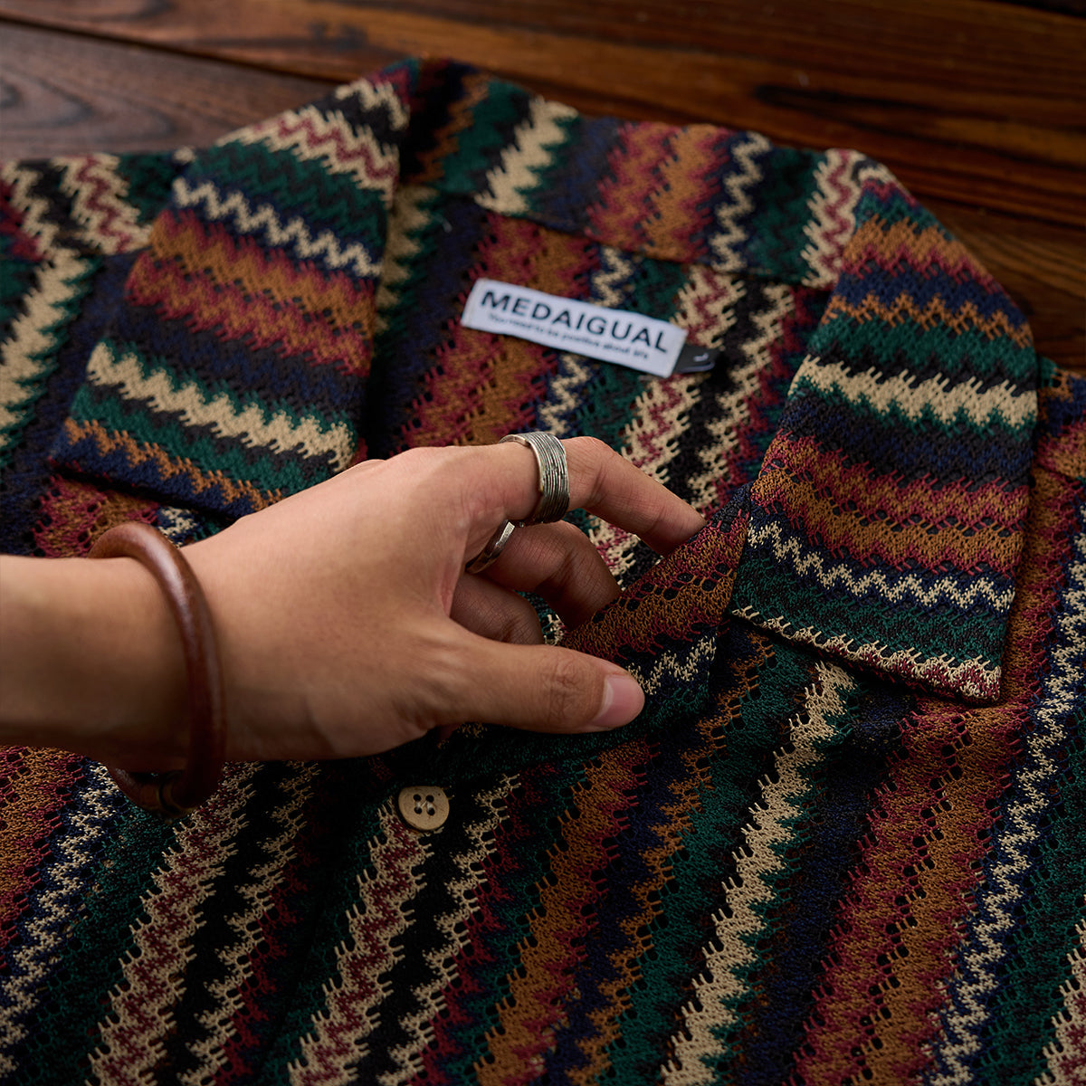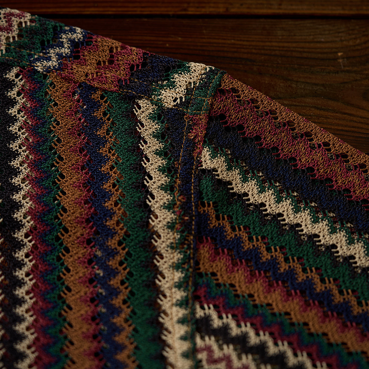 멀티 스트라이프 펀칭 니트 긴팔 쿠바 셔츠