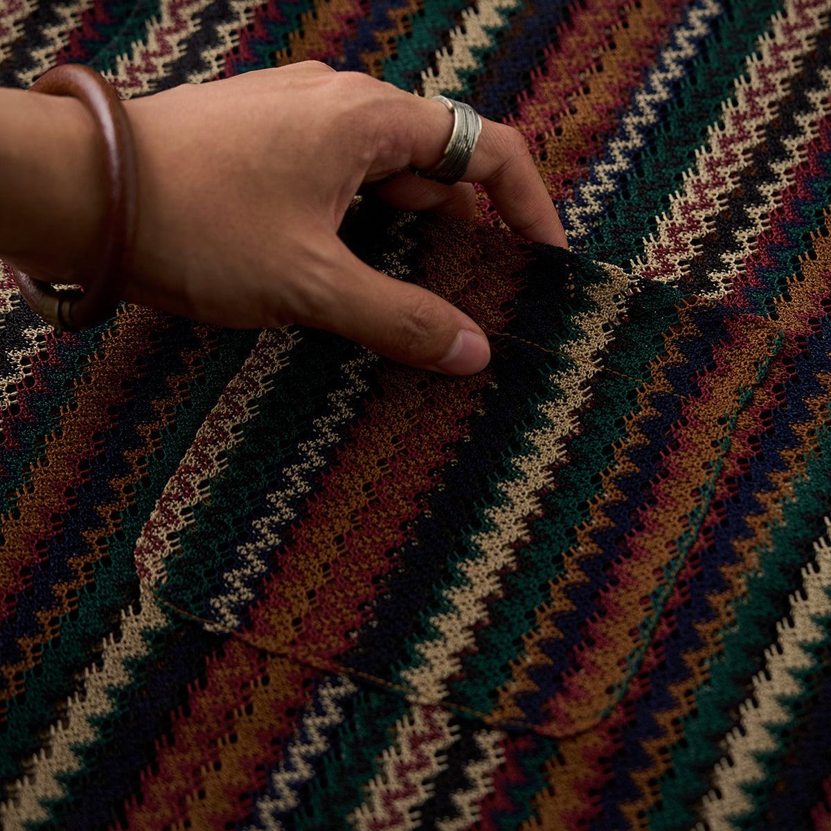 지그재그 스트라이프와 펀칭 디테일이 개성을 더해 시선을 끄는 디자인입니다.
