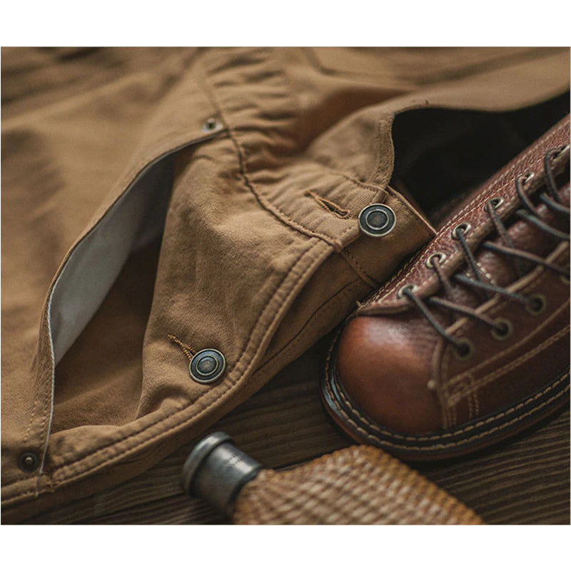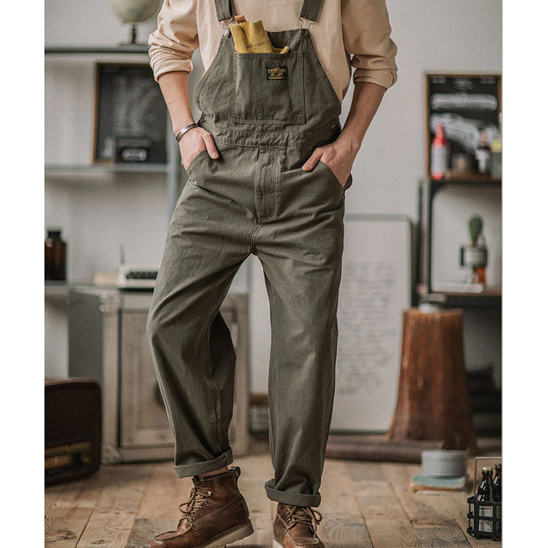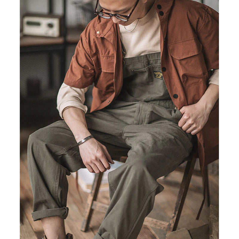 워크웨어 기반의 편안한 남성용 스타일로 헌 옷 같은 자연스러운 멋이 특징입니다.