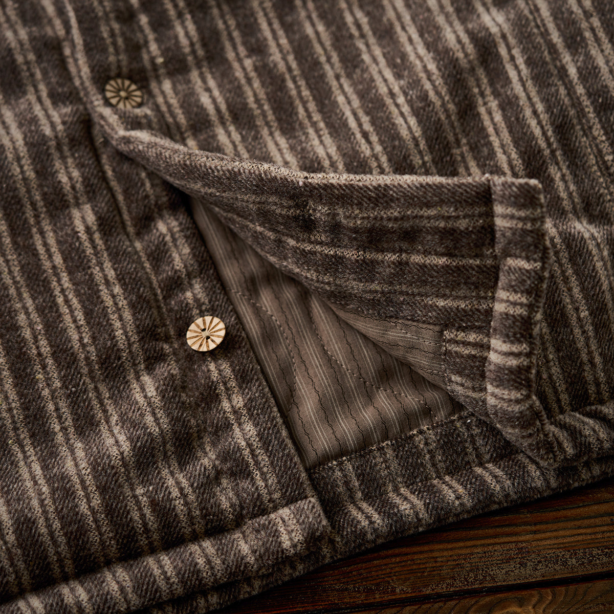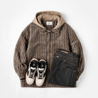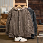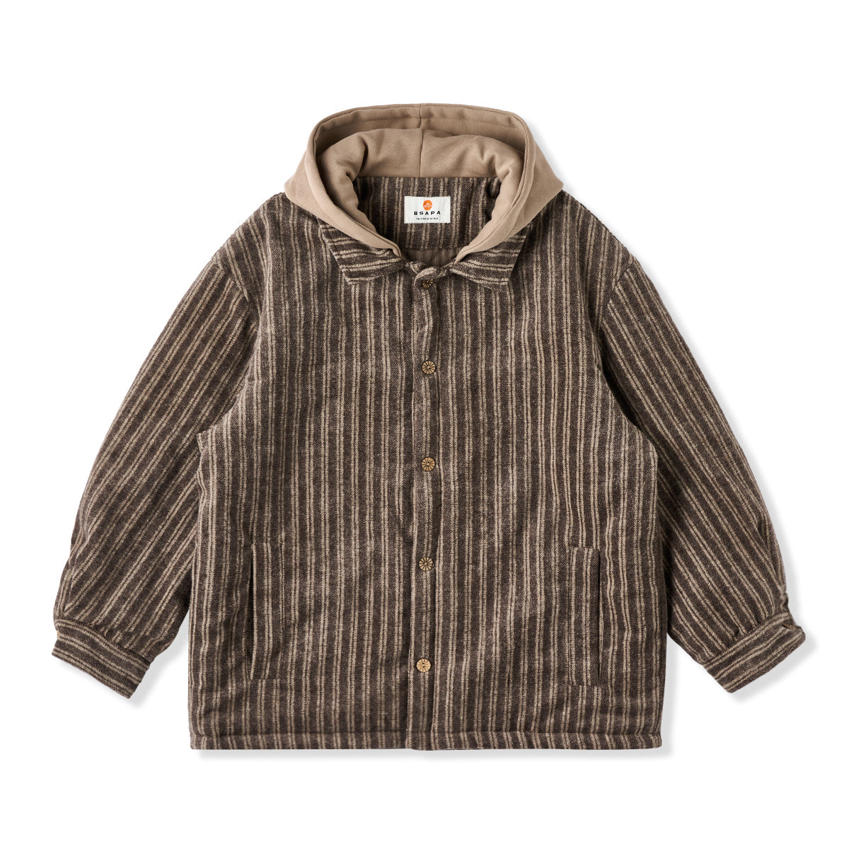 미세 기모 후드 스트라이프 트위드 솜 안감 자켓