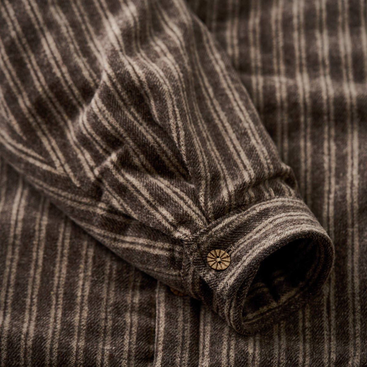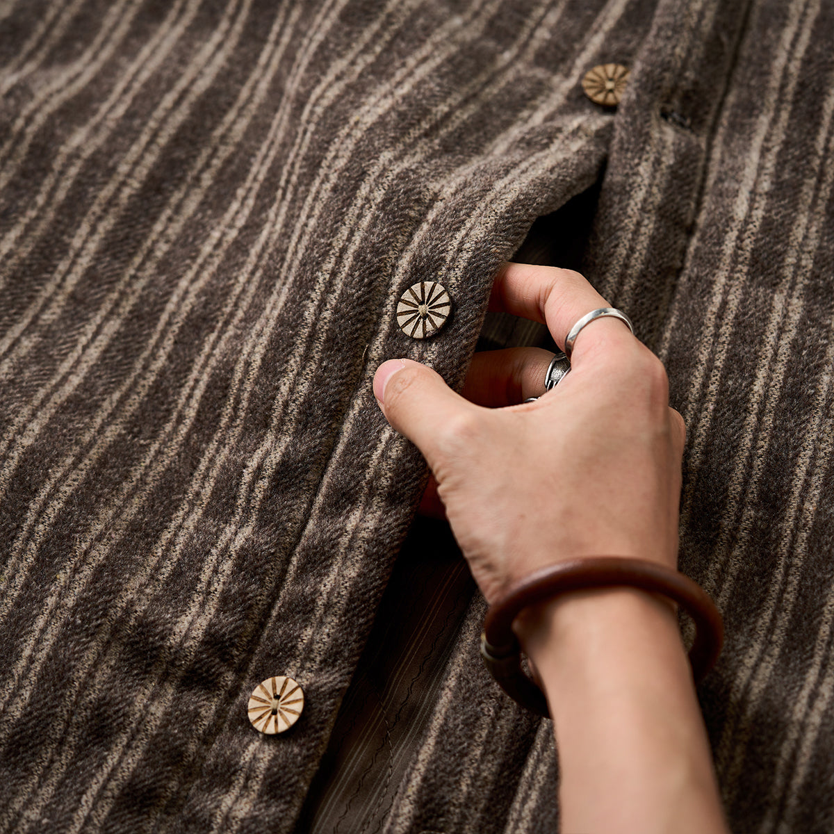 스트라이프 트위드 소재는 살짝 기모 처리되어 부드럽고 따뜻한 착용감을 제공합니다.