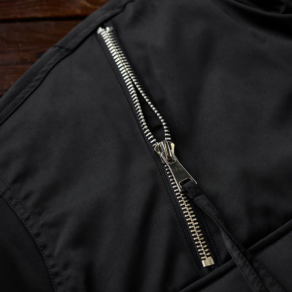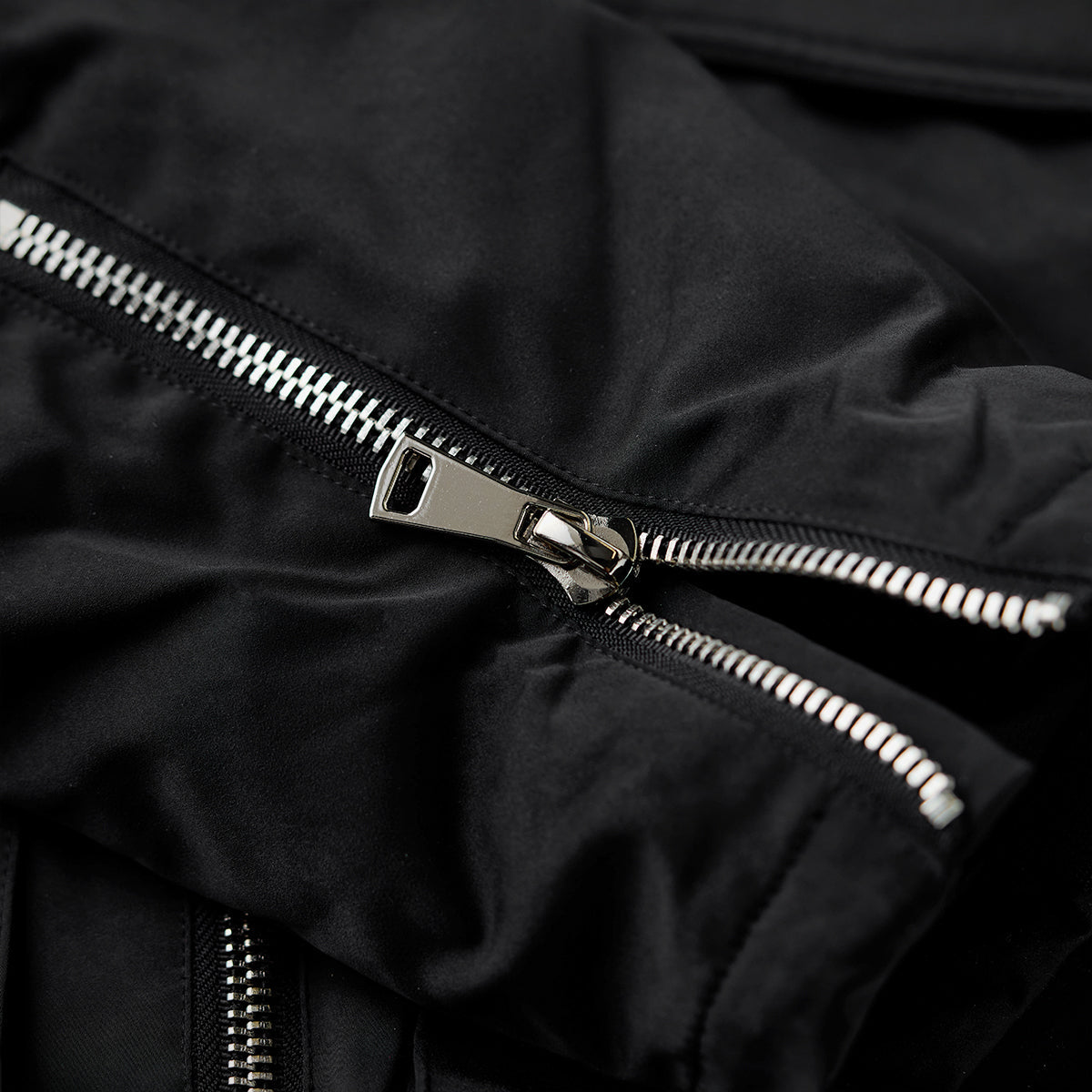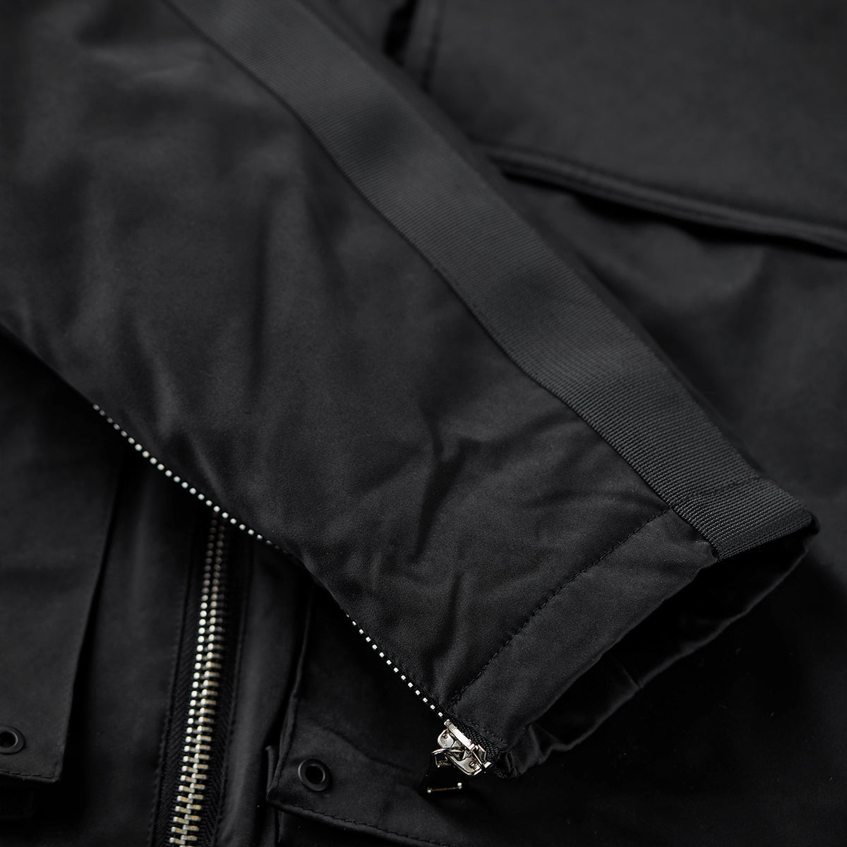 앞면은 풀 집업 스타일이며, 양쪽 가슴과 소매 끝 지퍼 디테일로 시선을 사로잡는 디자인을 완성했습니다.