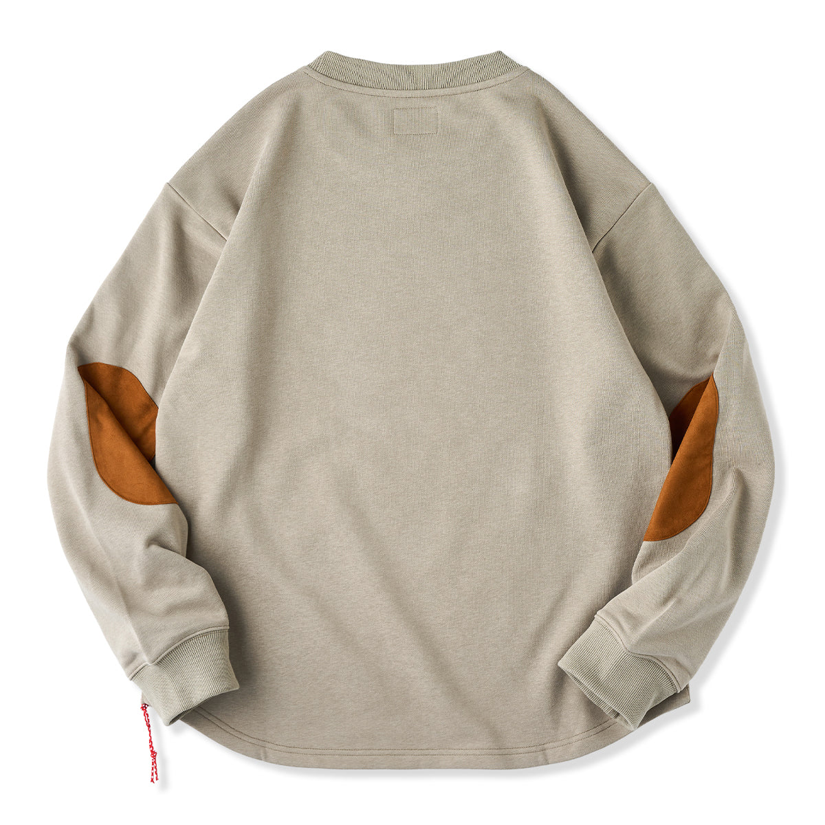 【사전예약】빨간 매듭 끈 팔꿈치 스웨이드 패치 기모 안감 크루넥 스웨트셔츠