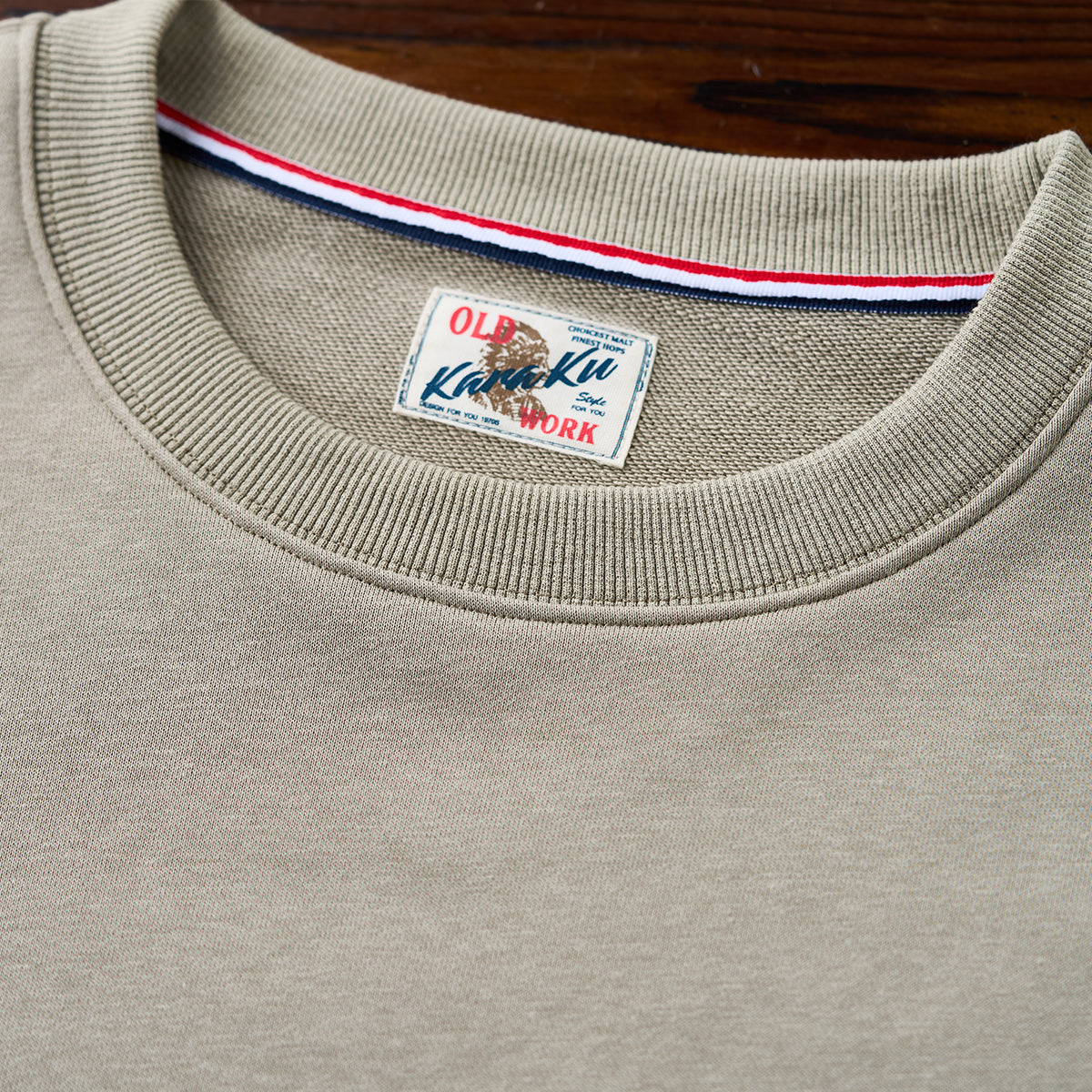 밑단의 빨간 끈과 팔꿈치 스웨이드 패치가 돋보이는 크루넥 스웨트입니다. 단독은 물론 셔츠나 아우터와의 레이어드에도 활용하기 좋습니다.