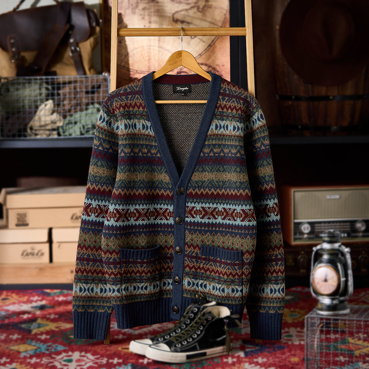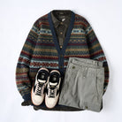 울 100% 페어아일 패턴 자카드 V넥 니트 가디건