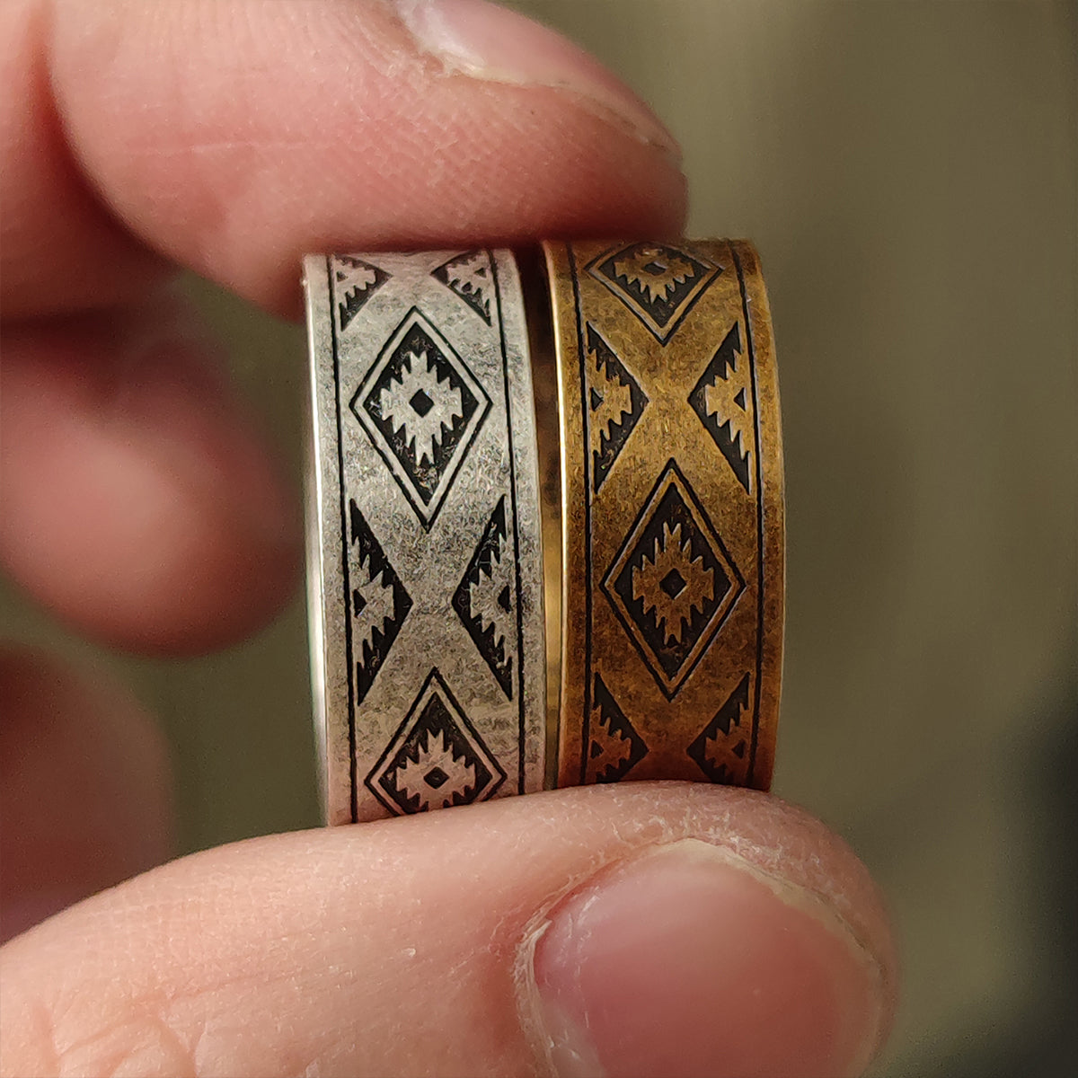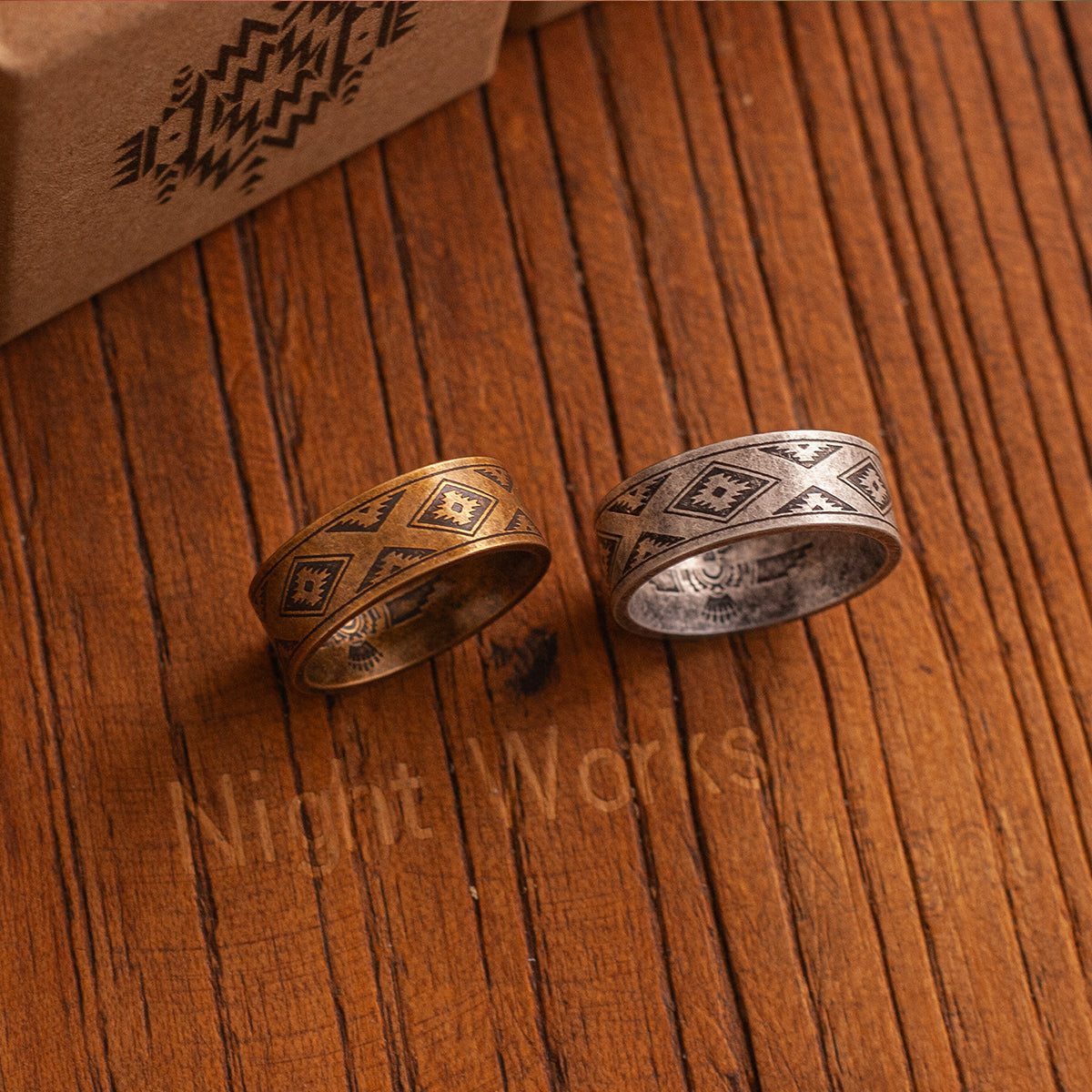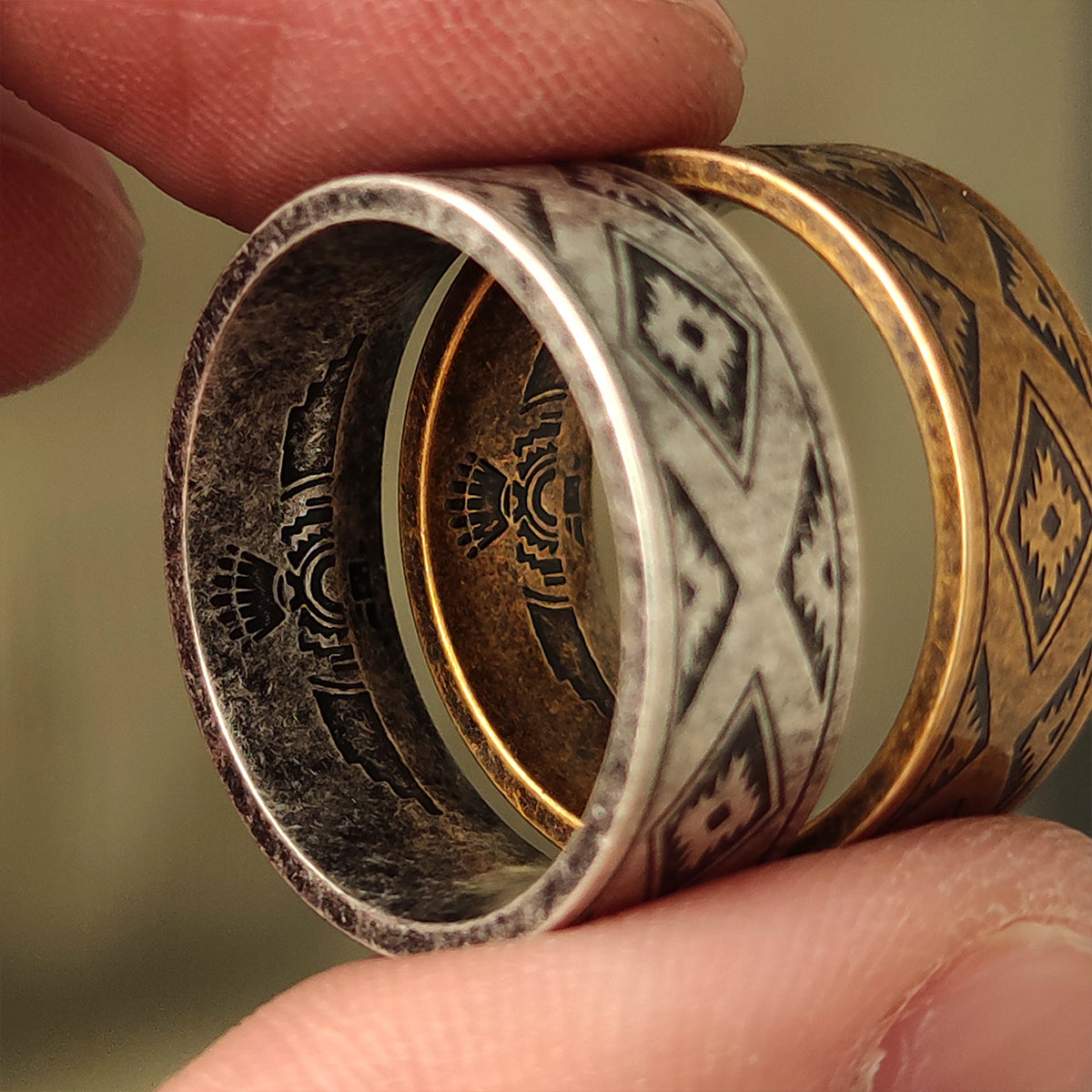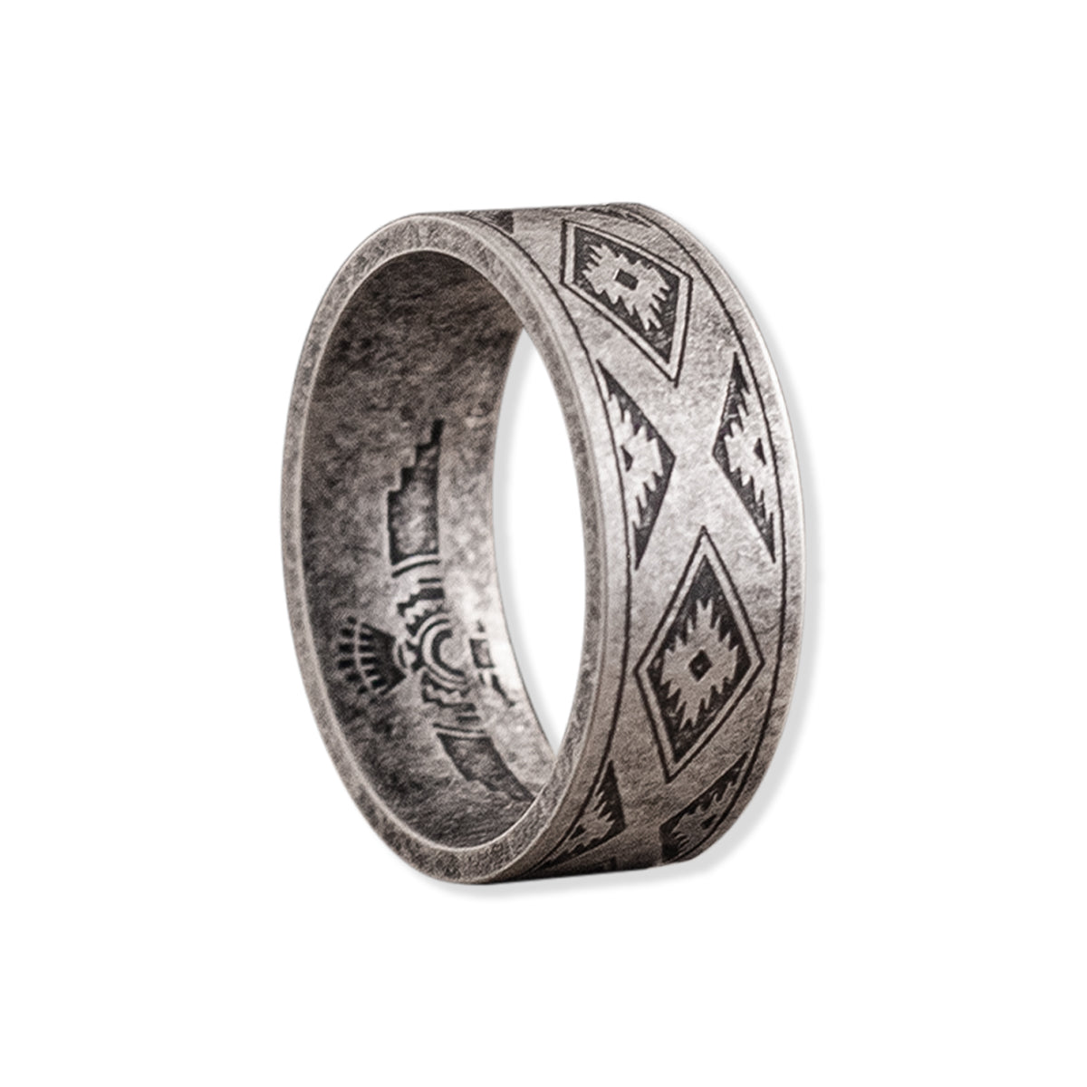 나바호 & 썬더버드 패턴 빈티지 티타늄 링