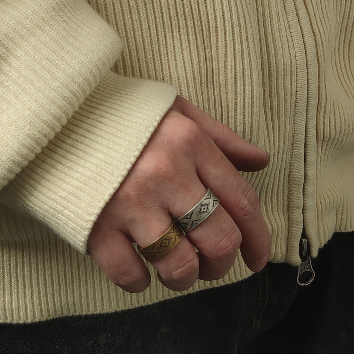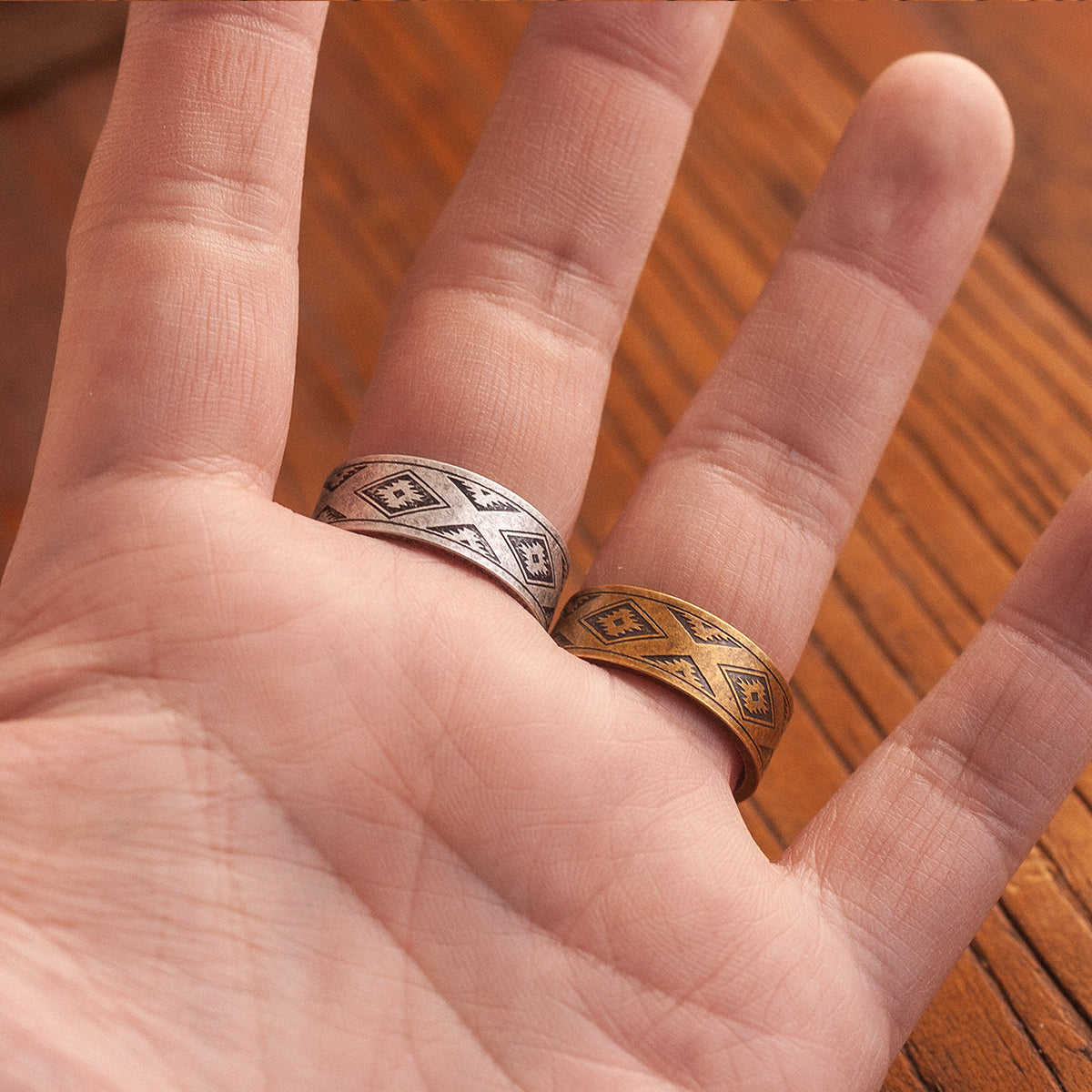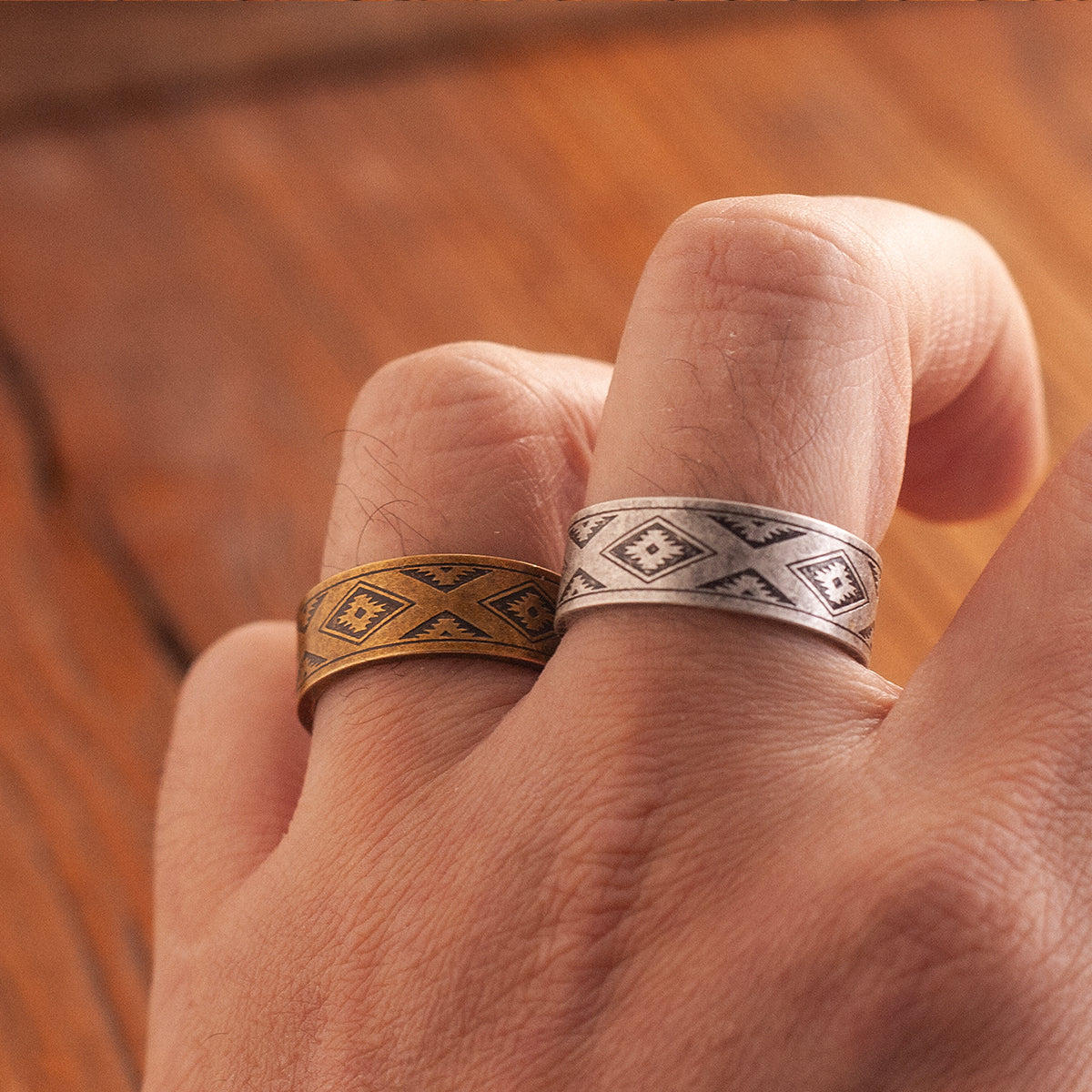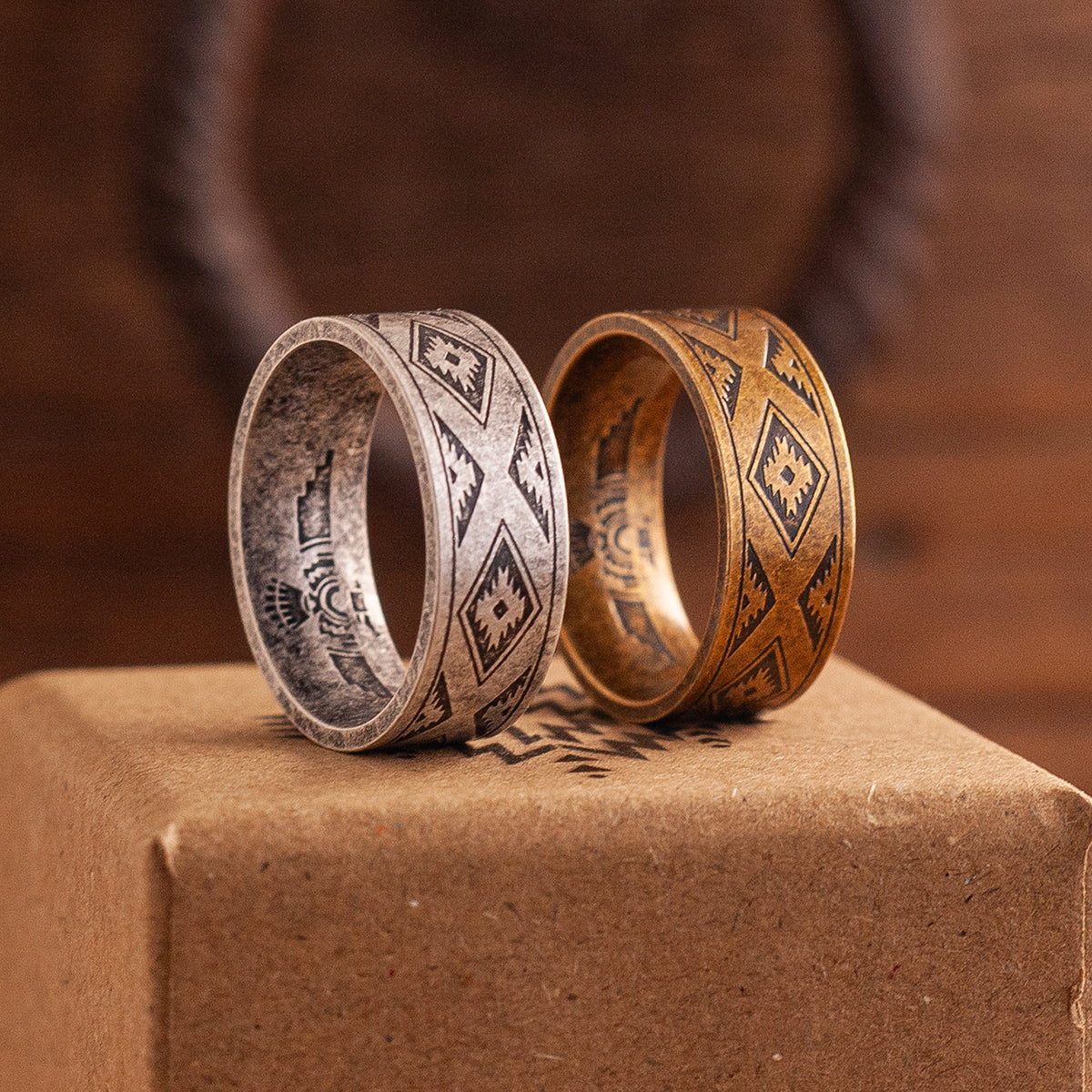 나바호 & 썬더버드 패턴 빈티지 티타늄 링
