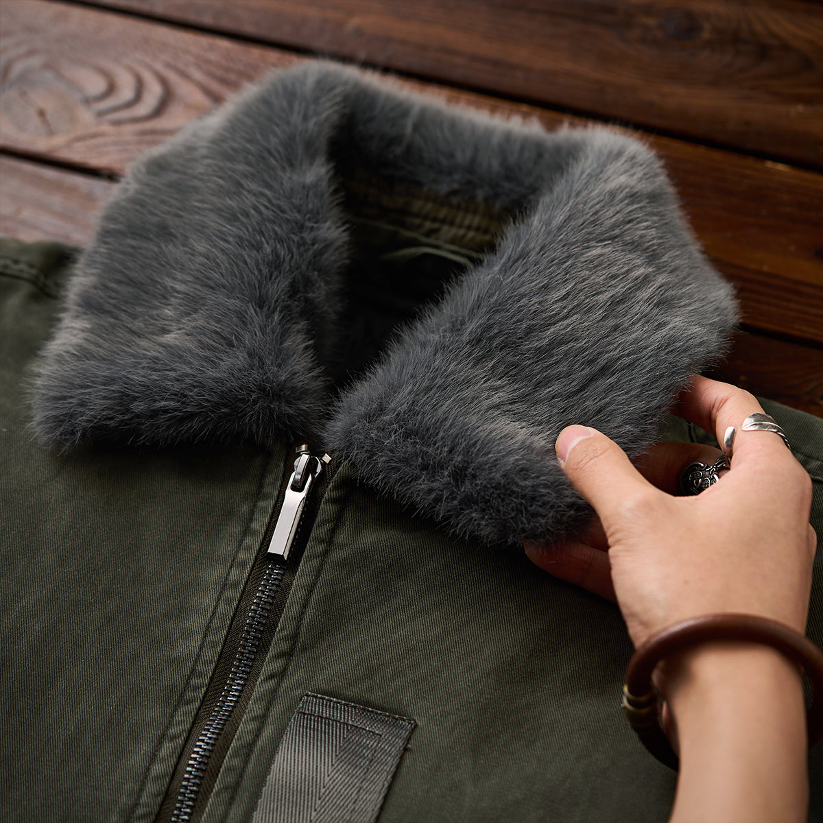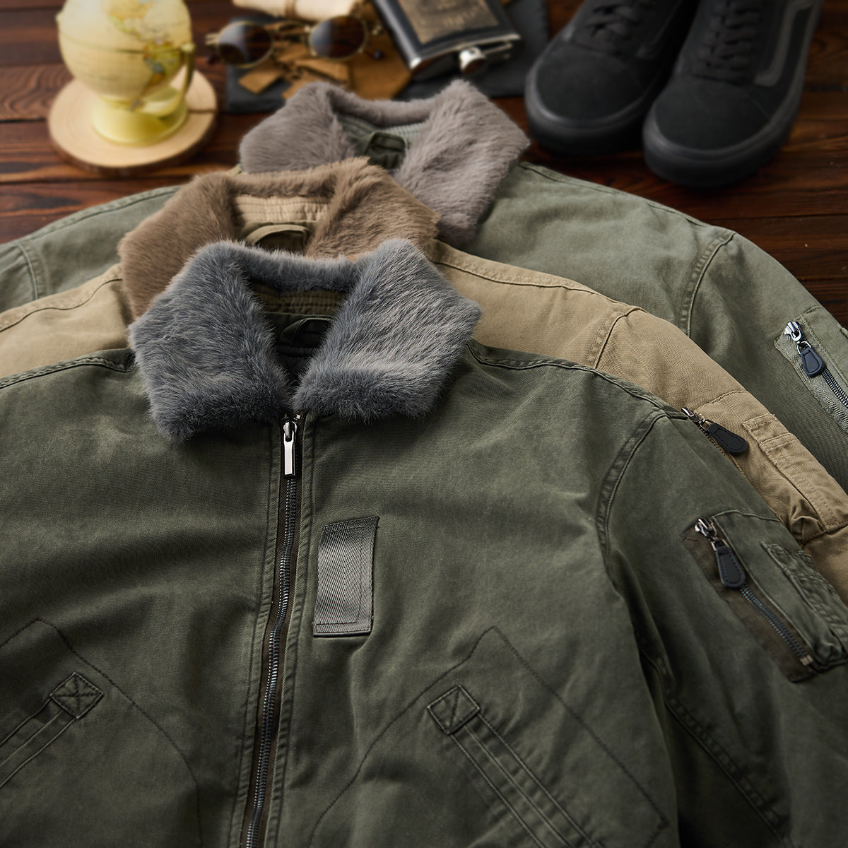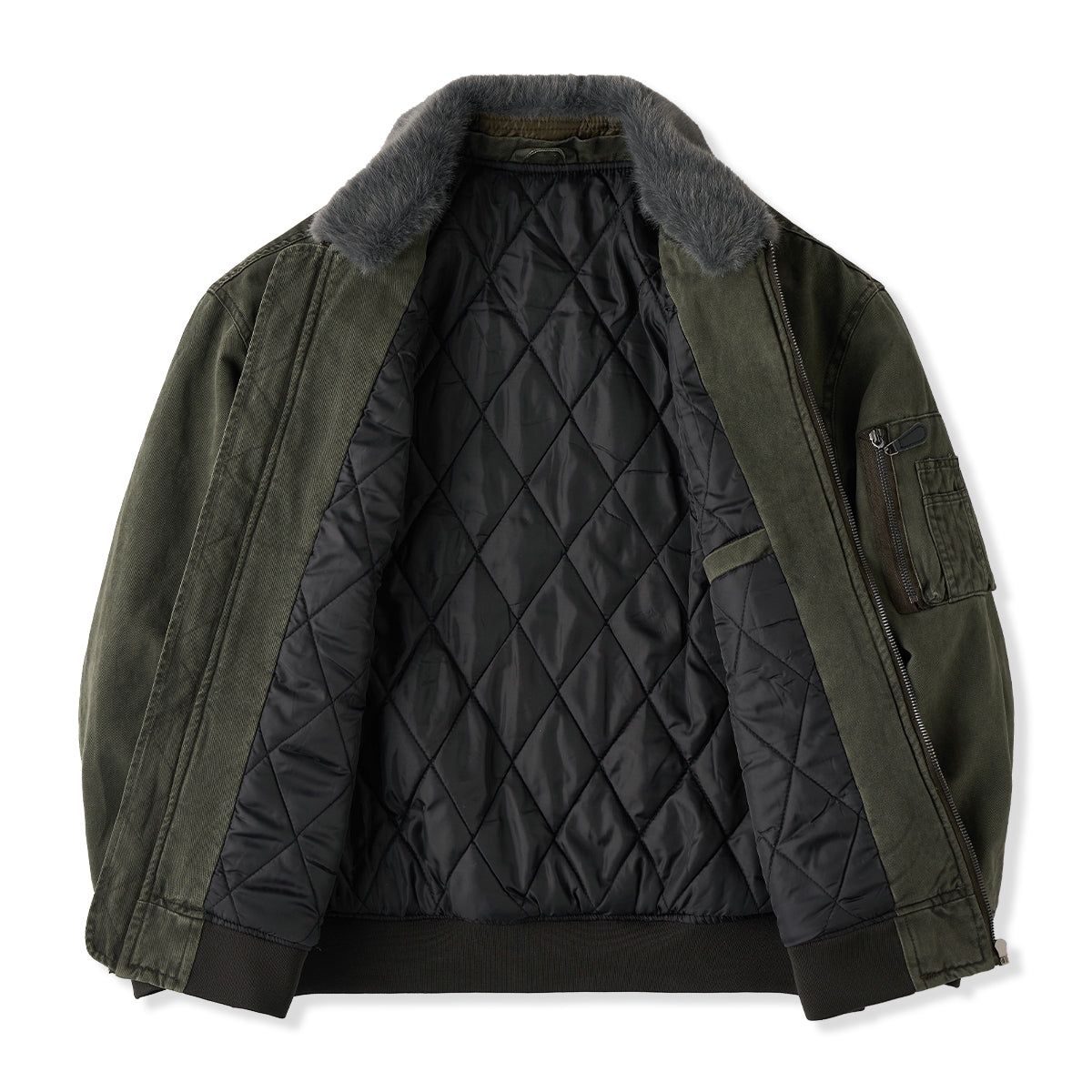 B-15 플라이트 재킷을 현대적으로 재해석한 솜 봄버 자켓으로, 탈부착 가능한 털 칼라와 다이아 퀼트 안감으로 따뜻하면서 멋스럽게 입을 수 있는 아이템입니다.