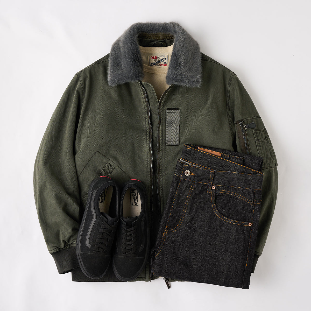 청바지와 스니커즈로 캐주얼하게, 치노 팬츠와 부츠로 포멀하면서도 밀리터리 감성을 강조한 스타일링이 가능합니다.