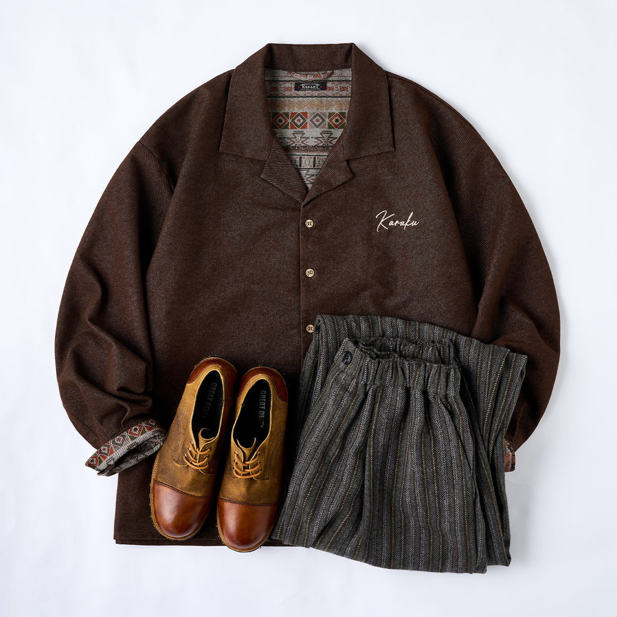 화이트·블랙 무지 티셔츠나 터틀넥 니트와 매치하면 스트라이프 패턴이 돋보이며, 스니커즈나 로퍼와도 잘 어울립니다. 특히 화이트나 브라운 계열 슈즈와 함께하면 자연스러운 스타일링이 가능합니다.