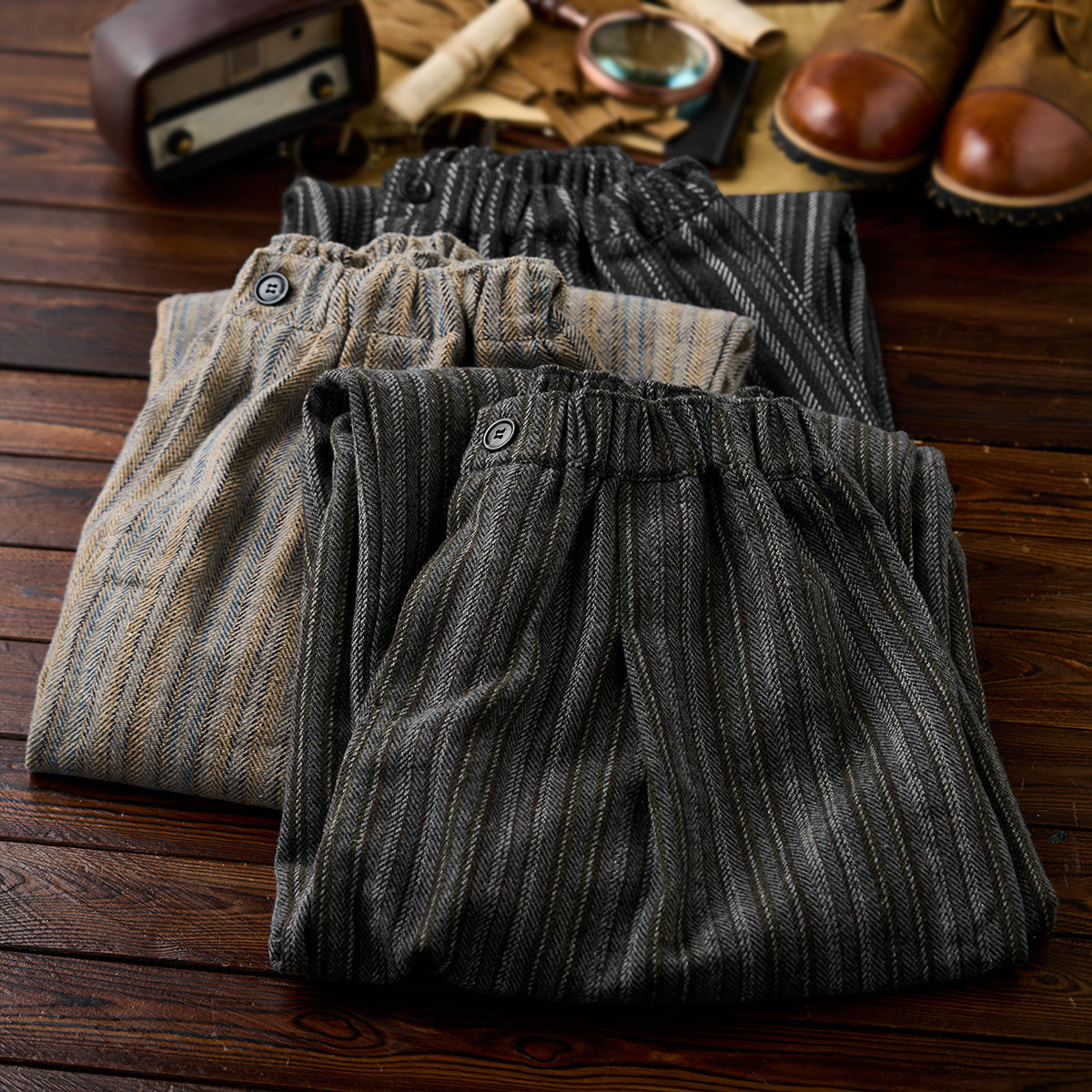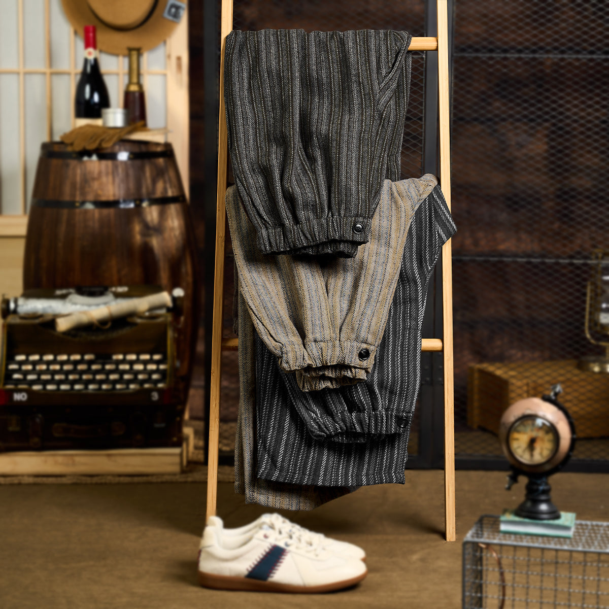 캐주얼한 멀티 스트라이프 이지 팬츠로, 허리 밴드와 가벼운 소재감으로 편안하게 착용할 수 있으며, 초봄·가을·초겨울 시즌 장기간 활용 가능합니다.