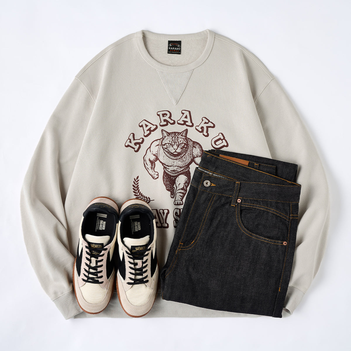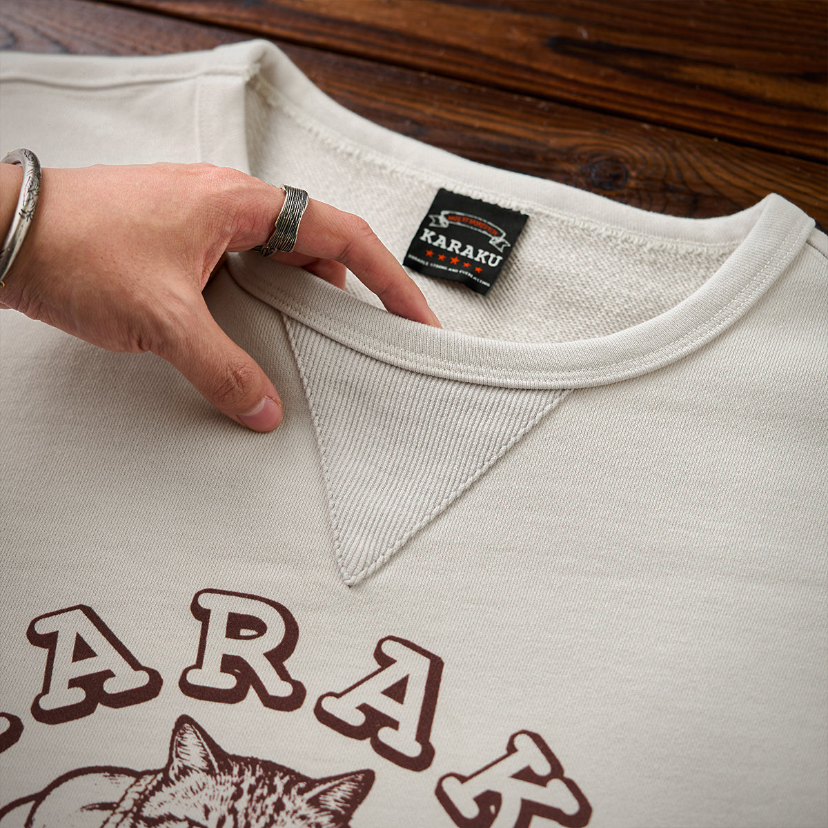 【사전예약】「근육 고양이」프린트 V거셋 코튼 스웨트셔츠