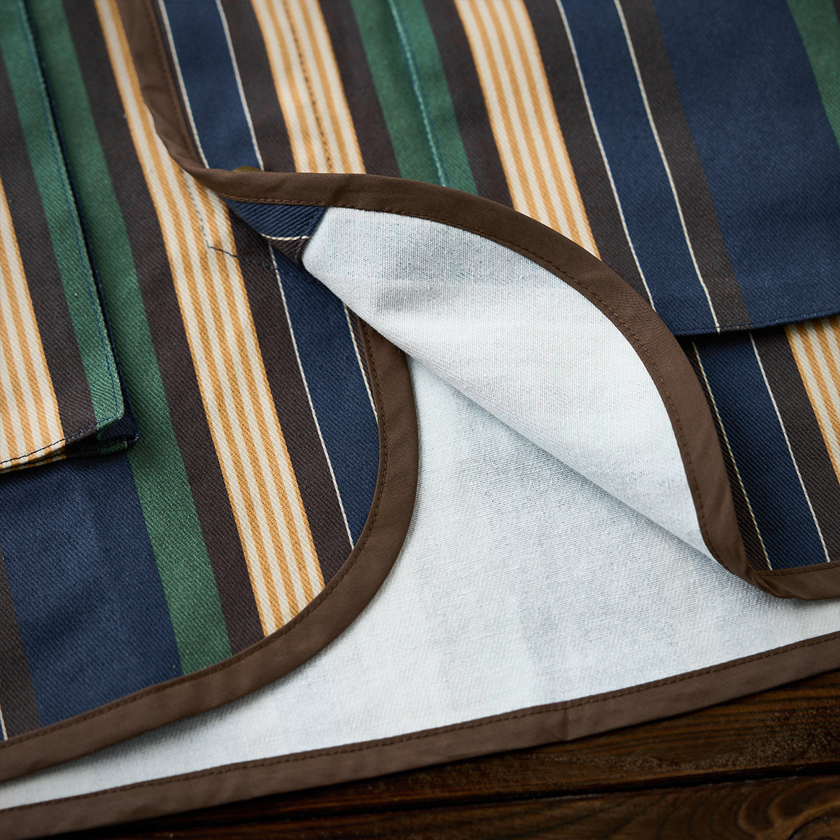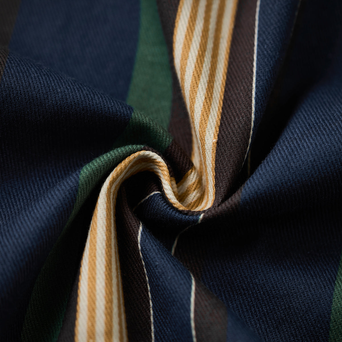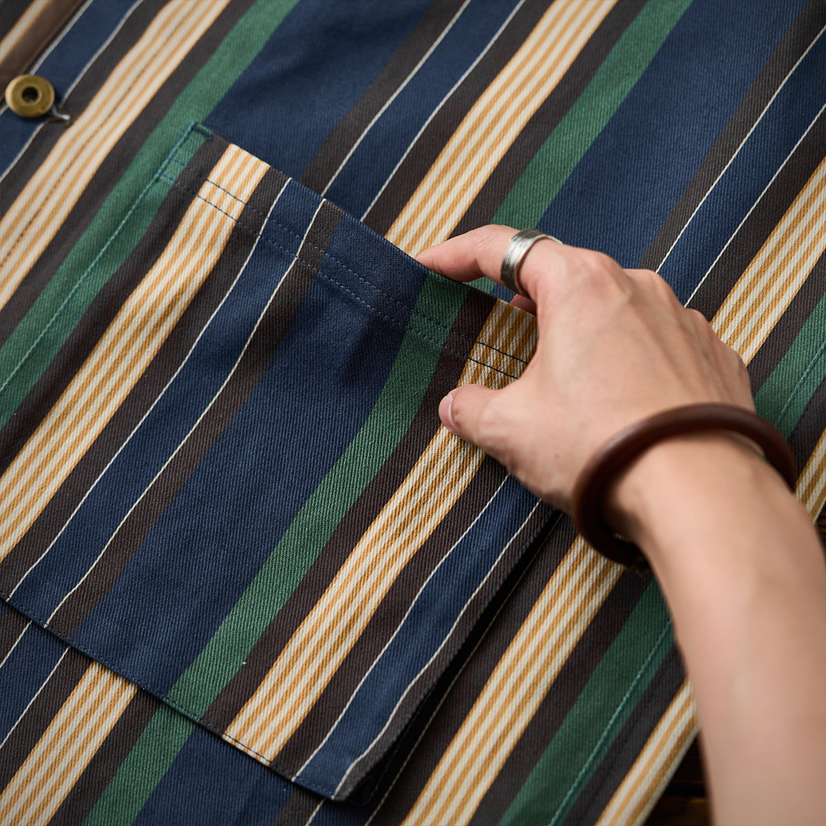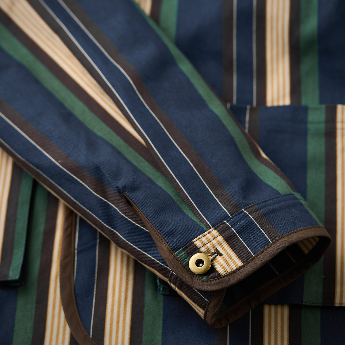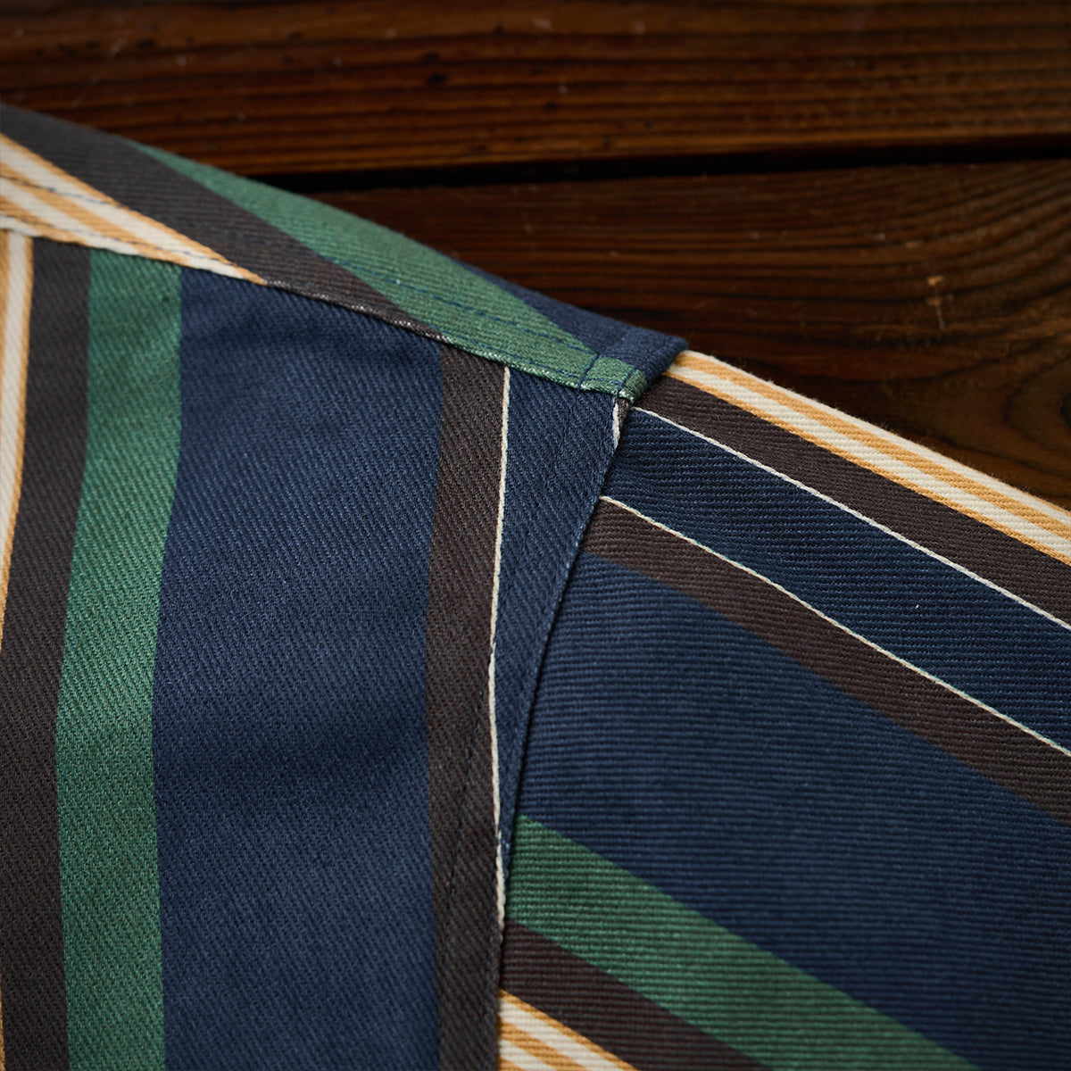 블루, 옐로우, 그린 등 다양한 컬러의 멀티 스트라이프 패턴이 클래식하면서도 레트로한 분위기를 연출합니다.