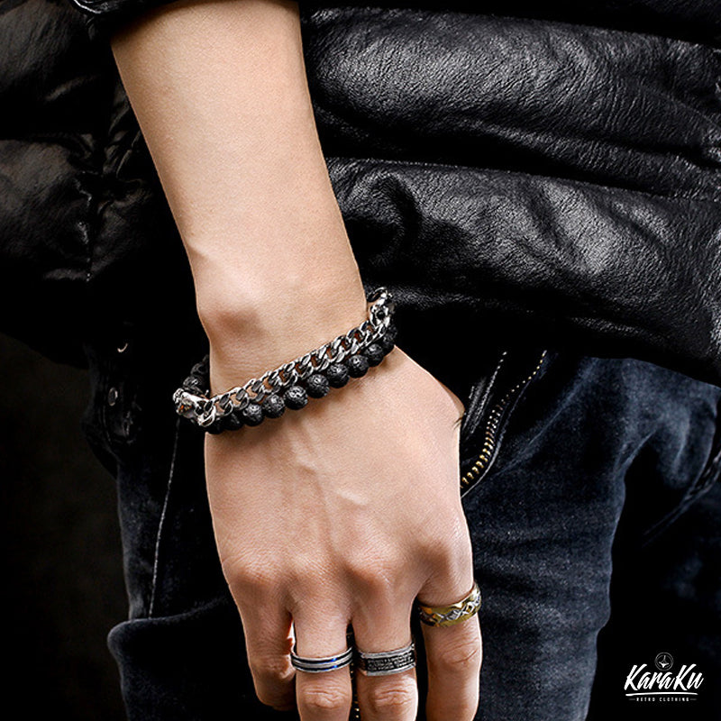 Some use volcanic rock beads. Volcanic rock is a natural stone with a black or gray tone. The beads have a fine texture and roughness on the surface, which gives them a unique texture.